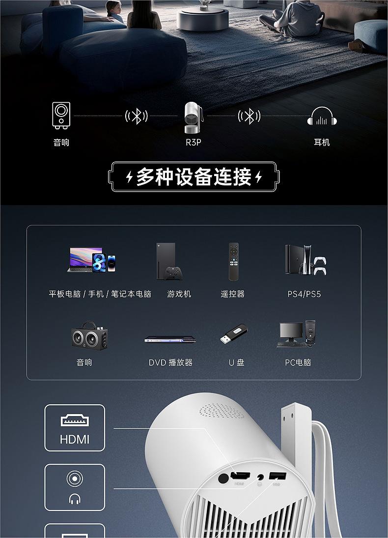 Nuevo Producto R3P Viene con Batería Proyector para Exteriores Proyector Personalizado Portátil Proyector de Pantalla de Teléfono Móvil