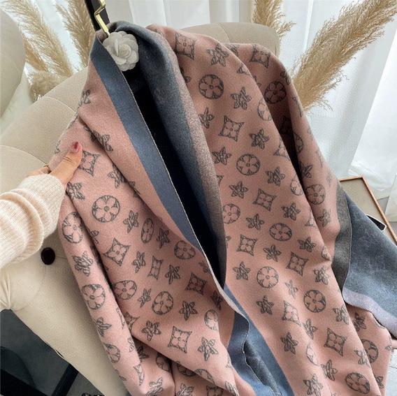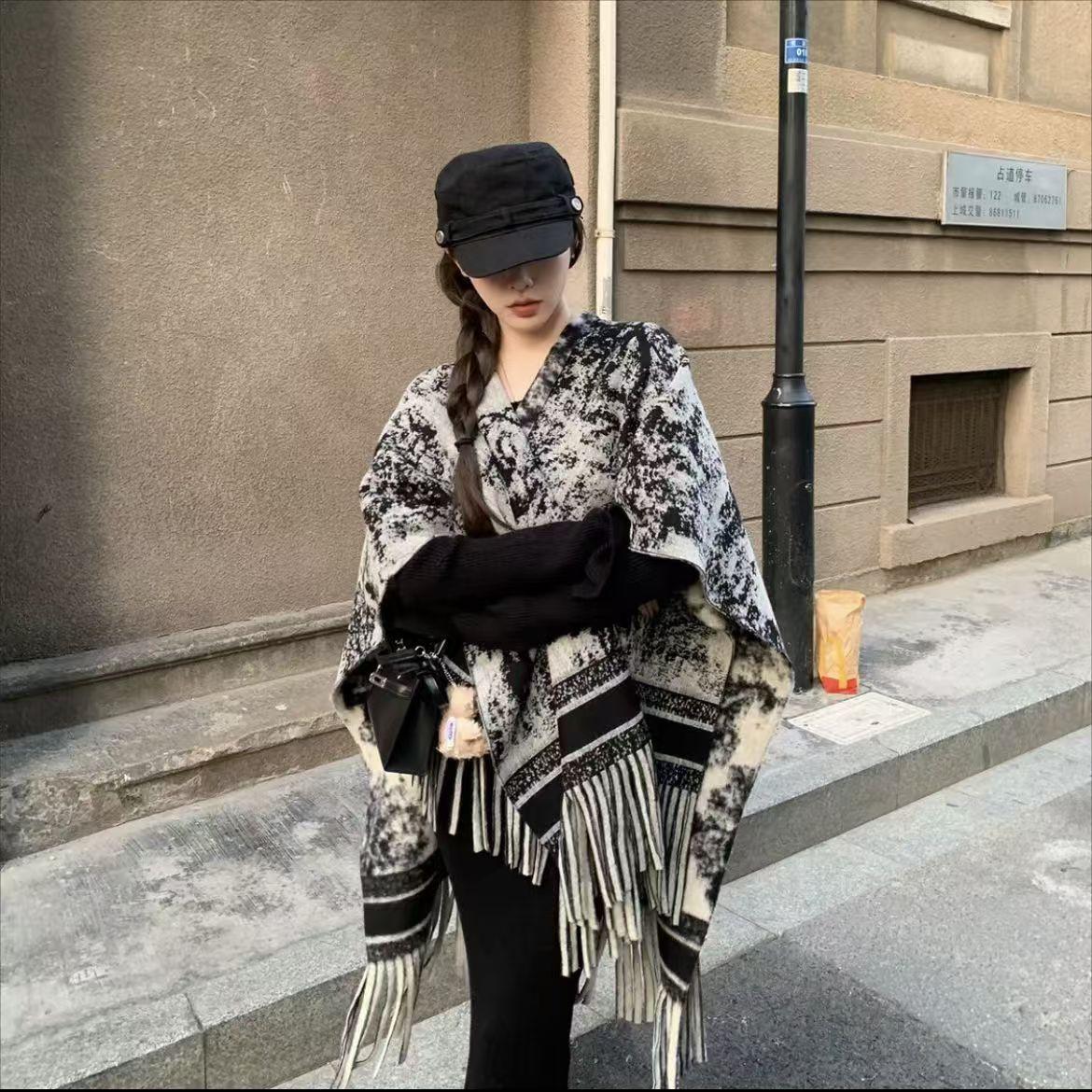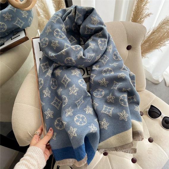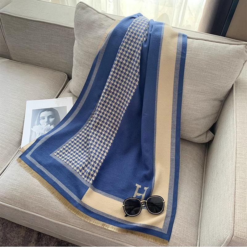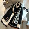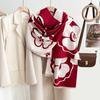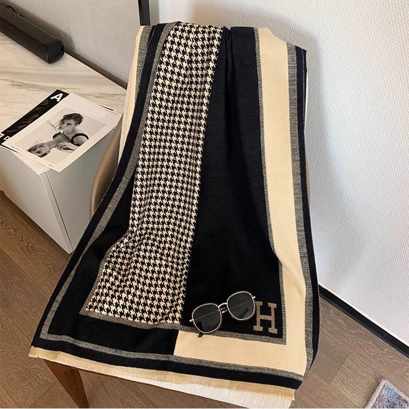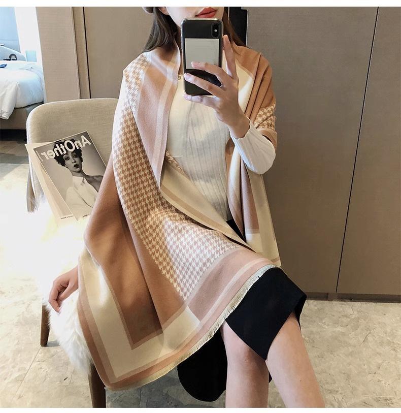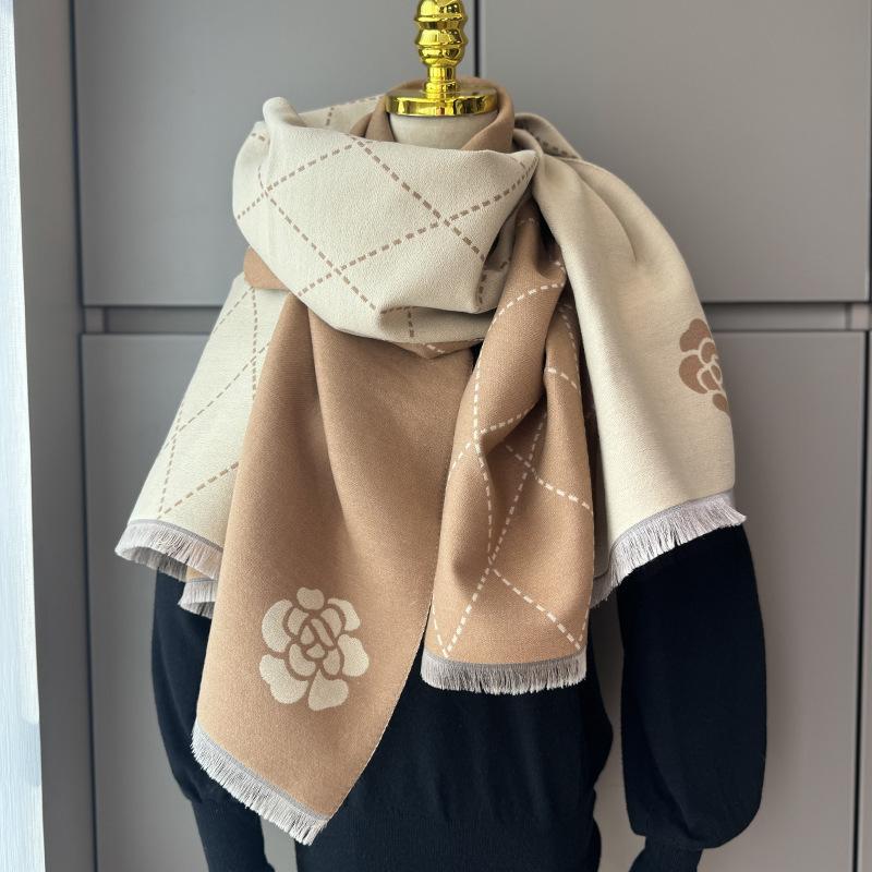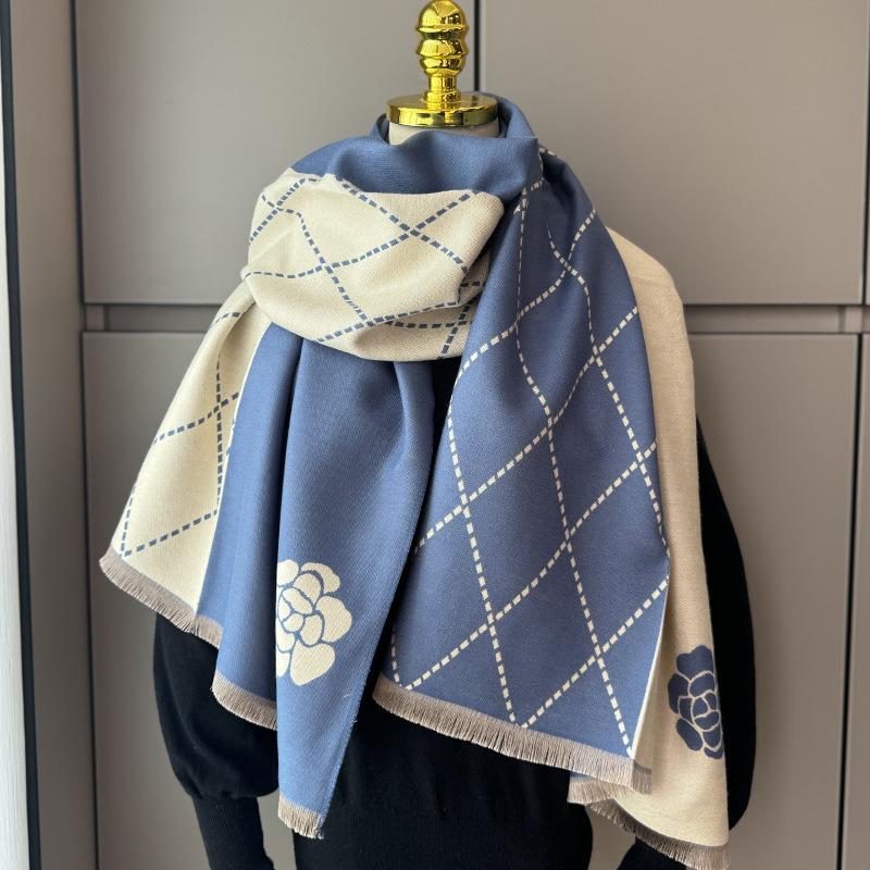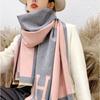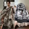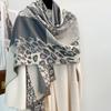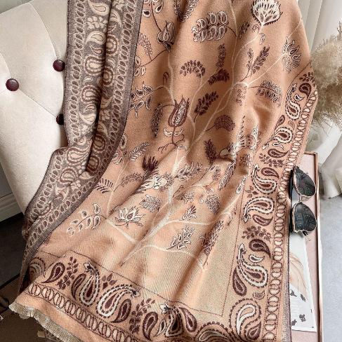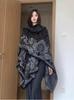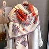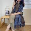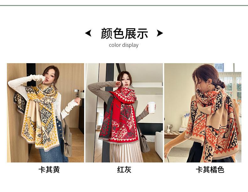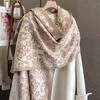 Bufanda de Pintura al Estilo Étnico para Mujer Gruesa de Doble Cara Pata de Gallo Bohemia Imitación Cachemira Chal Largo Otoño e Invierno