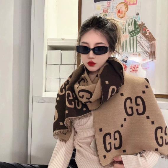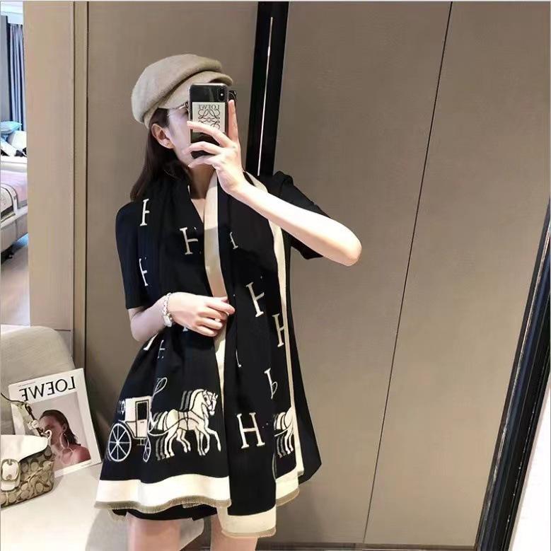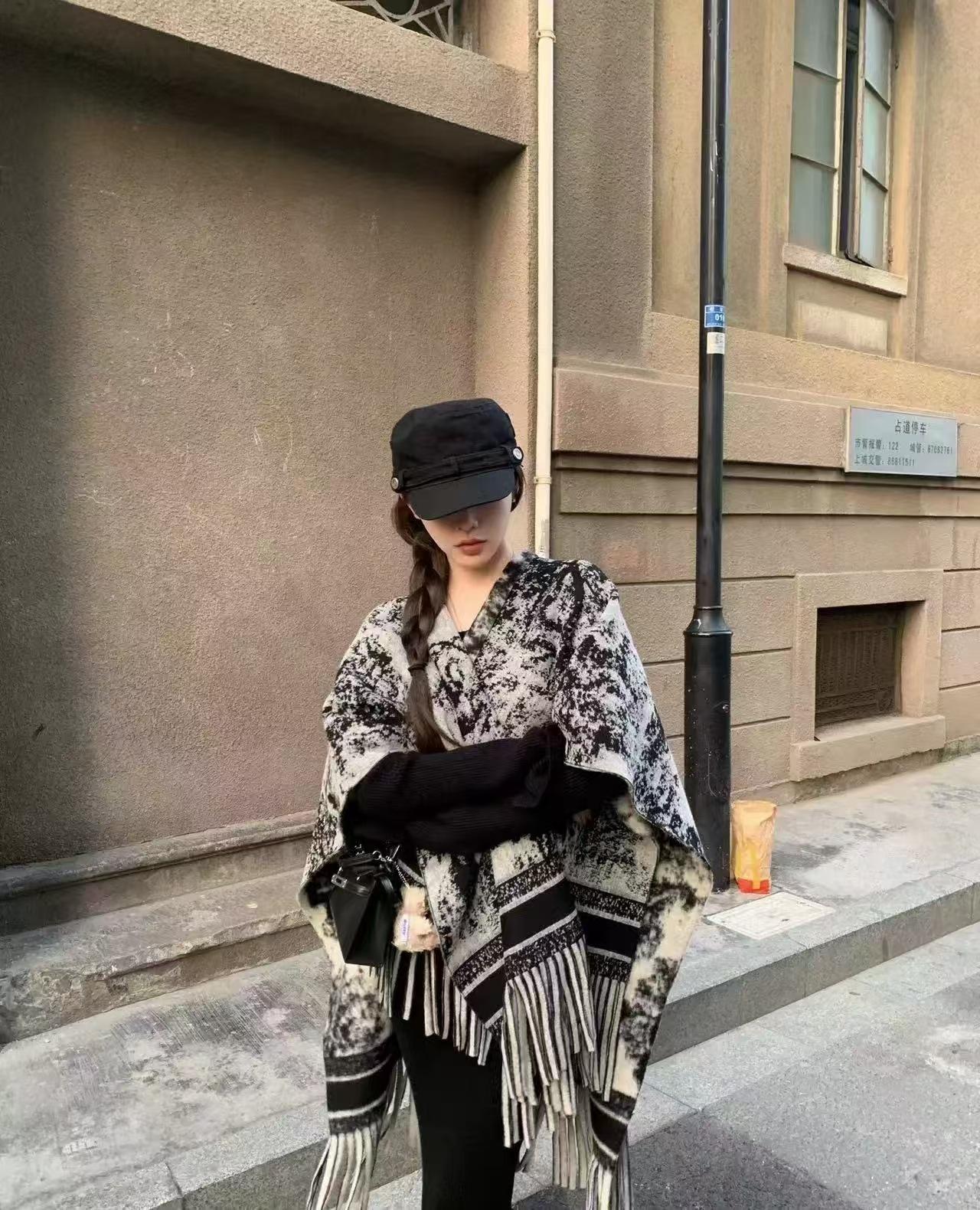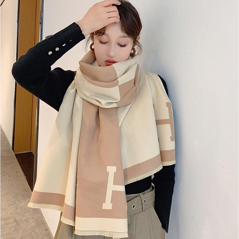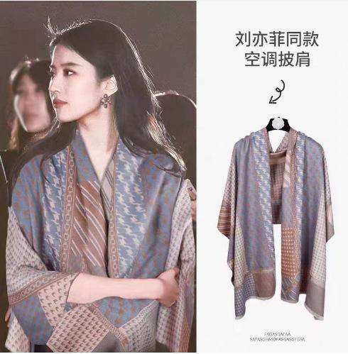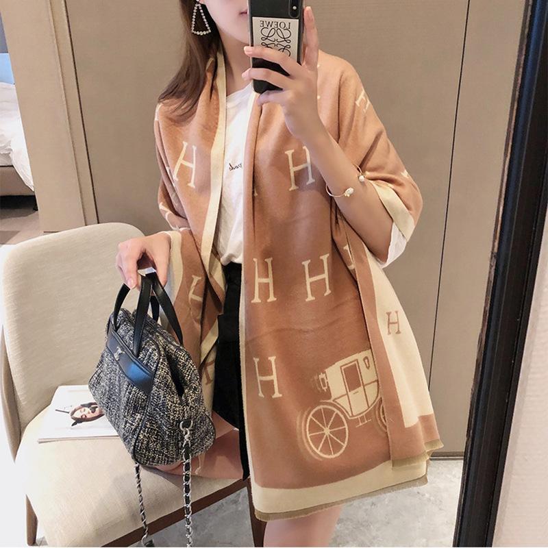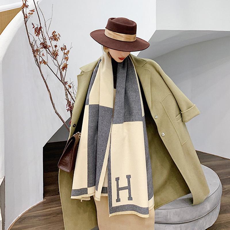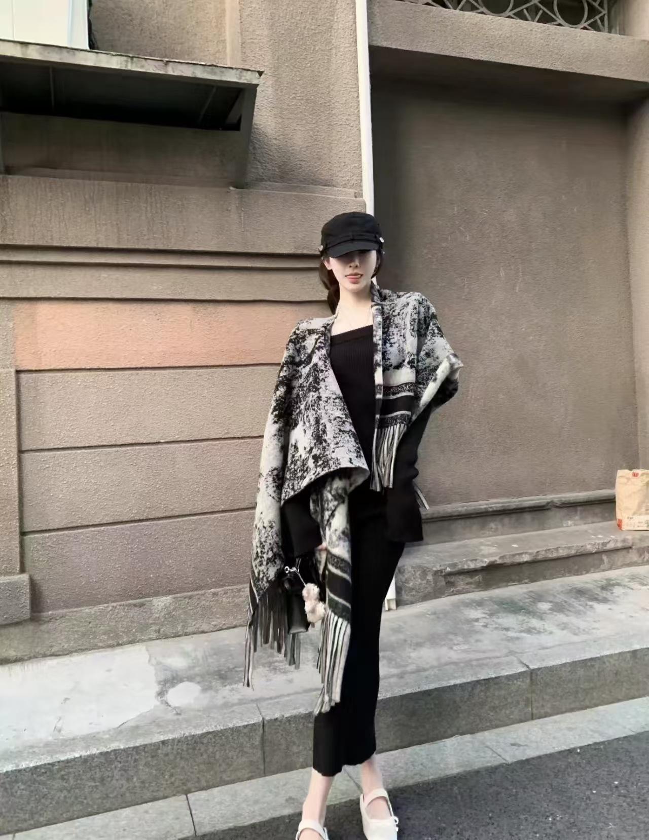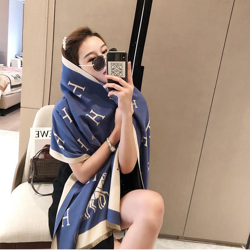 Bufanda de Pintura al Estilo Étnico para Mujer Gruesa de Doble Cara Pata de Gallo Bohemia Imitación Cachemira Chal Largo Otoño e Invierno