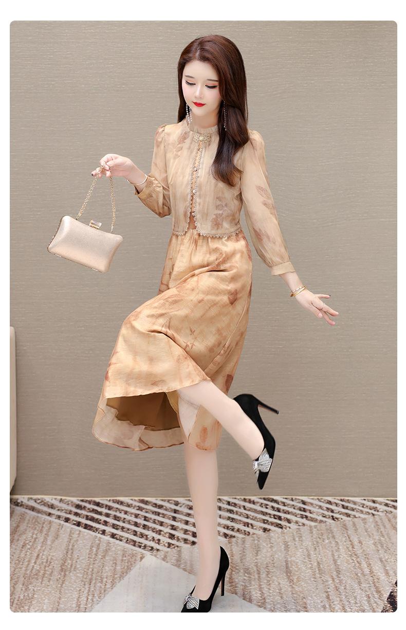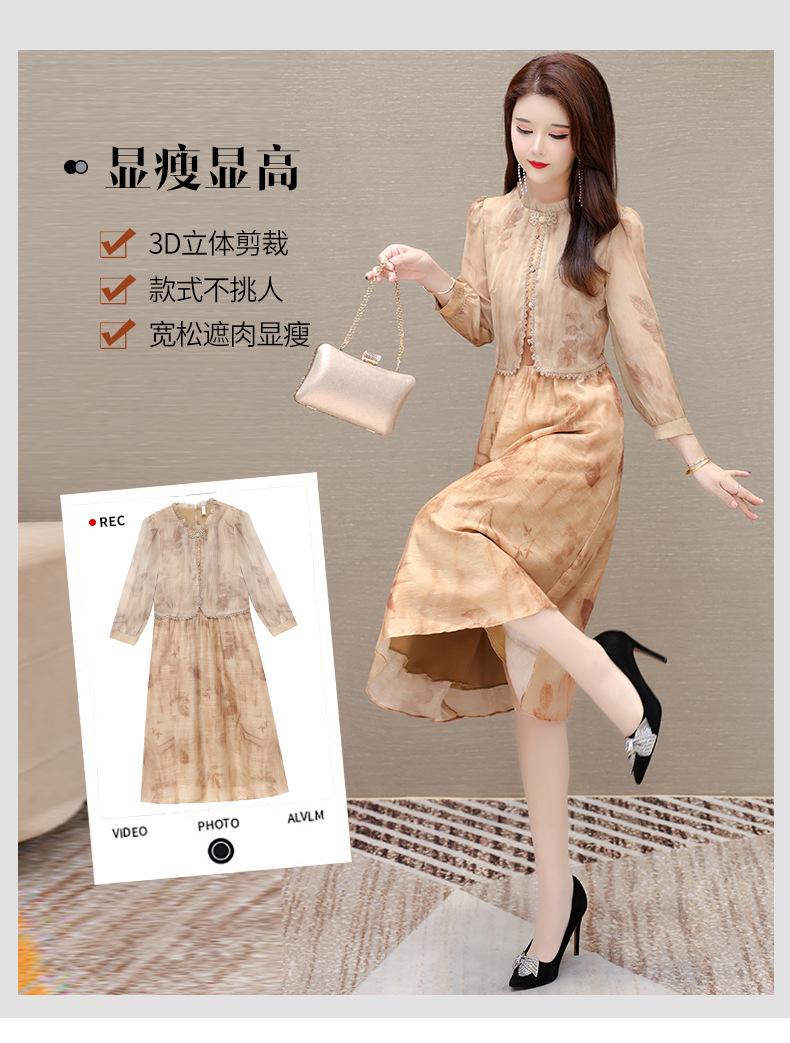 Kuo Esposa Estilo Occidental Falso Dos Piezas Vestido Temperamento 2025 Nuevo Primavera Verano Explosiones Madre de Mediana Edad Falda Estampada