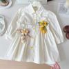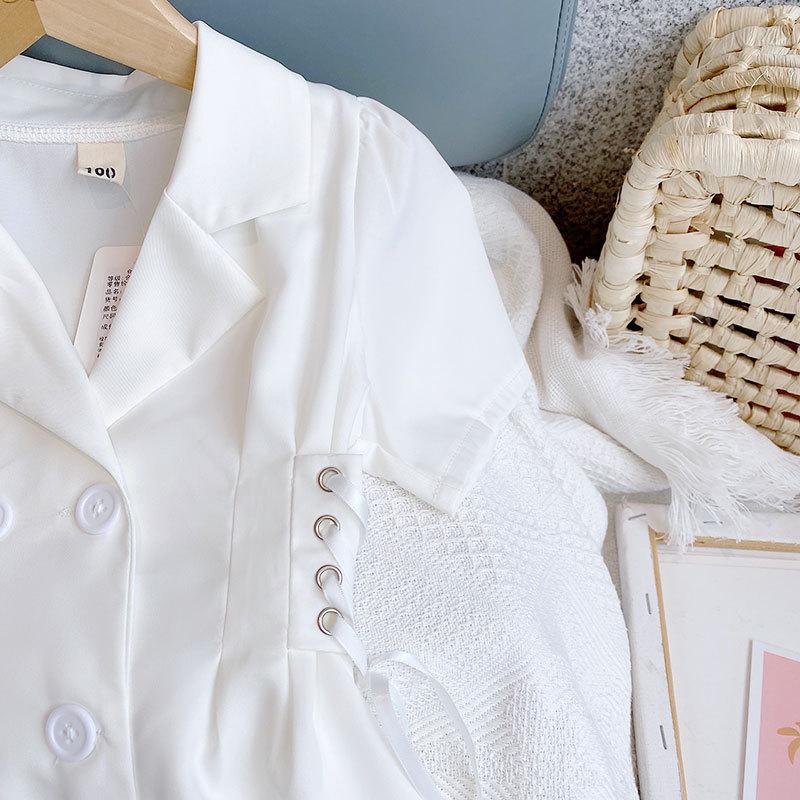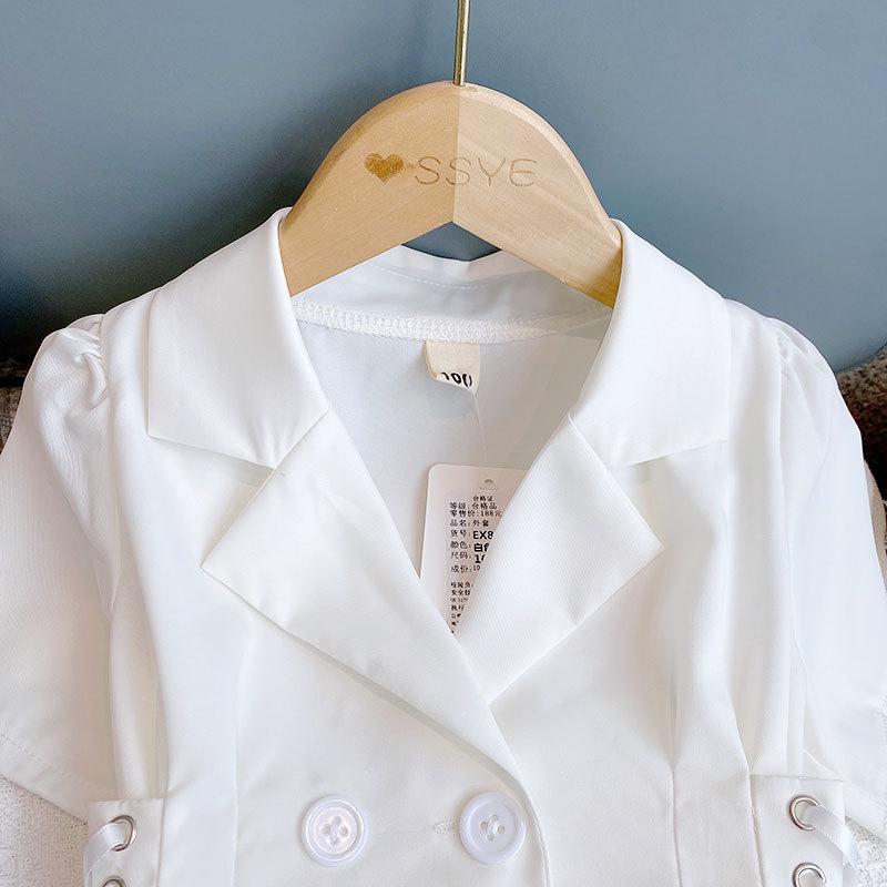 Ropa Exterior para Niñas 2025 Estilo Verano Vestido de Traje de Manga Abullonada Blanco para Bebé Niña Estilo Británico Versátil Falda de Niña a la Moda