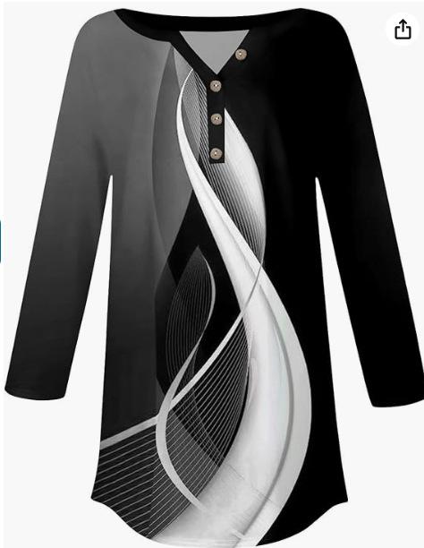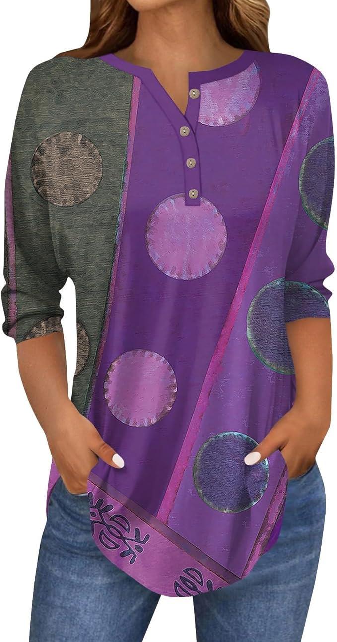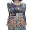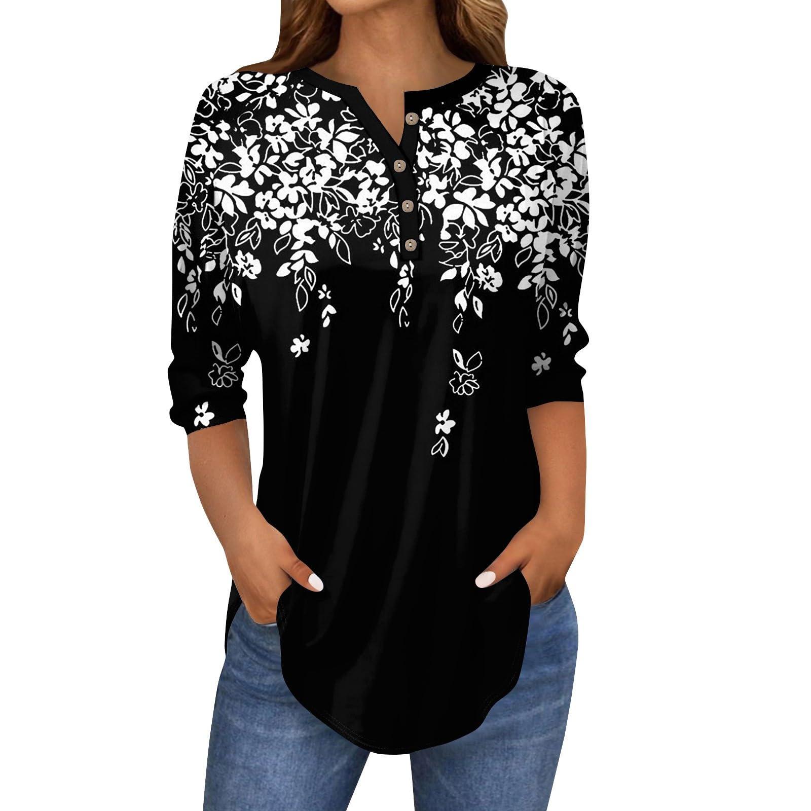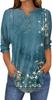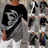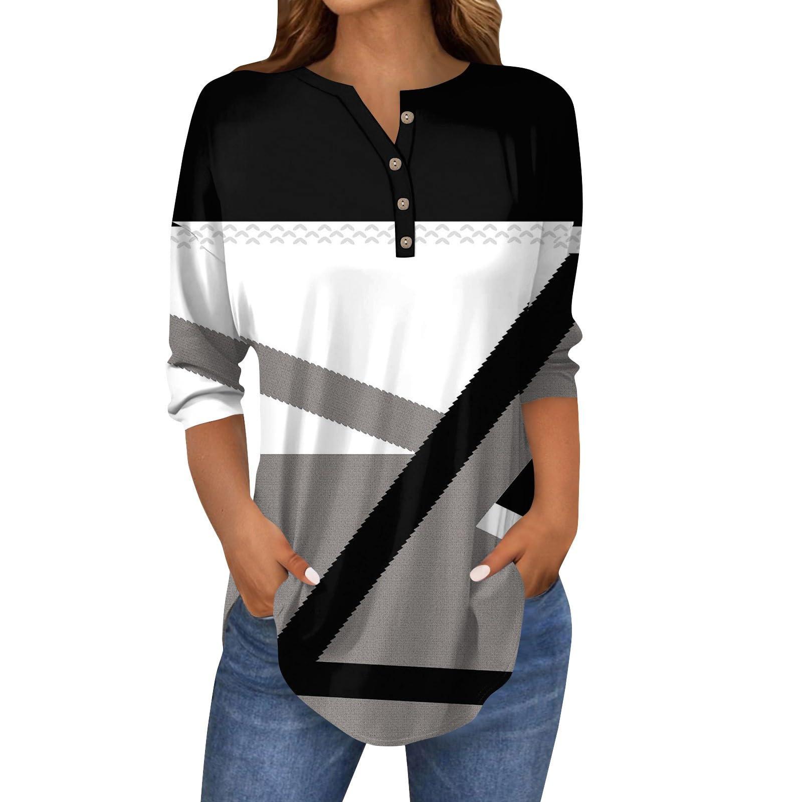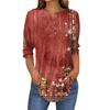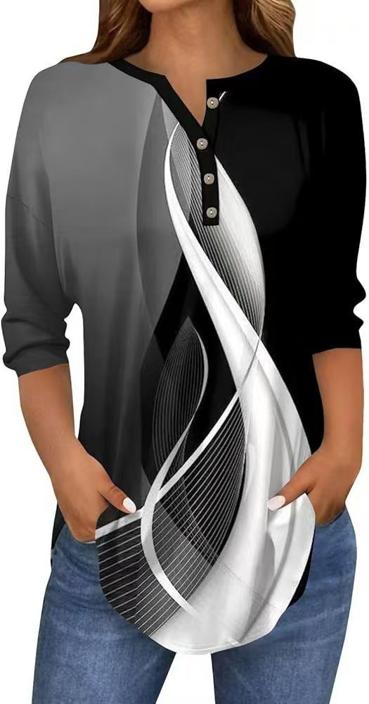Amazon AliExpress 2024 Primavera y Otoño Nuevo Transfronterizo Suelto Manga Siete Puntos Cuello en V Camiseta Casual Estampada Digital