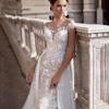 2025 Nuevo Vestido de Novia de Encaje de Cola de Pez Slim de Cuello Redondo Fantasía Blanco Vestido de Novia con Cola Evento Mopa Dos Usos