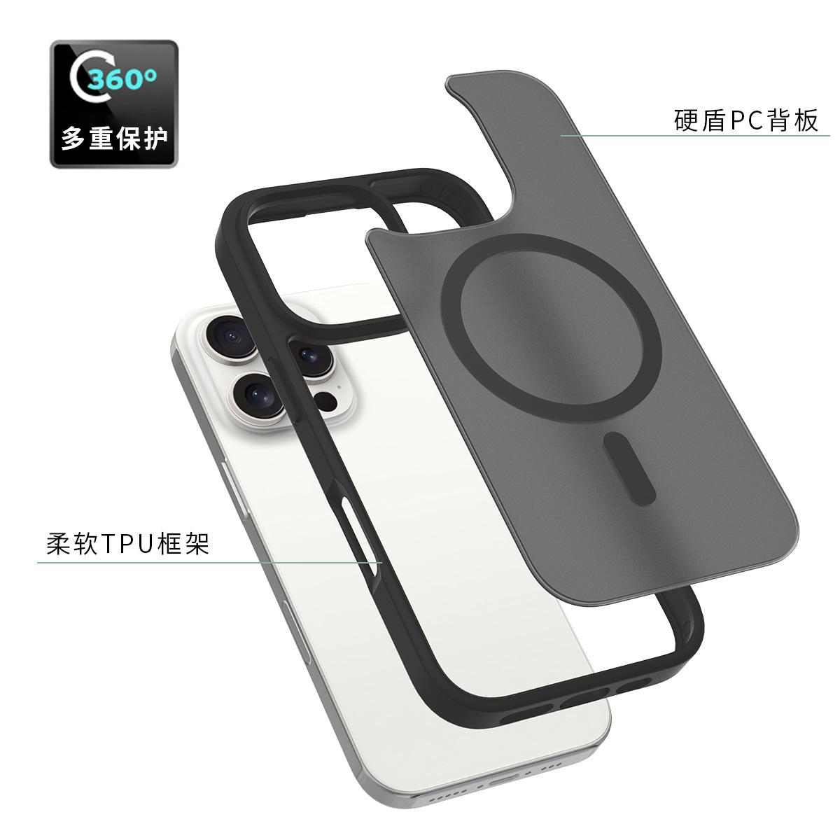 Para iphone16pro funda 2 en 1 con tacto de piel para apple 15 funda protectora de tpu todo incluido resistente a caídas con atracción magnética
