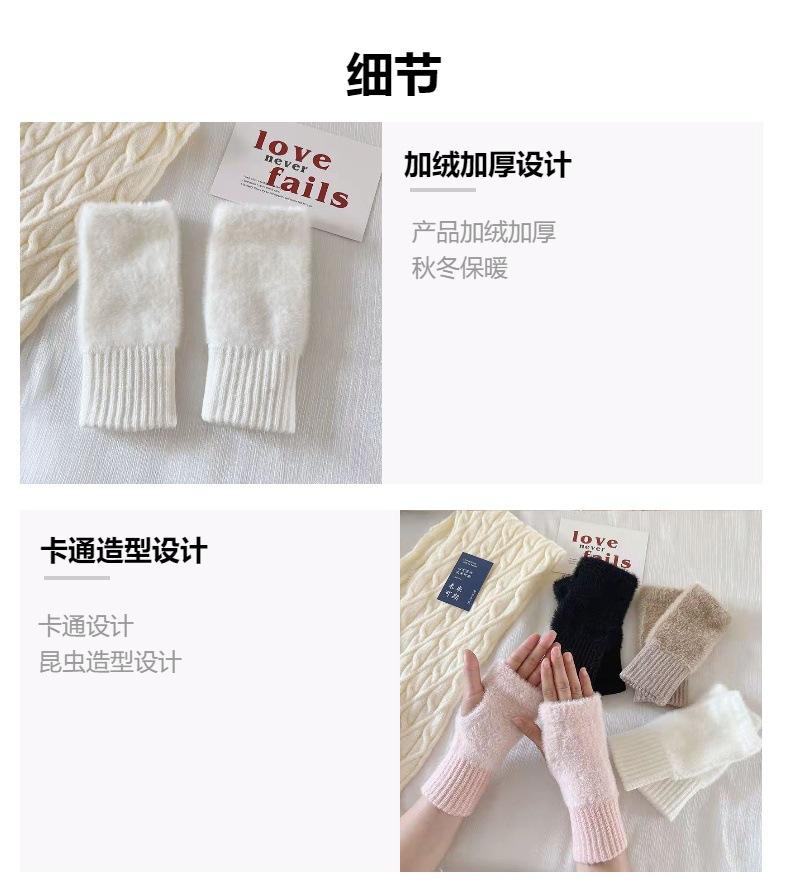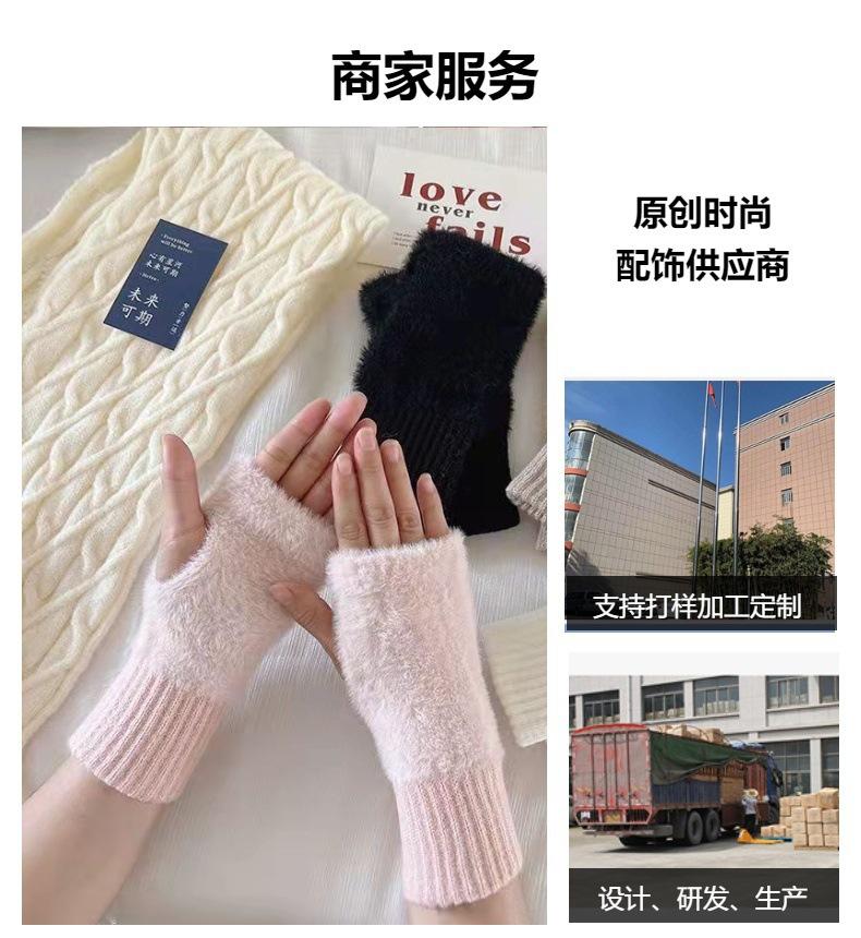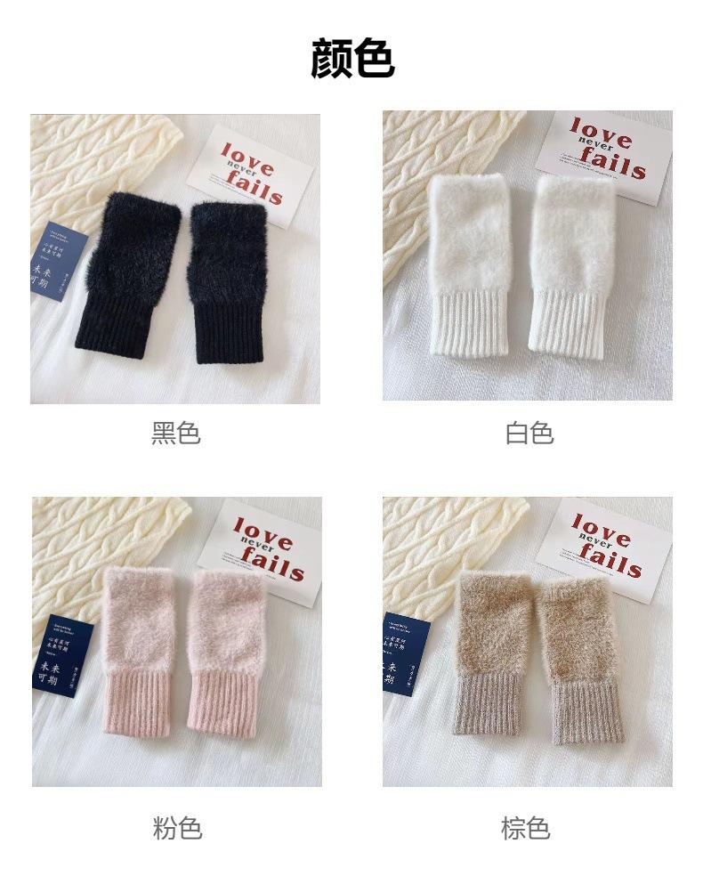 Guantes largos de medio dedo de color sólido para mujer, de lana para escribir, conducir, oficina, pantalla táctil, cálidos y resistentes al frío, guantes de punto