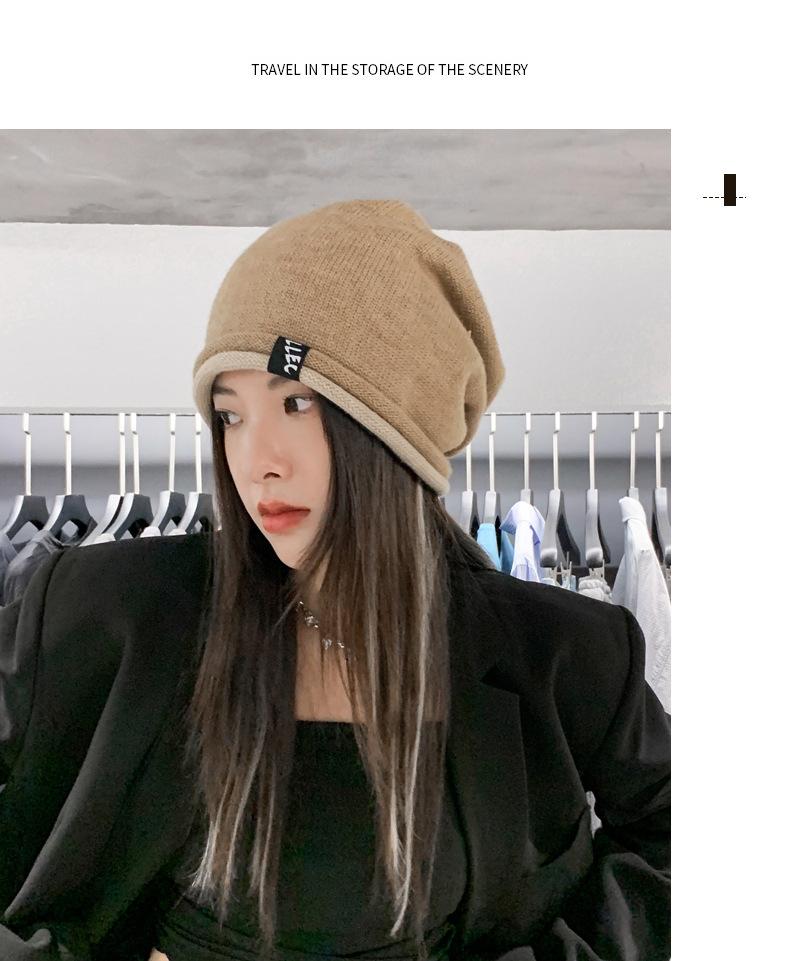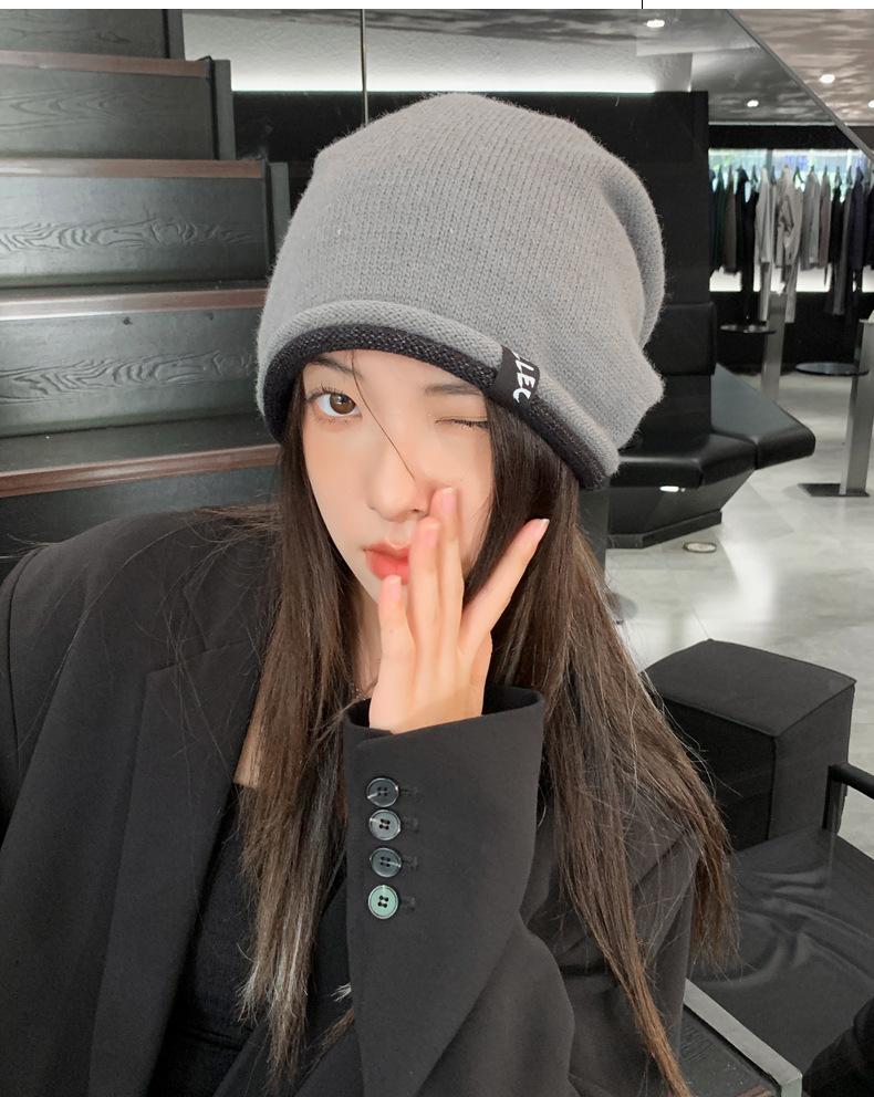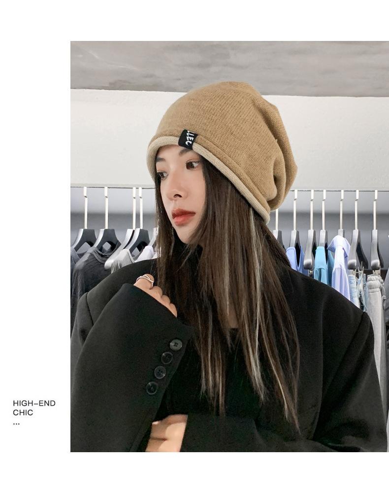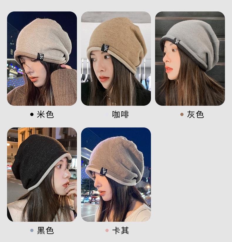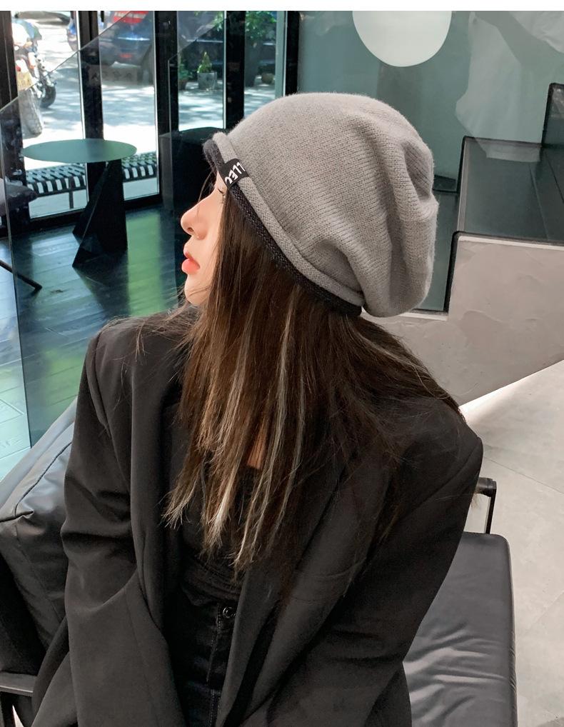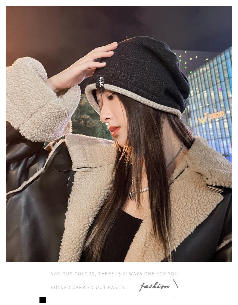 Sombrero Nuevo de Otoño e Invierno Estilo Coreano Sombrero de Lana Tejido con Logotipo Enrollado a la Moda para Mujer Invierno Cálido Popular Sombrero de Pila Sombrero Pulóver