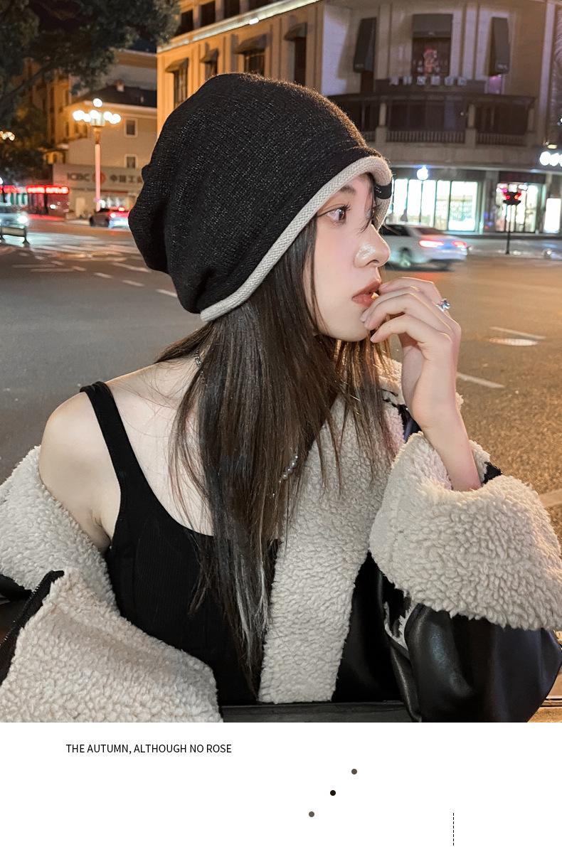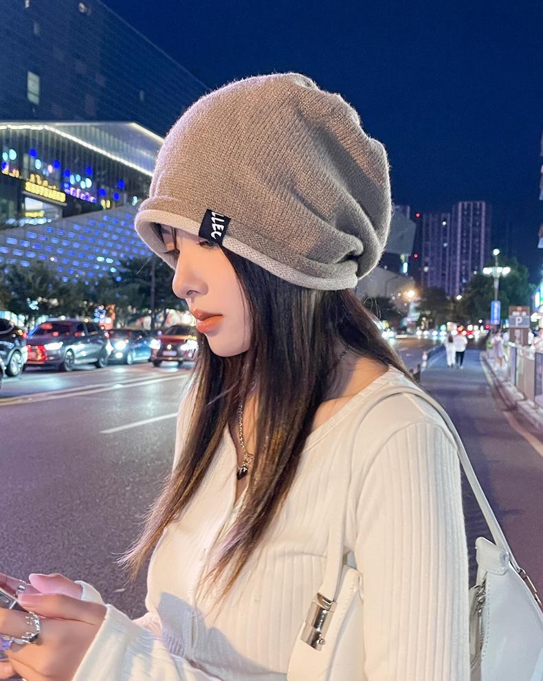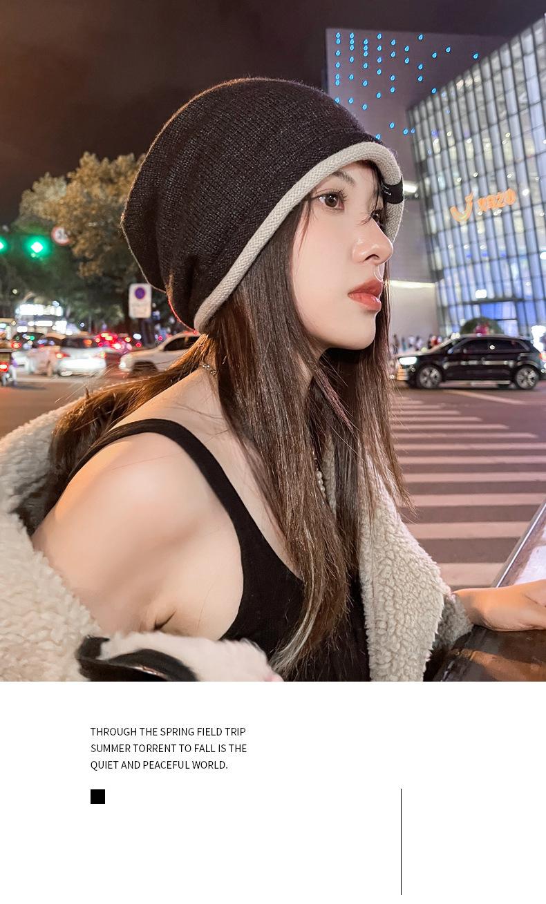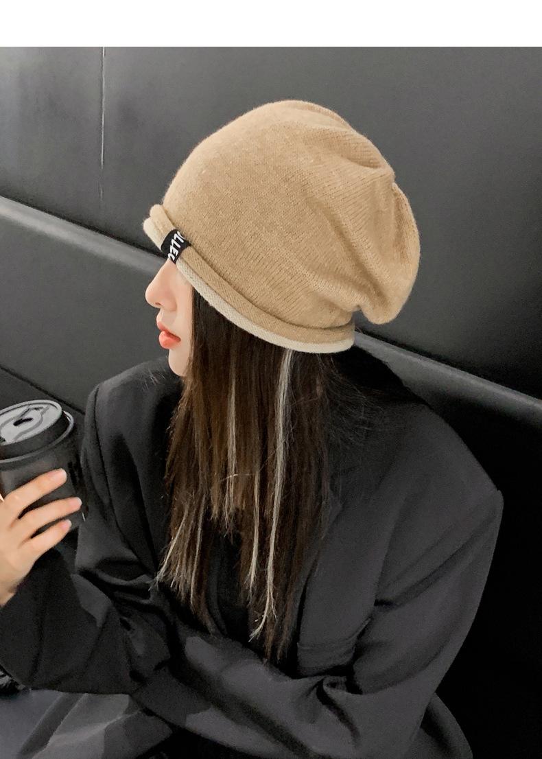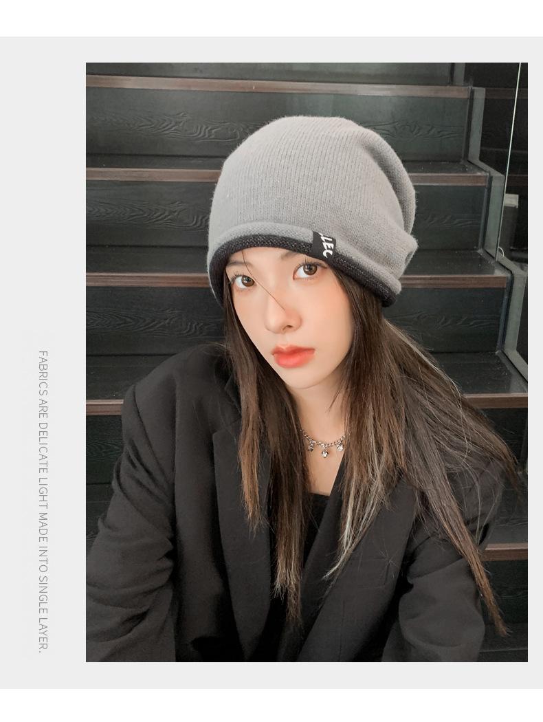Sombrero Nuevo de Otoño e Invierno Estilo Coreano Sombrero de Lana Tejido con Logotipo Enrollado a la Moda para Mujer Invierno Cálido Popular Sombrero de Pila Sombrero Pulóver