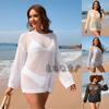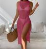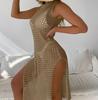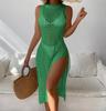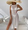 Amazon 2024 Nuevo Verano Vacaciones Sexy Color Puro Cuello Redondo Sin Mangas Vestido Tejido Playa Blusa Protección Solar