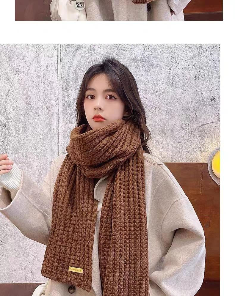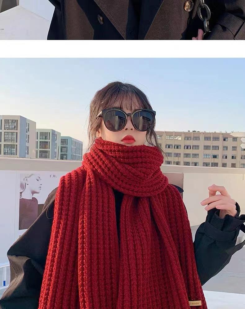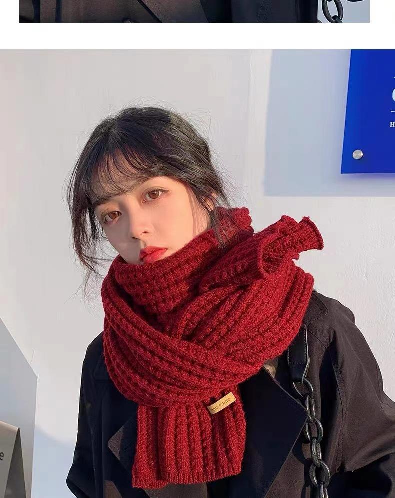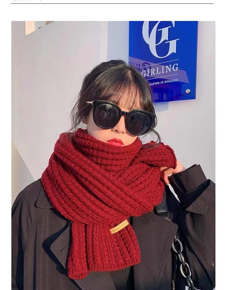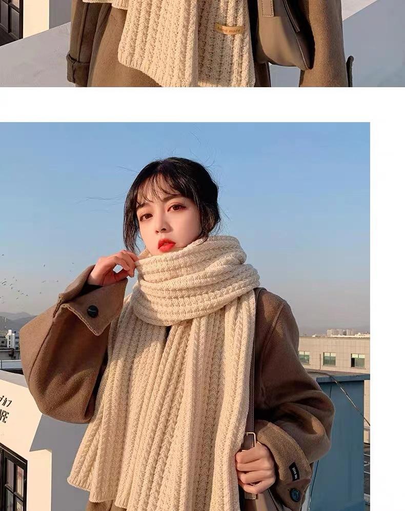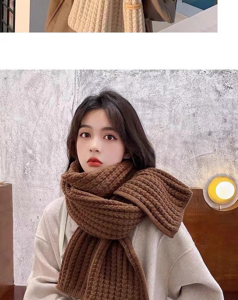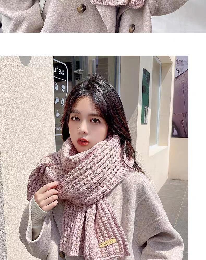 Bufanda de Invierno para Mujer Estilo Coreano Color Sólido Tejida Lana Lana Cálida Estudiante Linda Pareja Celebridad de Internet Bufanda Moda Combinable