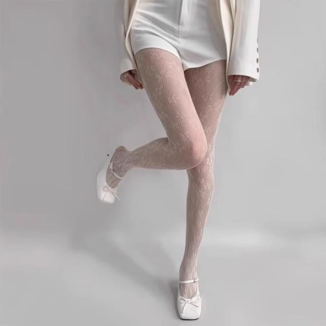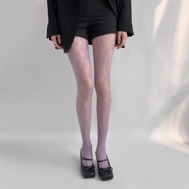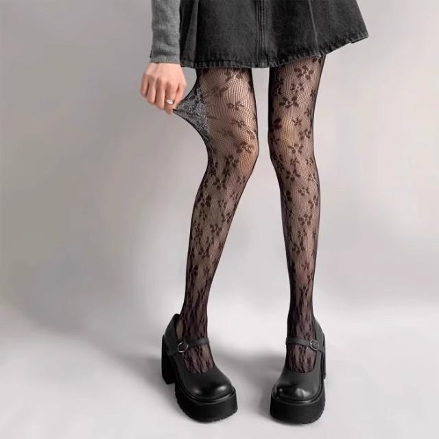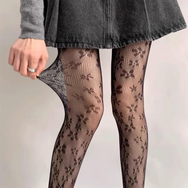 Ins Calado Sarga Enredadera Encaje ~ Leggings Calcetines de Seda Anti-gancho Lolita Medias de Encaje para Mujer Chica Caliente