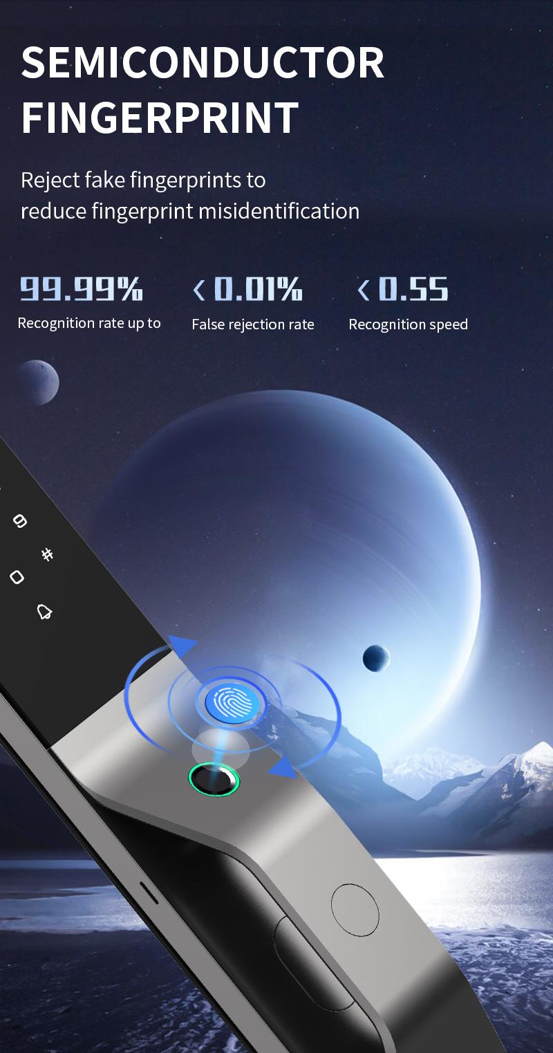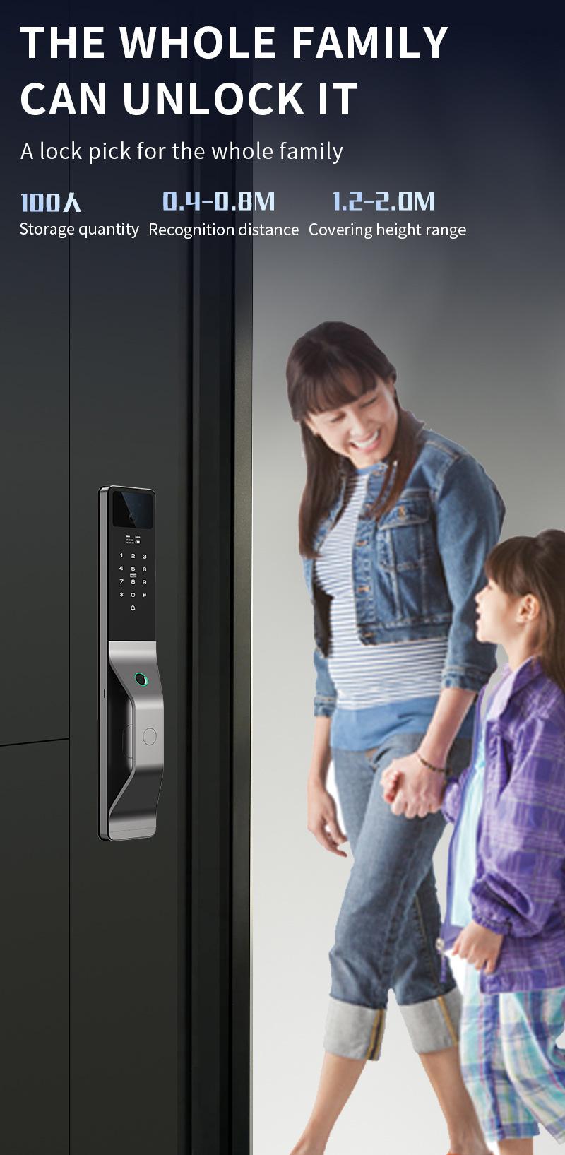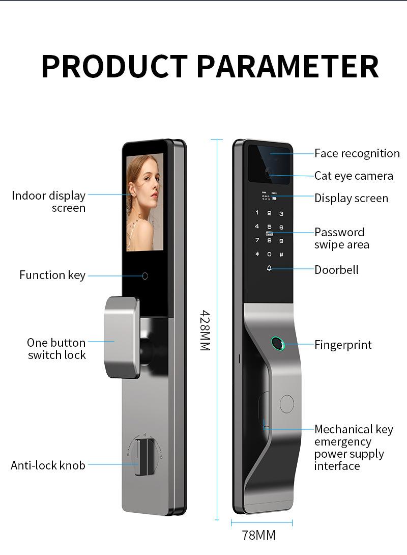 Fingerprint, Password, With key, Visual cat eye, Face recognition, No hole opening, Remote unlock
