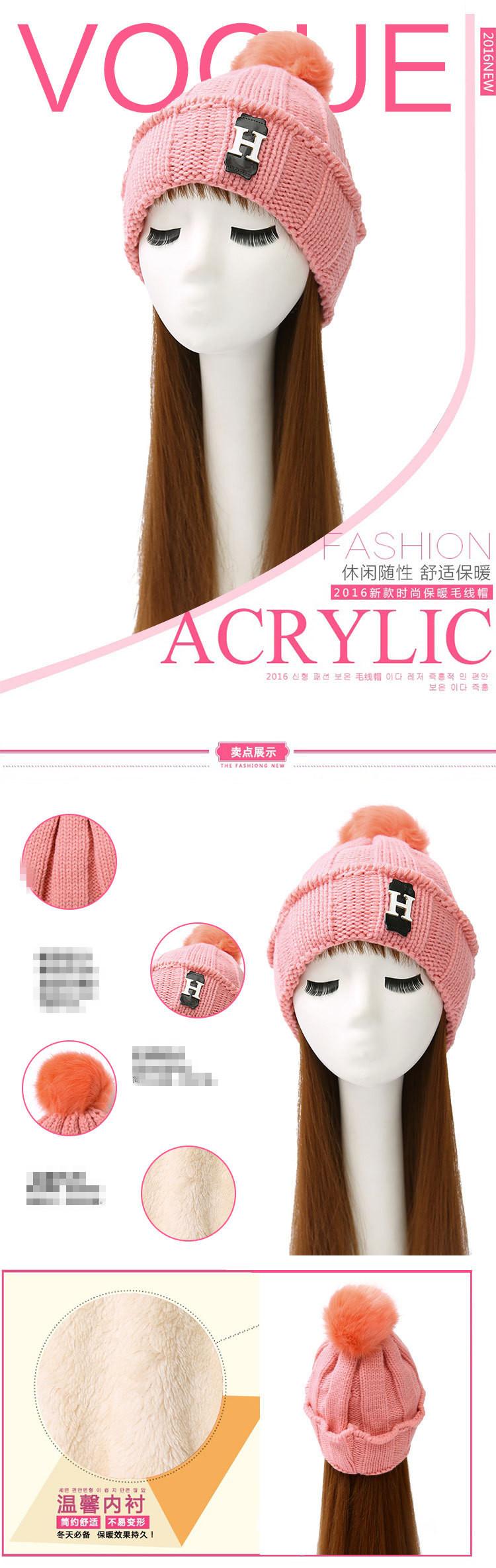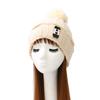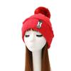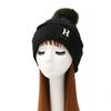 Gorro de otoño e invierno estilo coreano de moda para mujer, gorro tejido con letra H, pompón de piel, borde ondulado, cálido de lana, venta al por mayor