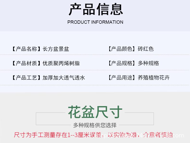 Maceta Rectangular Gruesa de Plástico para Bonsái Base de Maceta Rectangular para Flores Maceta Especial para Bonsái Maceta para Plantar para Balcón Exterior
