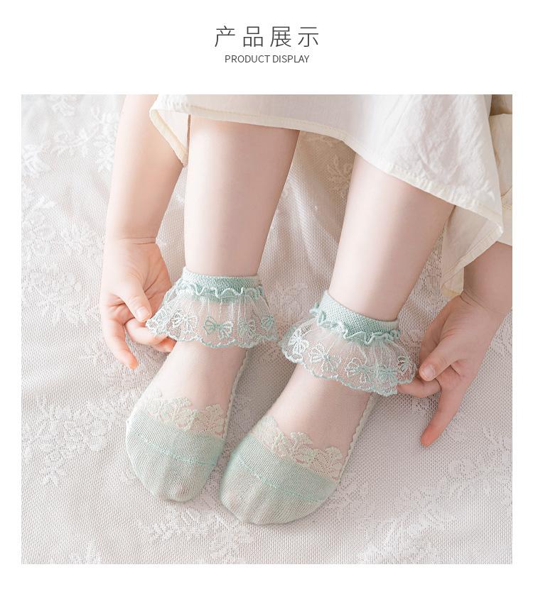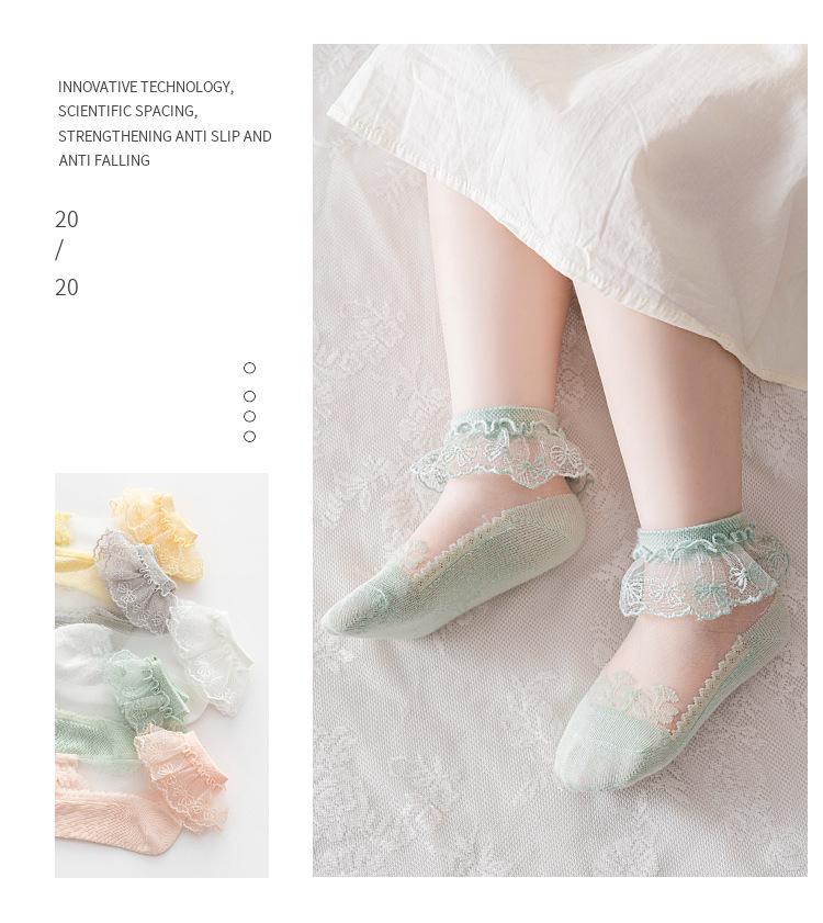 [Explosiones] Calcetines para niños verano transpirables malla fina encaje calcetines color sólido versátiles calcetines de princesa