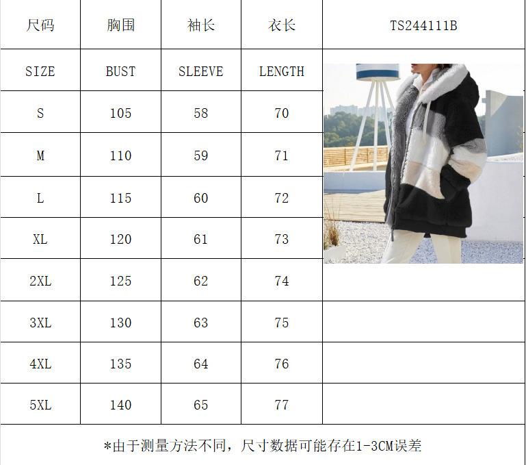 2024 otoño e invierno transfronterizo Amazon Europa y Estados Unidos cálido felpa patchwork cremallera bolsillo con capucha abrigo holgado mujer