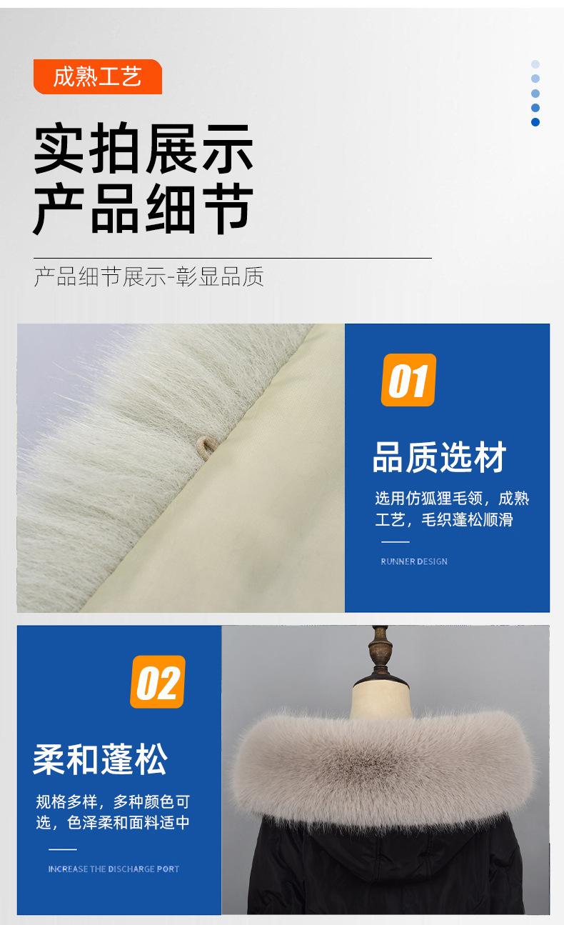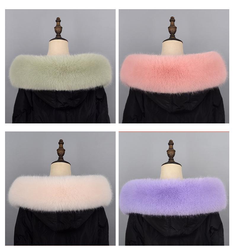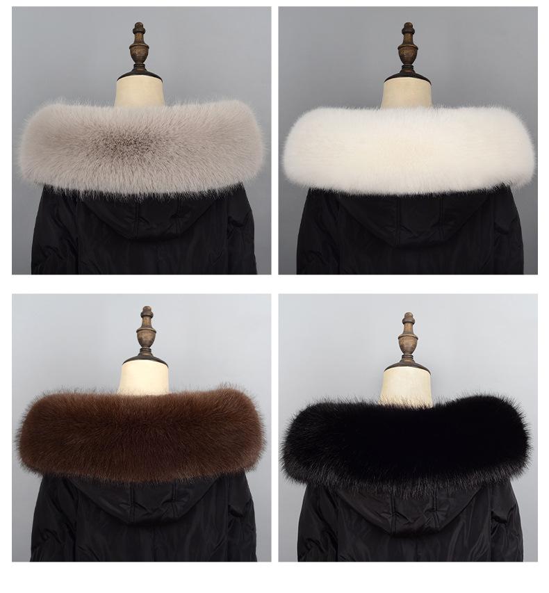 Chaqueta de plumón con cuello de piel sintética de zorro al por mayor, traje de piqué, cuello de piel grande, ropa de lana y cuero, piel universal, ropa con cuello falso