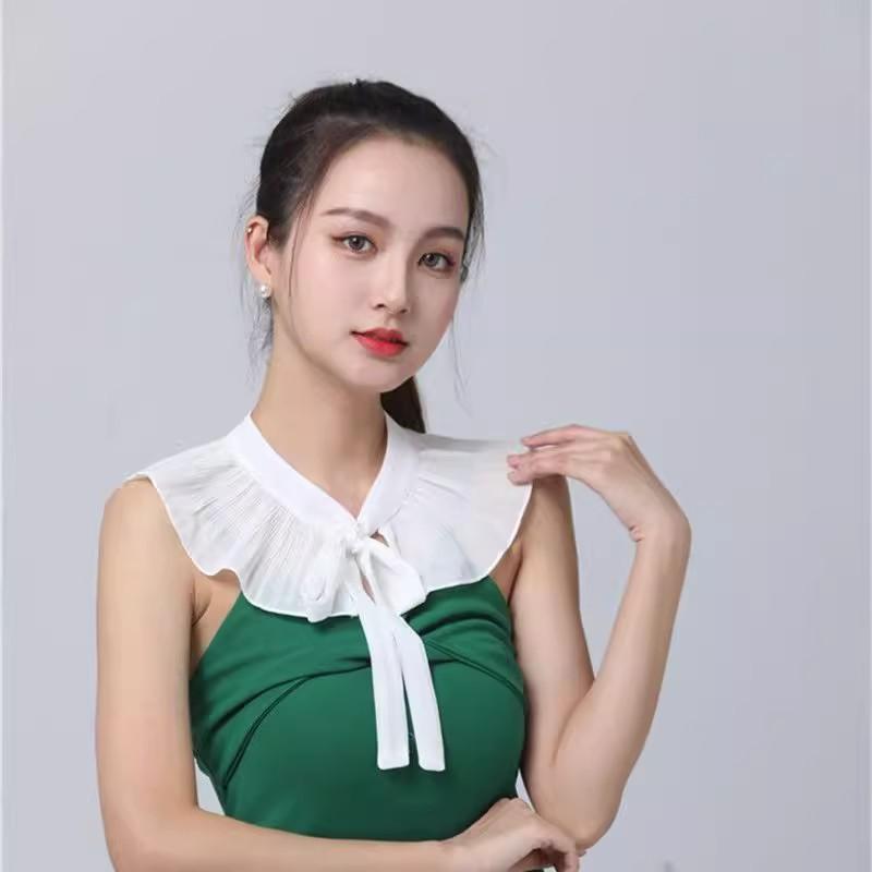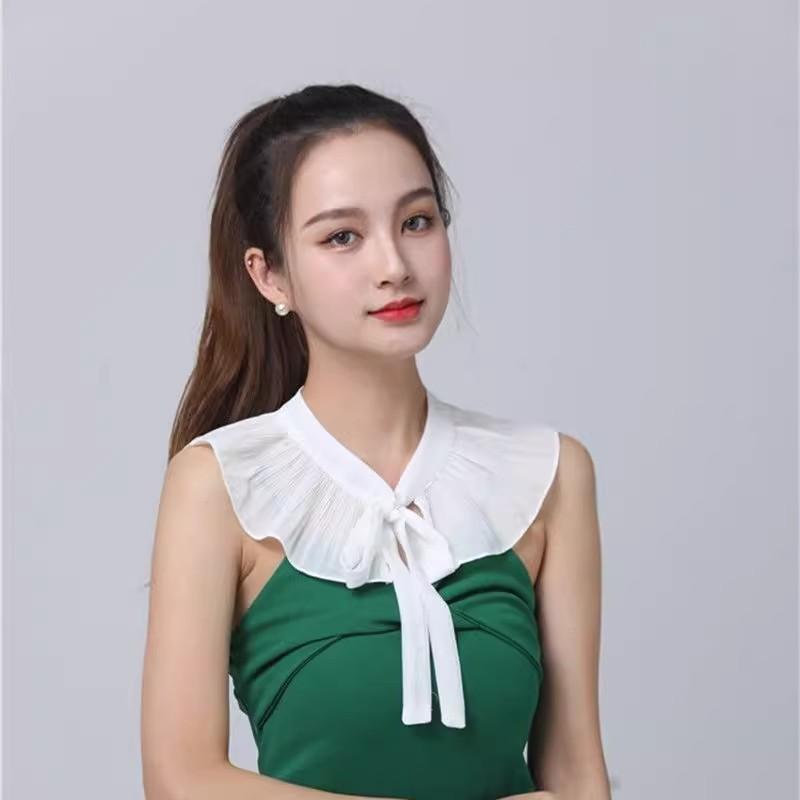 Chal pequeño de gasa primavera/verano 2024 nuevo cuello de encaje plisado con cordones plisado cuello de muñeca a juego cuello falso para niños
