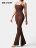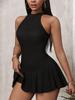 Mono de Verano 2025 Nuevo Llegada Mono de Mujer Sexy Ajustado a la Moda Plisado Color Sólido Cuello Halter Sin Mangas Mono de Mujer