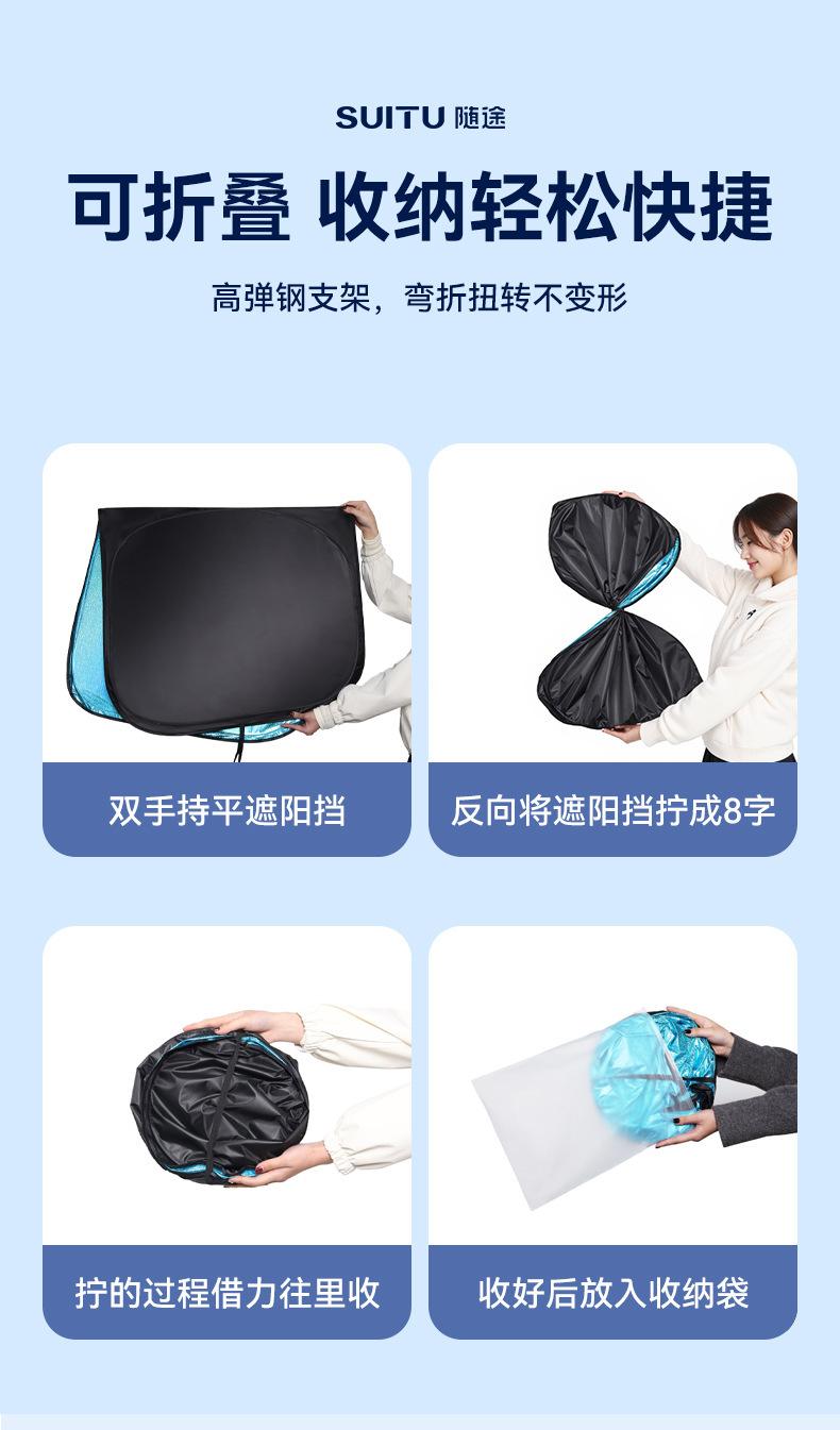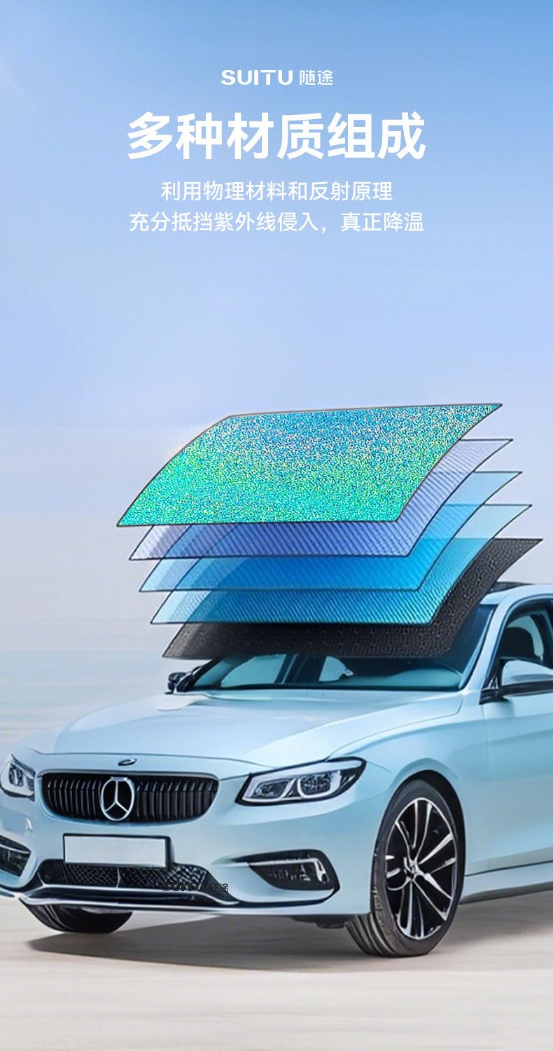 La fuerte luz solar entra directamente por las ventanillas laterales, lo que no solo deslumbra, afecta la conducción y resulta insoportable, sino que las altas temperaturas también dañan el interior de cuero del coche. Este parasol aísla eficazmente el calor y la exposición a altas temperaturas, ¡y es fácil de usar!