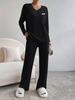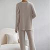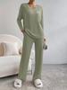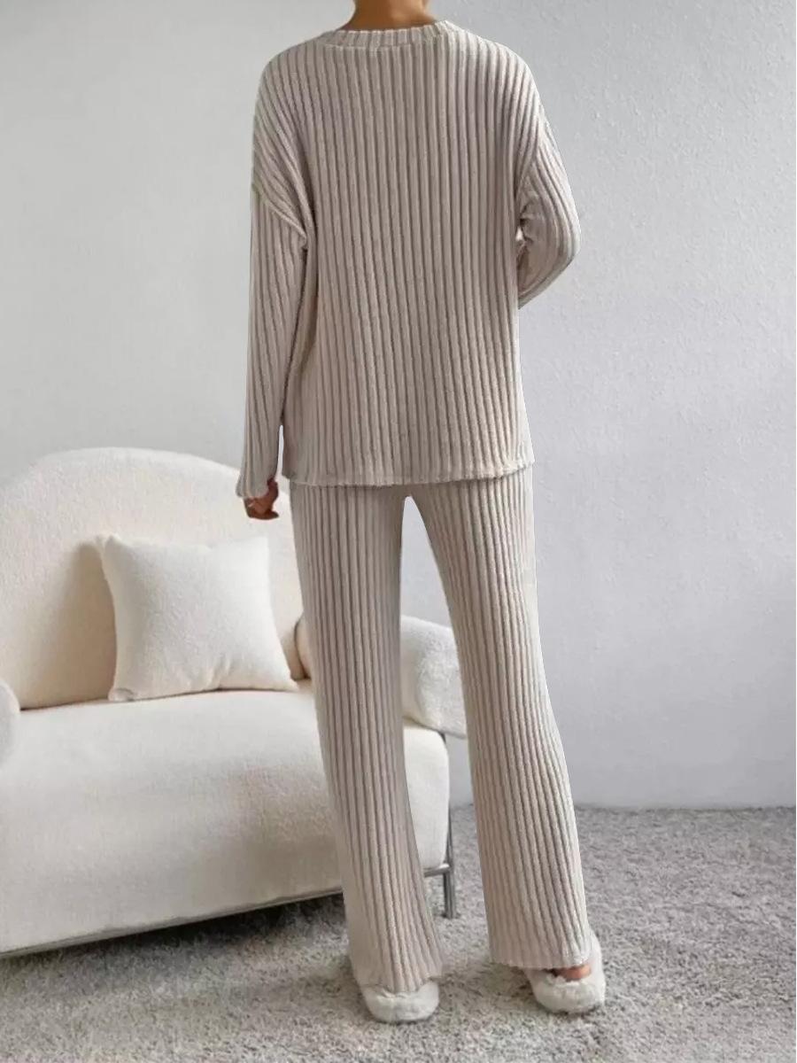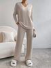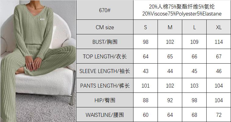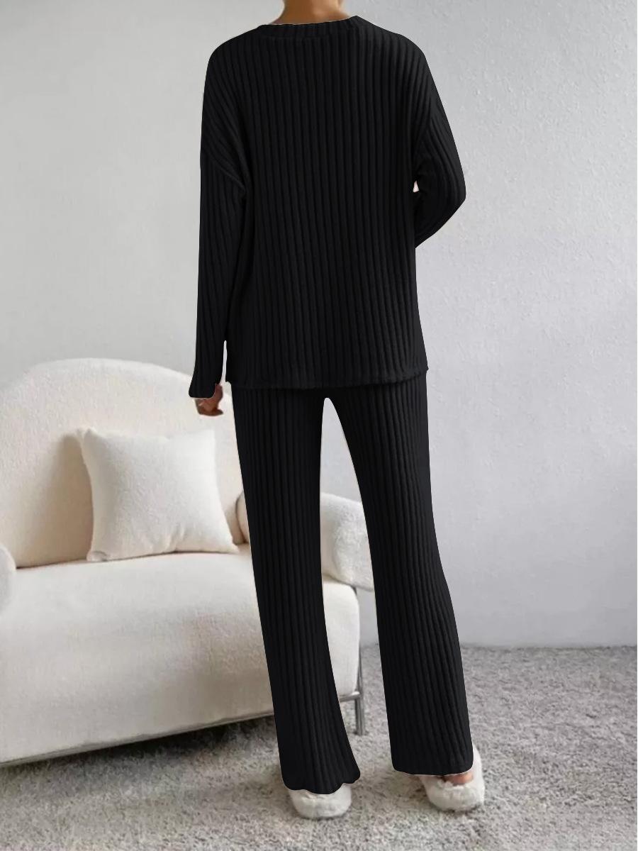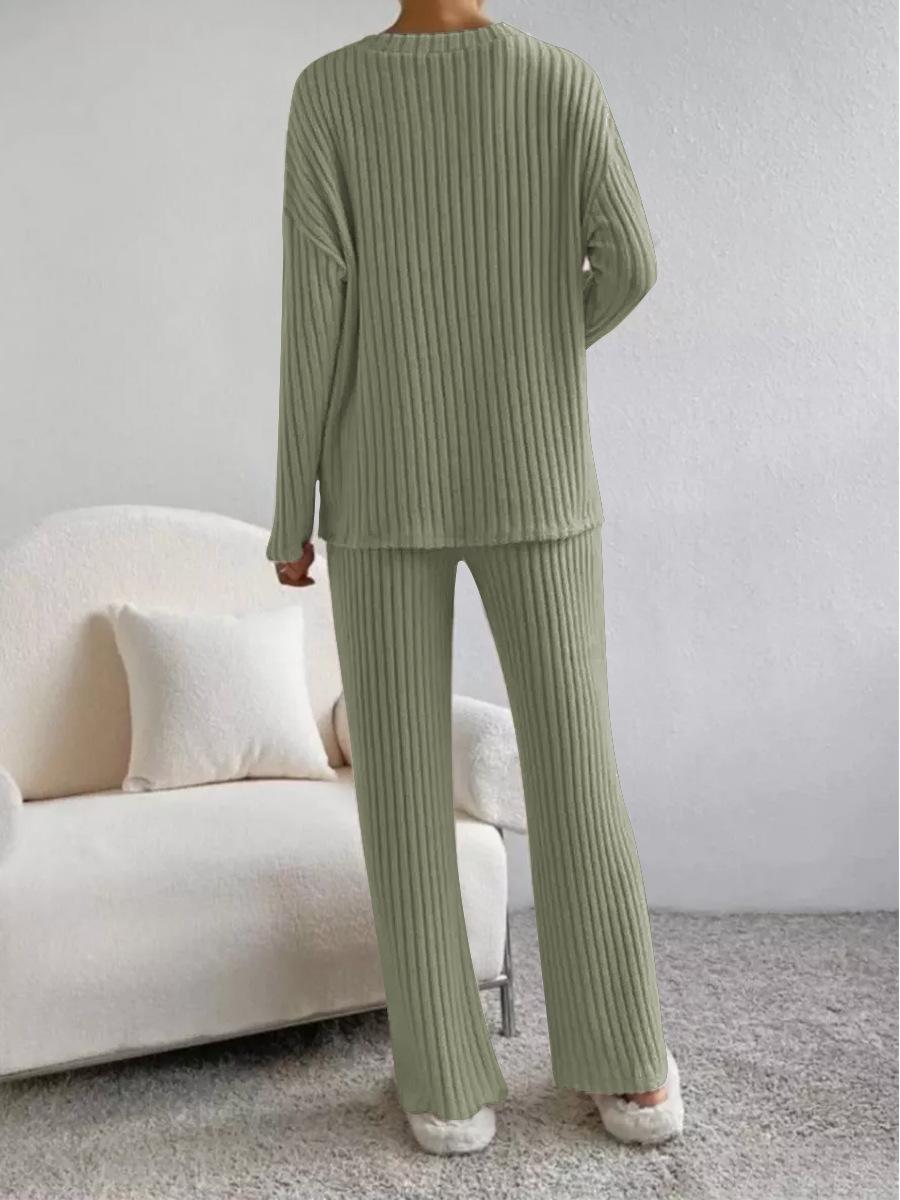 Traje de punto de canalé elegante con cuello en V para mujer, otoño 2025, nueva moda casual, pantalones rectos, de dos piezas transfronterizo