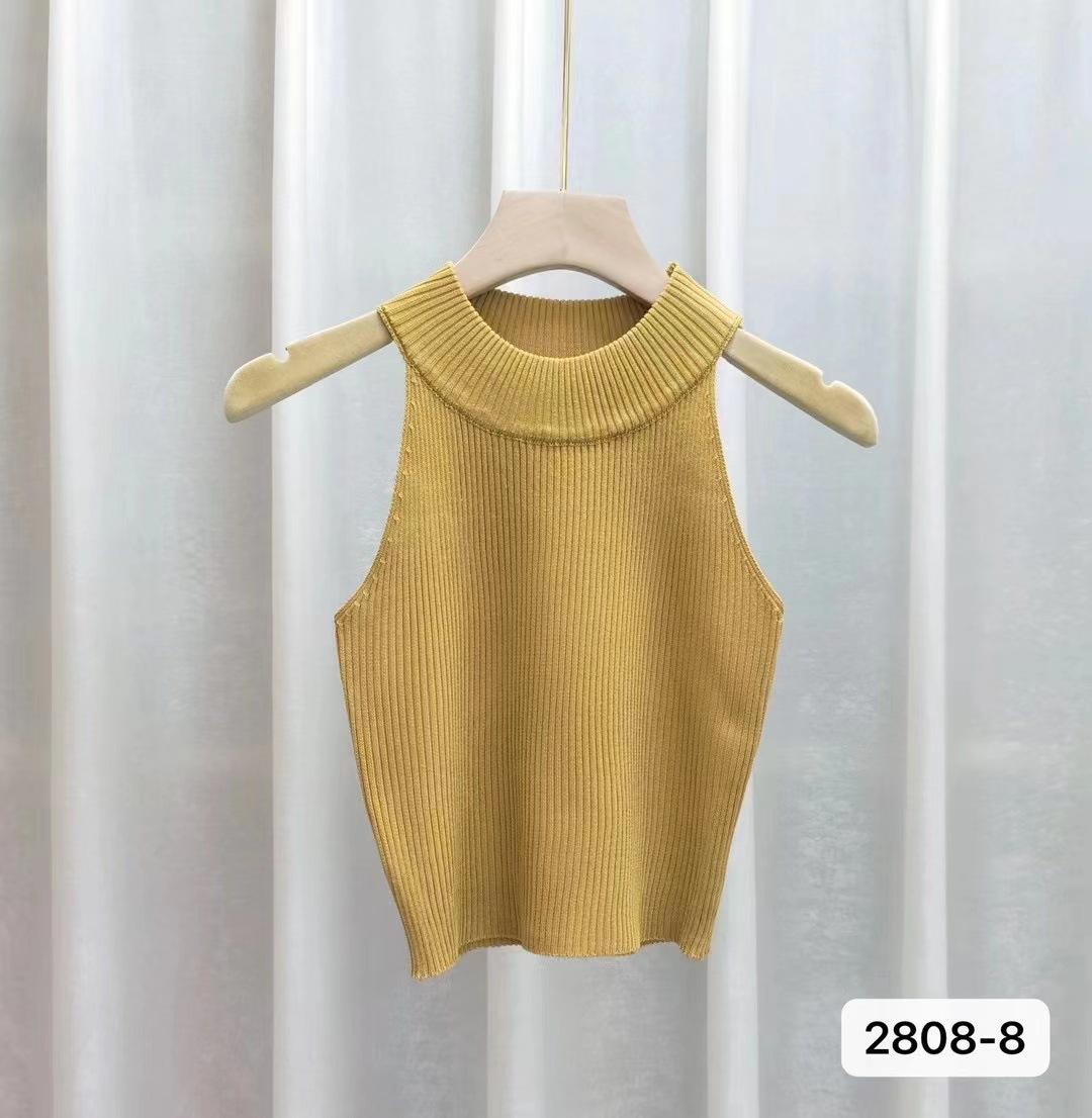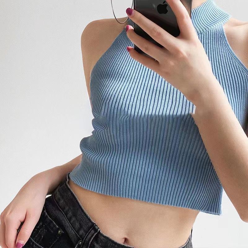 Estilo Deseo Puro Cabestrillo de Cuello Colgante Chaleco Pequeño para Mujer Primavera y Otoño Moda Chica Caliente Sexy para Llevar Debajo Camiseta Básica Tejida Top