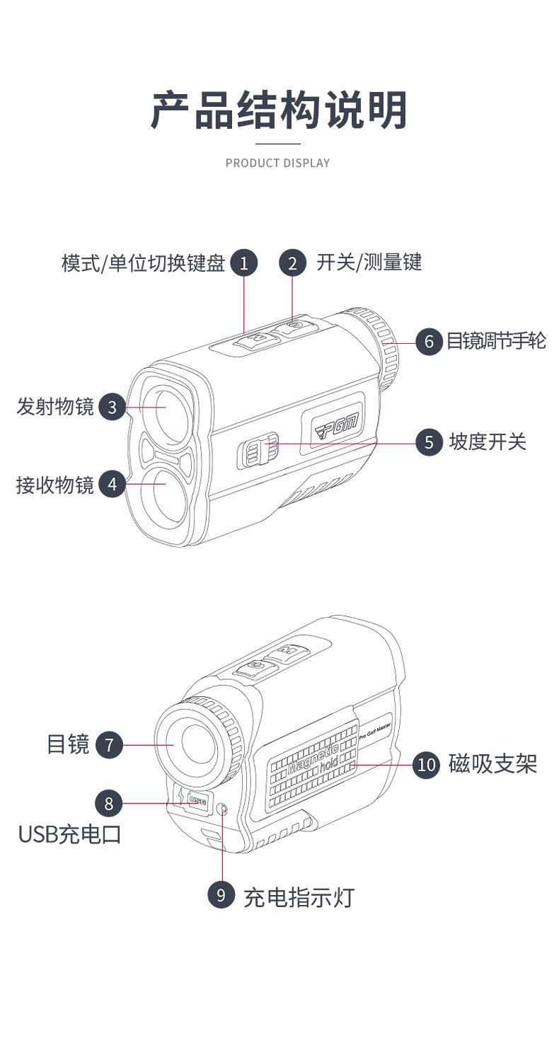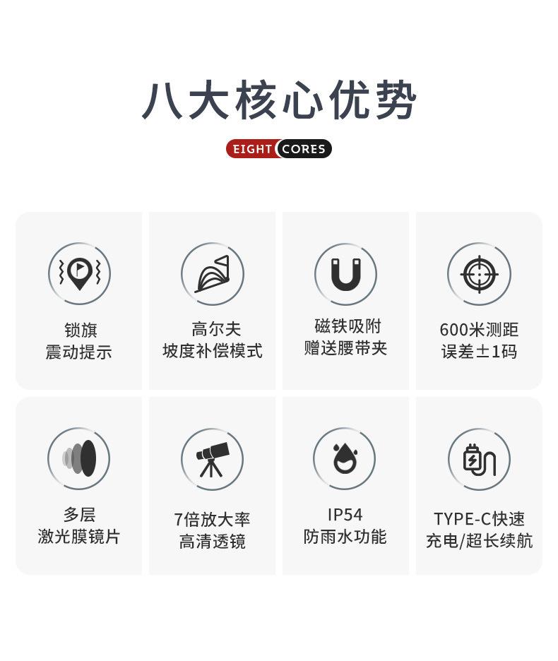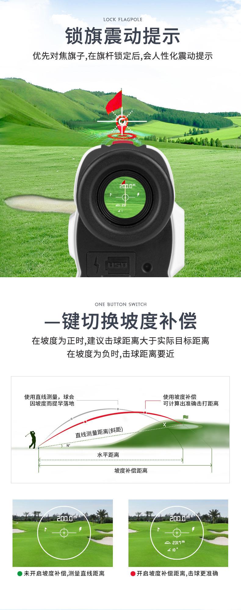 Medición de distancia de 600 metros | Modo de Compensación de Pendiente | Bloquear aviso de vibración de bandera | ||||