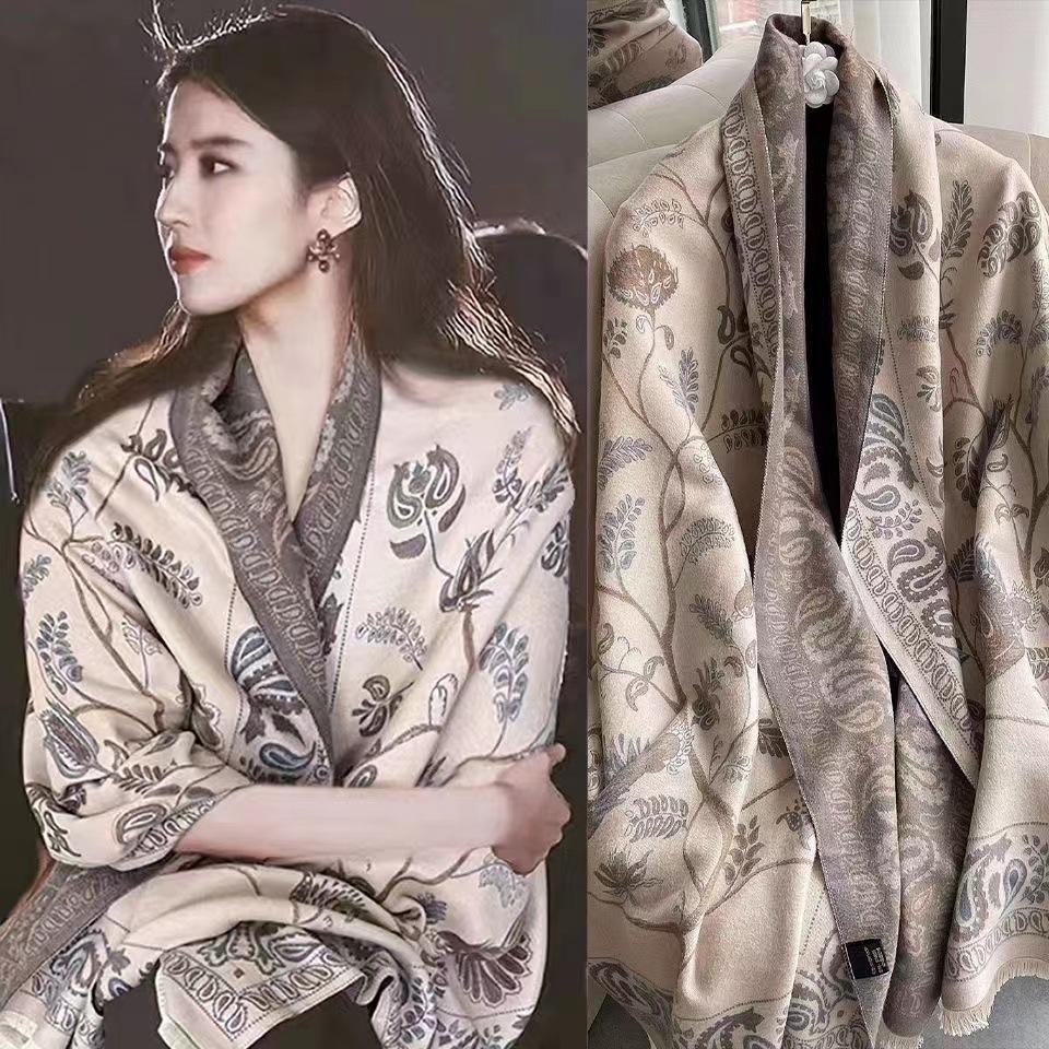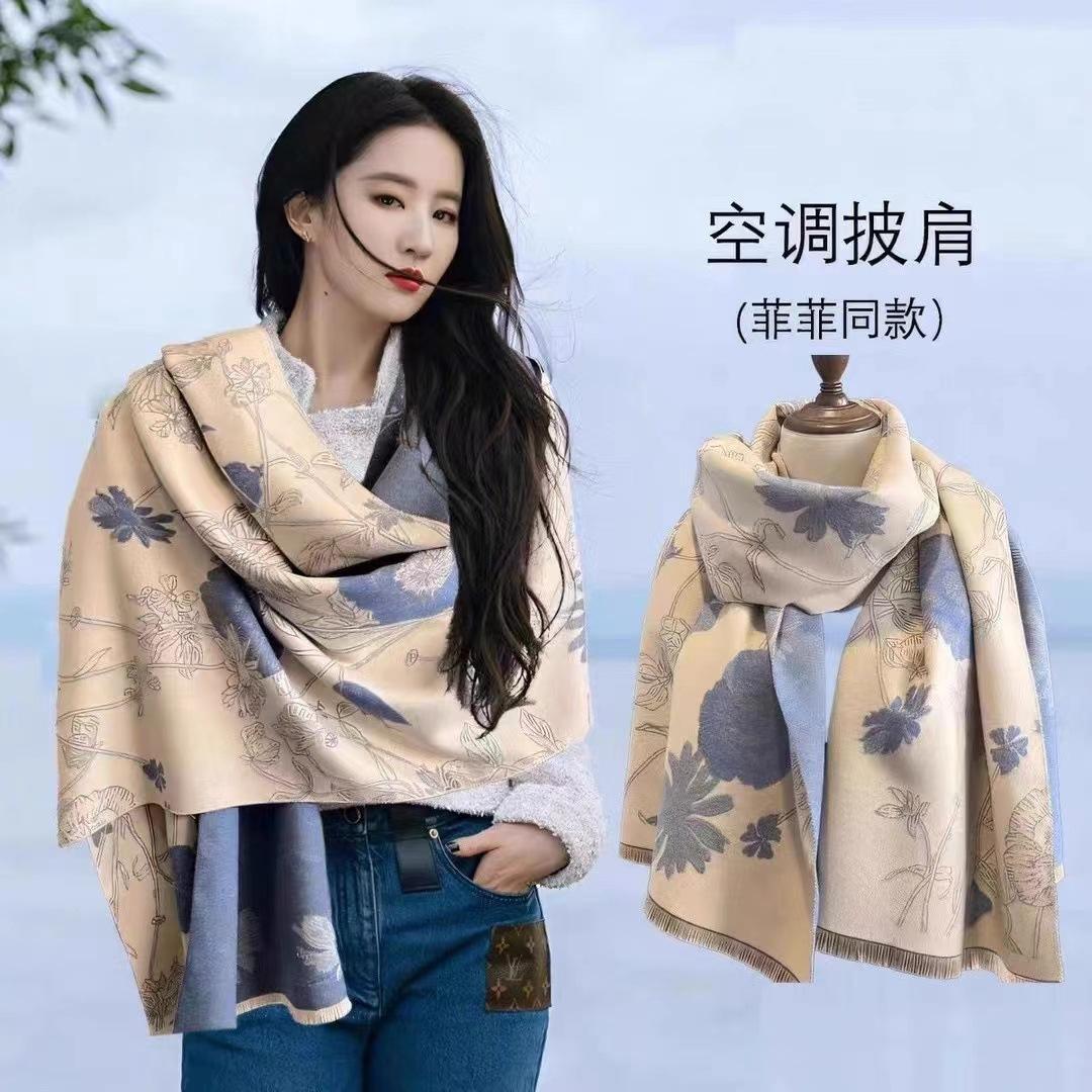 Bufanda de Cachemira Imitación al por Mayor de Fábrica Estilo Coreano para Mujer Chal Estampado para Aire Acondicionado 2025 Nuevo Bufanda Gruesa y Cálida de Cuello de Doble Cara