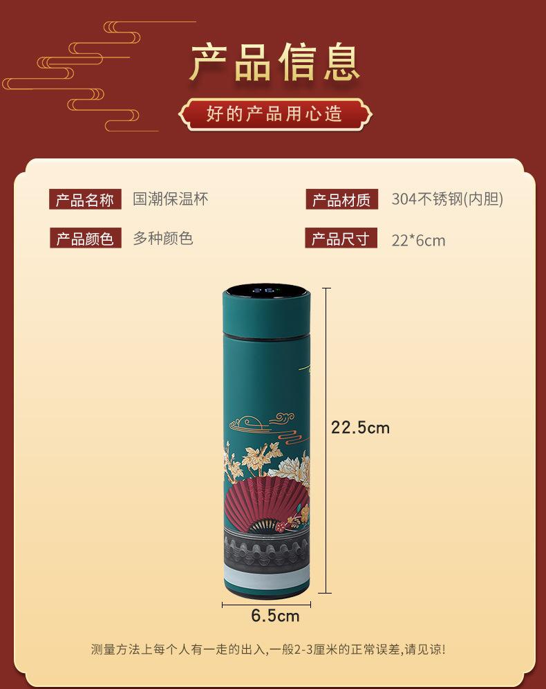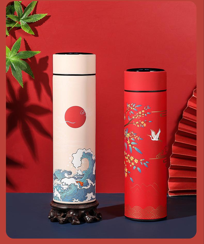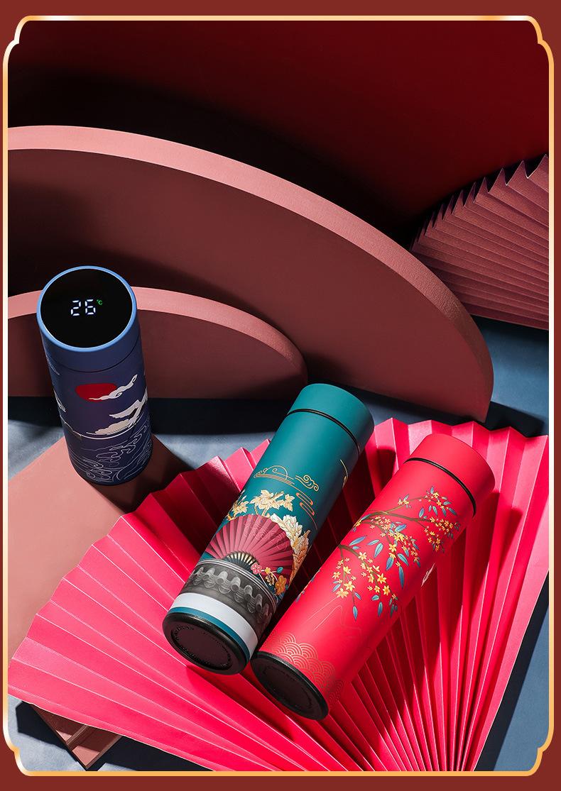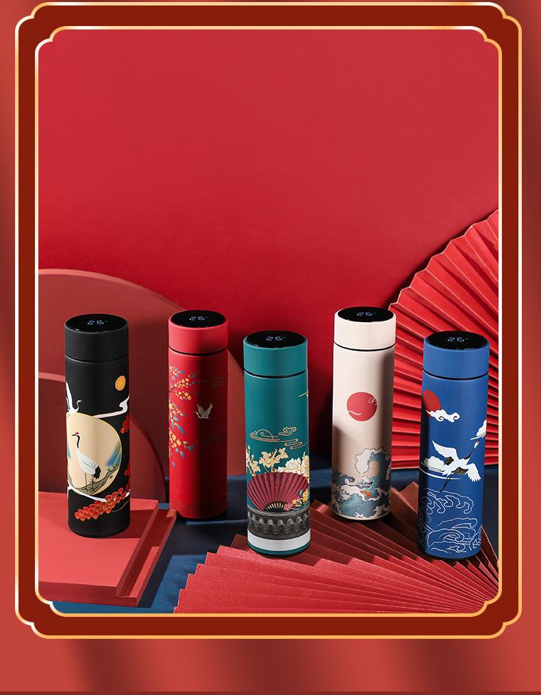 Termo Inteligente Estilo Nacional Regalo de Negocios Estilo Chino Vaso de Agua de Gran Capacidad Vaso con Pantalla de Temperatura Venta al Por Mayor Logo Impreso