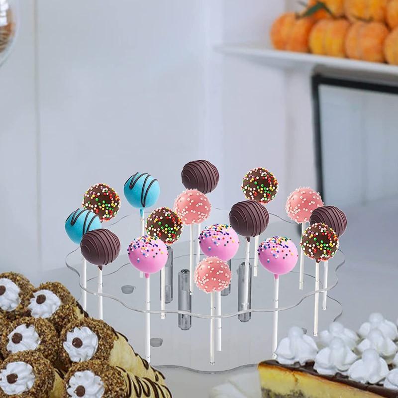 Soporte acrílico para exhibir paletas de 16 orificios, soporte para dulces con disco de encaje, decoración para dulces, soporte para dulces para boda, fiesta de cumpleaños