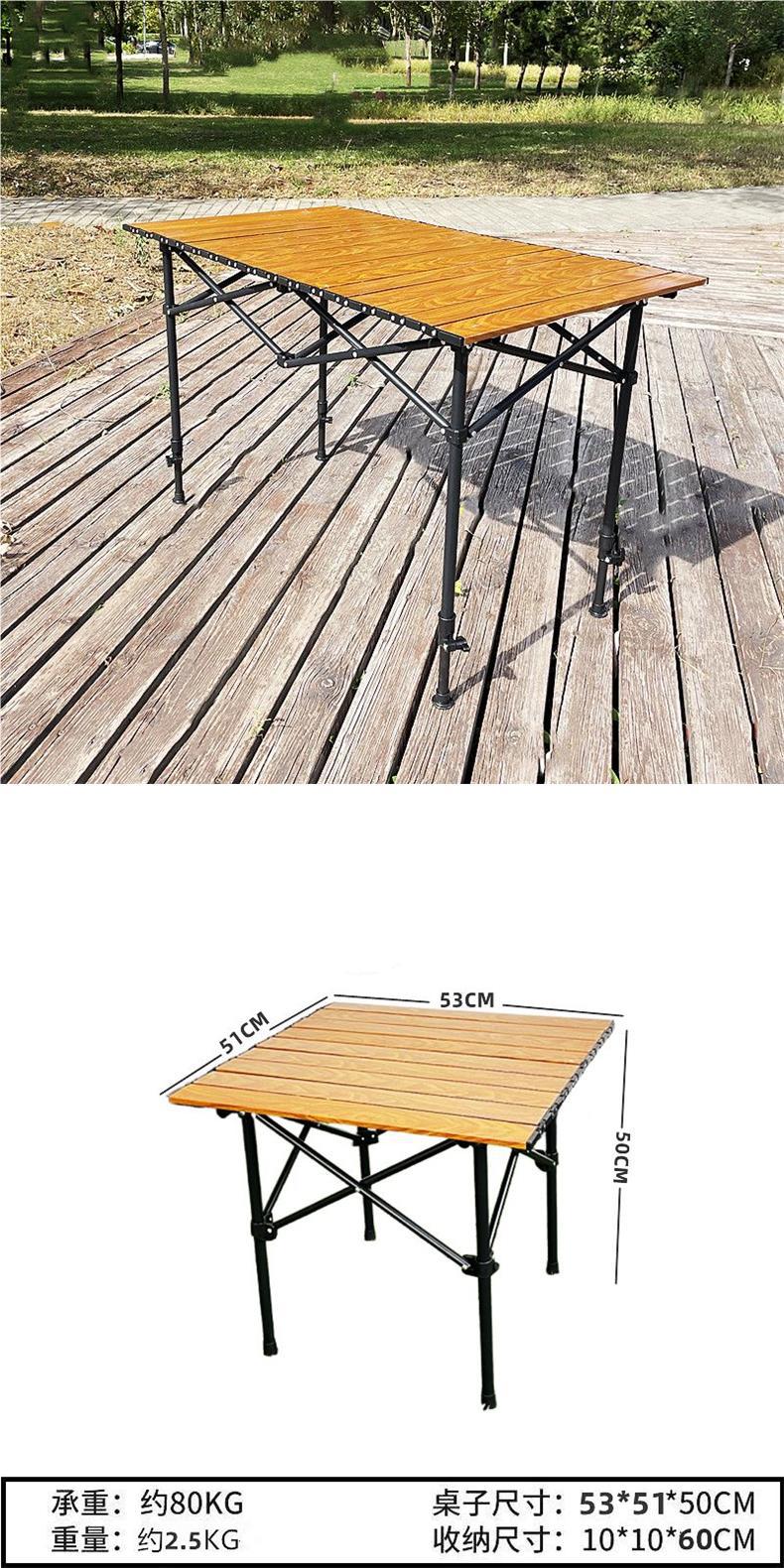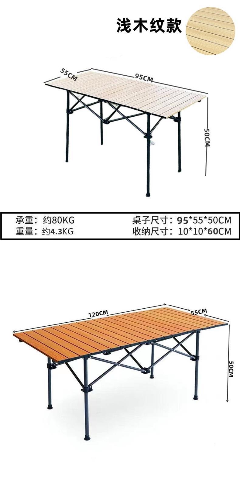 Mesa para Rollo de Huevo con Grano de Madera para Exterior Altura Ajustable Camping Puesto de Barbacoa Mesa Plegable Mesa Plegable para Exterior Elevable