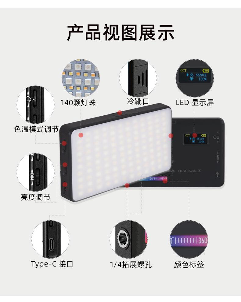 Luz de relleno RGB Pantalones de bolsillo con solapa portátiles Iluminación LED de mano Foto Micro SLR Teléfono móvil Vlogging Luz de fotografía