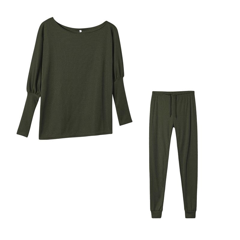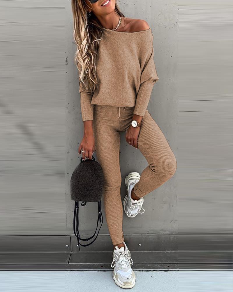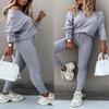 2023 Europeo y Americano comercio exterior más vendido al por mayor color sólido moda casual encaje hombro inclinado pantalones deportivos traje largo ropa de mujer