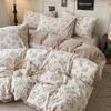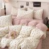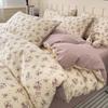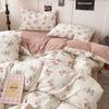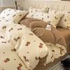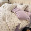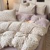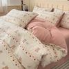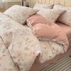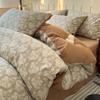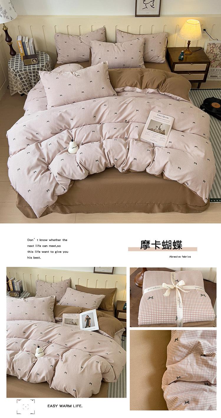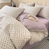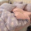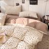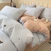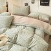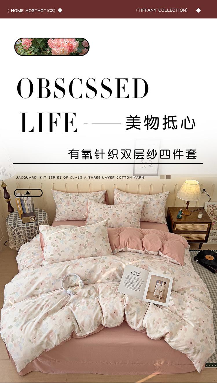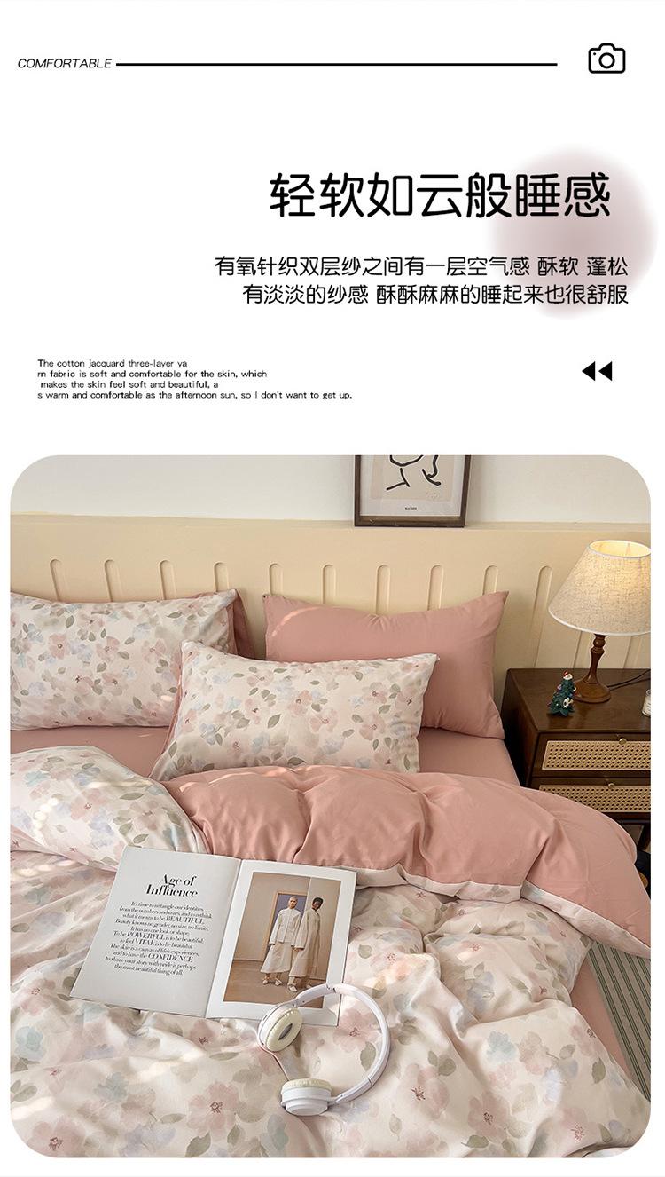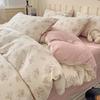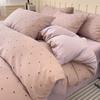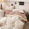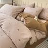 Conjunto de cuatro piezas de algodón de punto aeróbico de grado materno e infantil Clase A pequeño y fresco, juego de tres piezas para cama de doble hilo, funda de edredón, ropa de cama