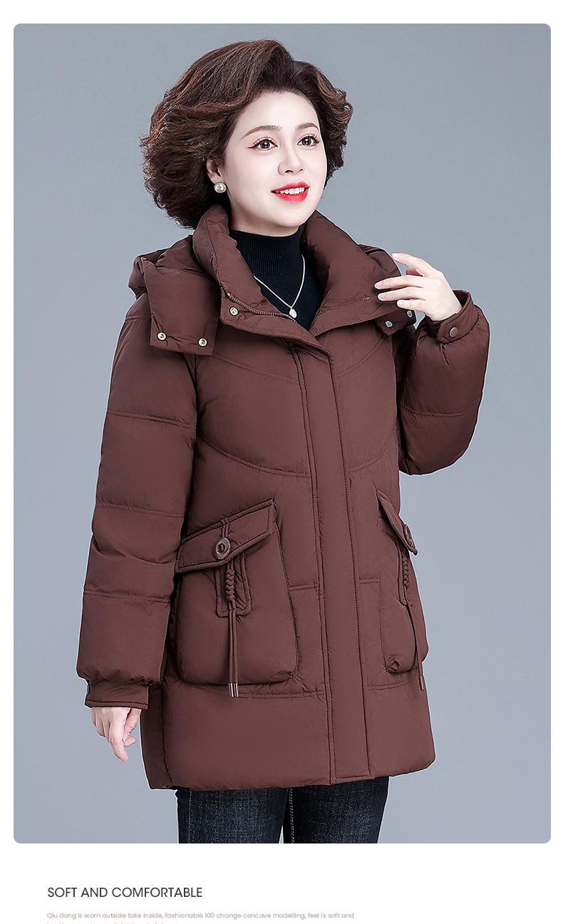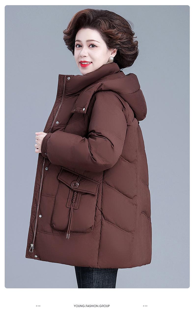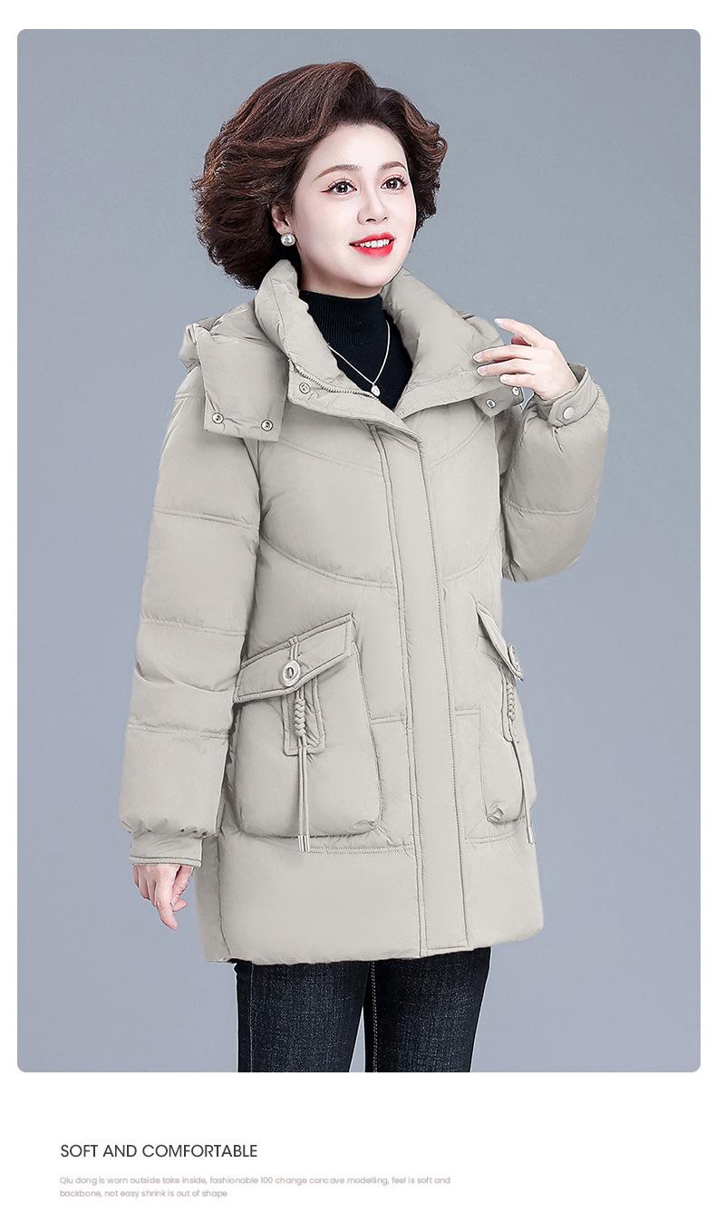 Chamarra de Plumas Ropa de Invierno para Madre Abrigo de Dama Noble Estilo Occidental Ropa Acolchada de Algodón Gruesa y Cálida con Capucha para Mujeres de Mediana Edad y Mayores Otoño e Invierno