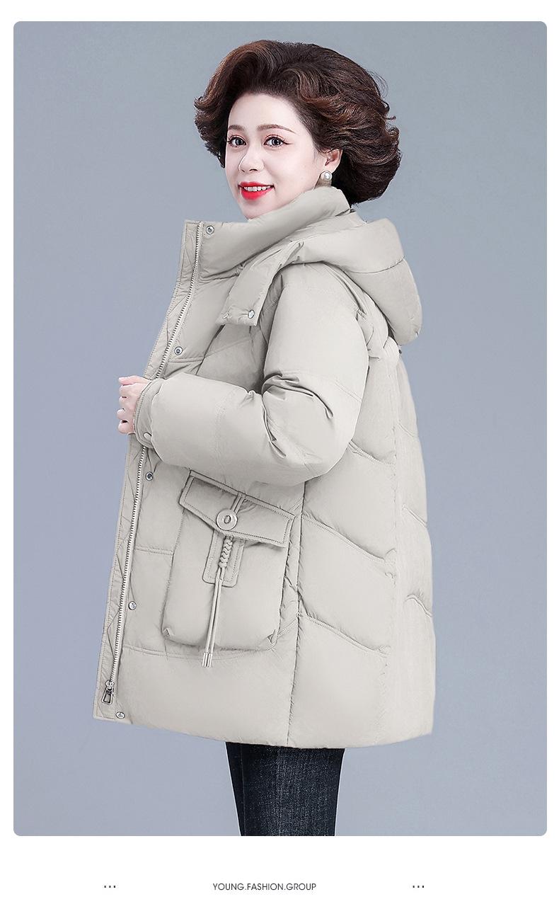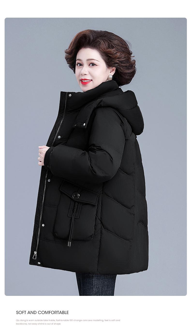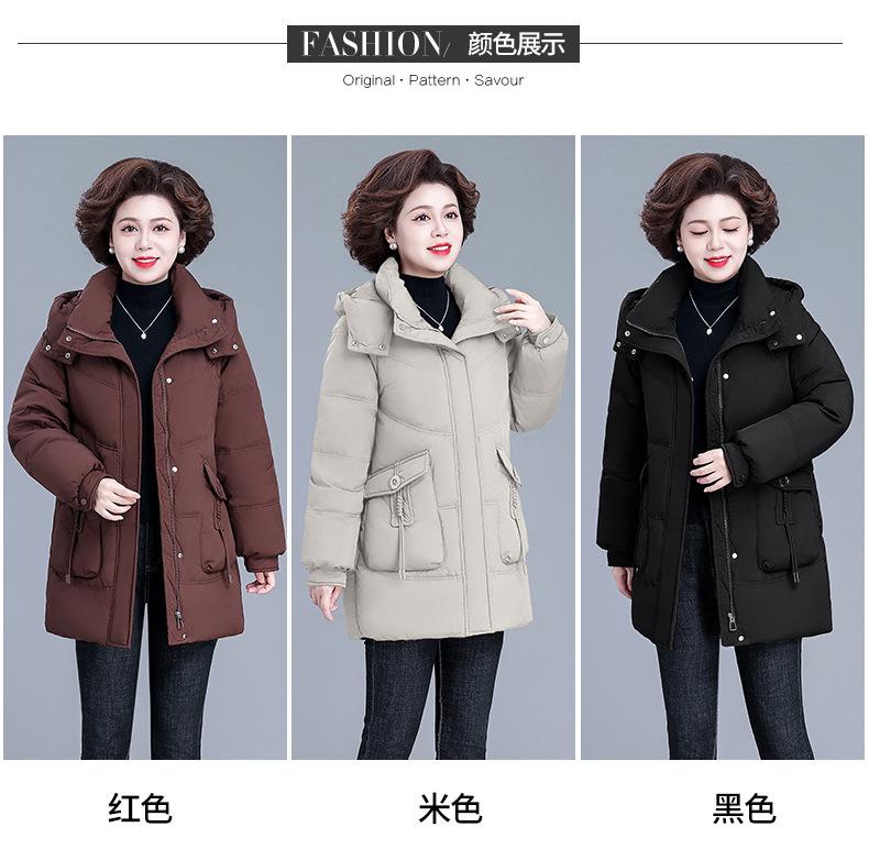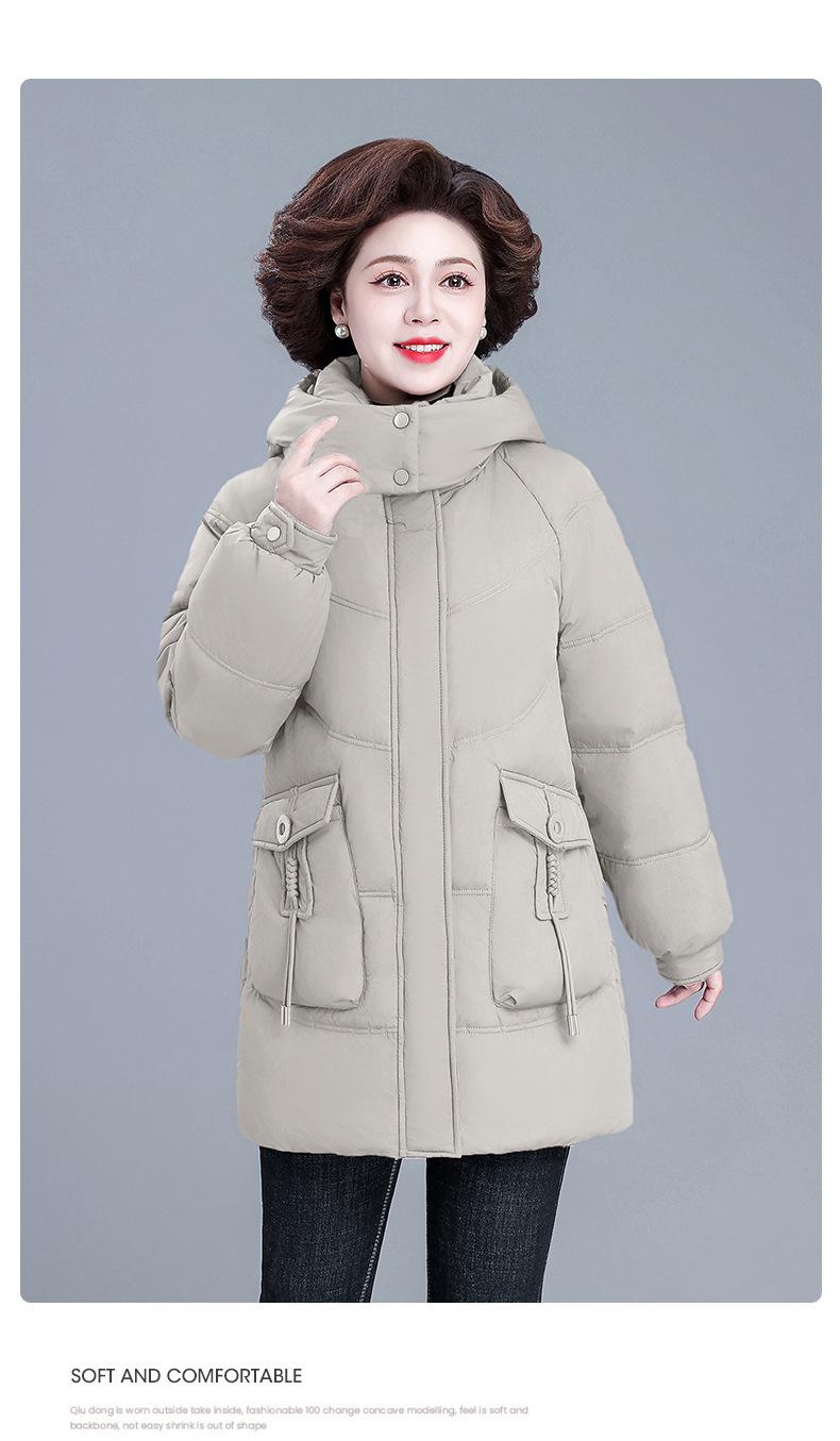 Chamarra de Plumas Ropa de Invierno para Madre Abrigo de Dama Noble Estilo Occidental Ropa Acolchada de Algodón Gruesa y Cálida con Capucha para Mujeres de Mediana Edad y Mayores Otoño e Invierno
