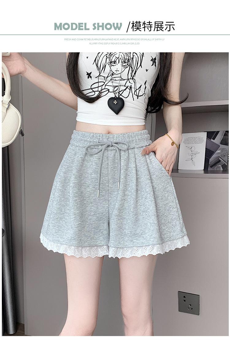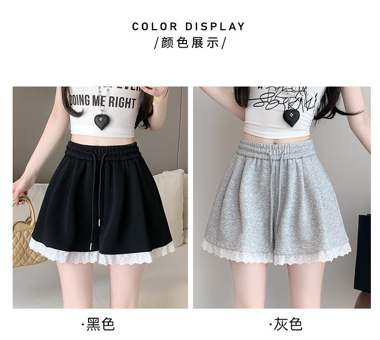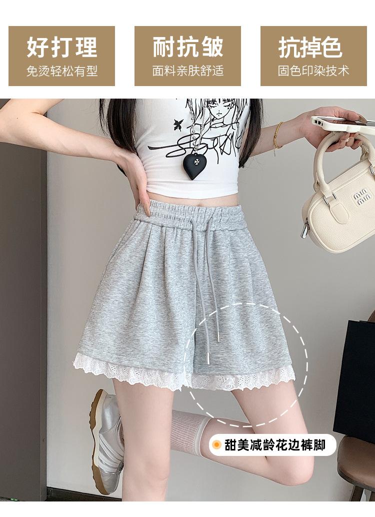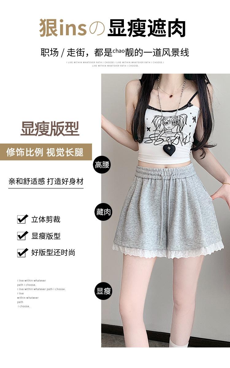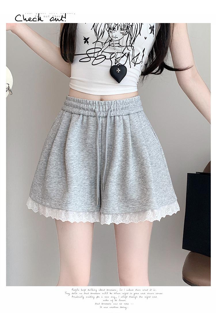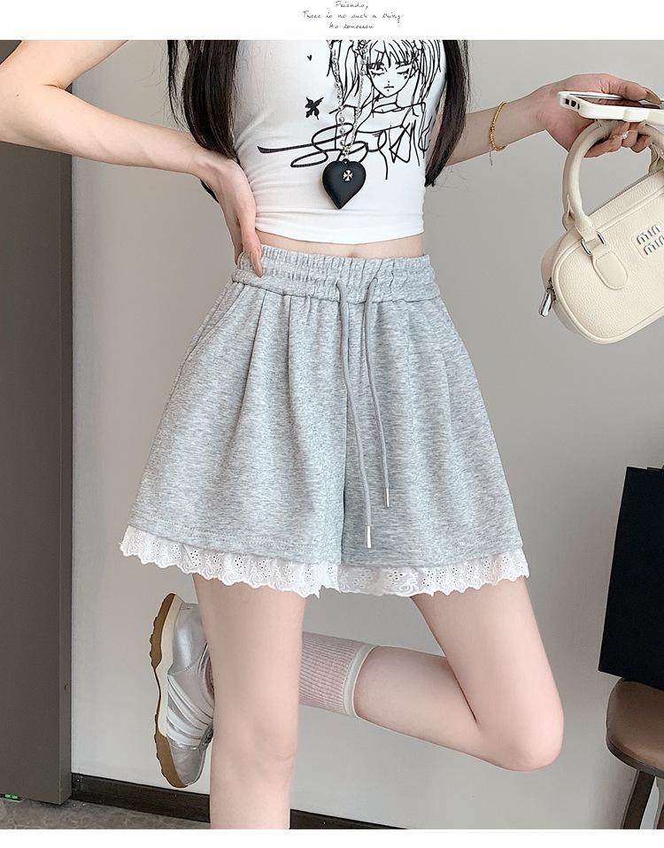Pantalones cortos informales de pierna ancha, color gris, con costuras de encaje, cintura holgada, adelgazantes, de verano 2025