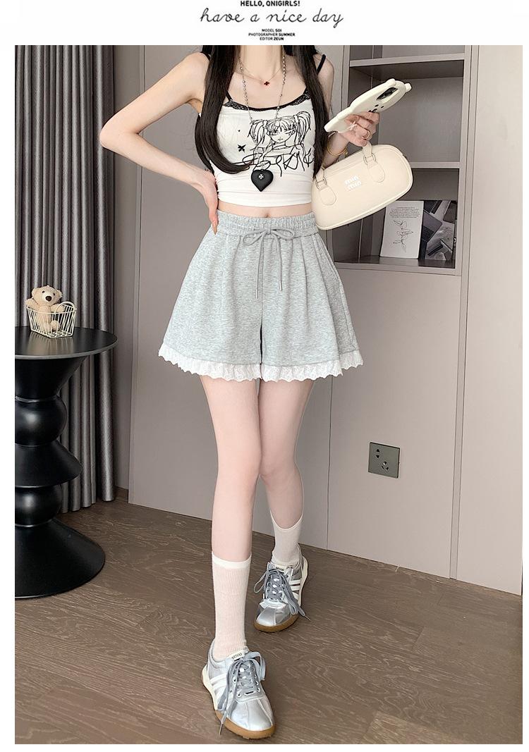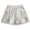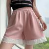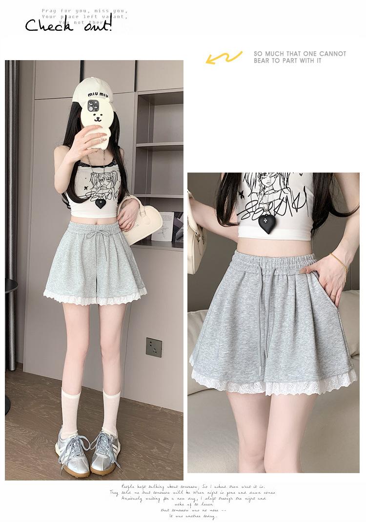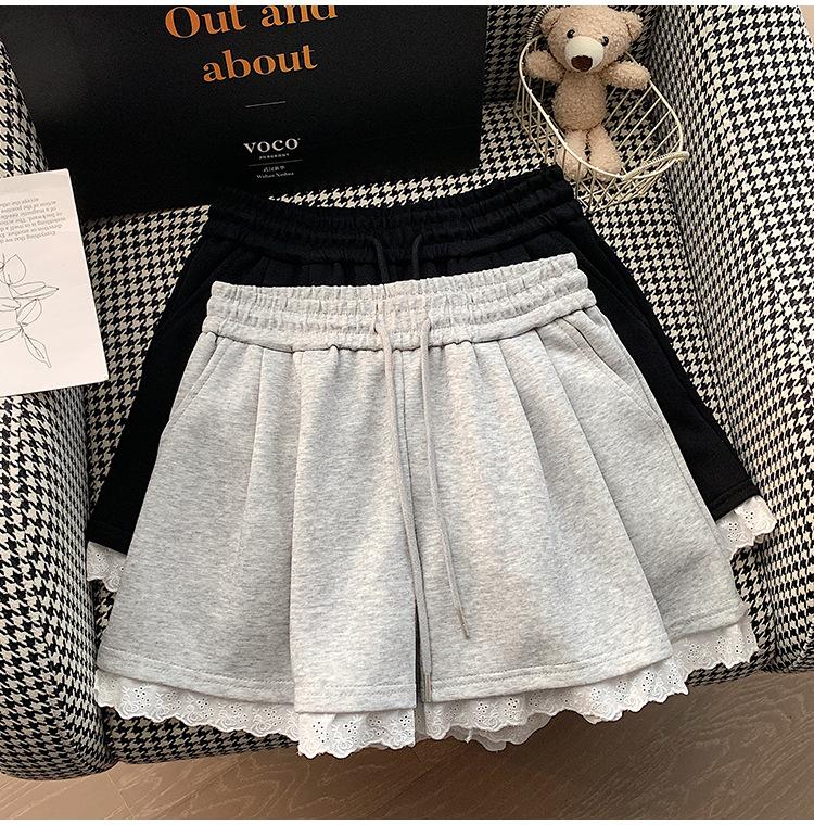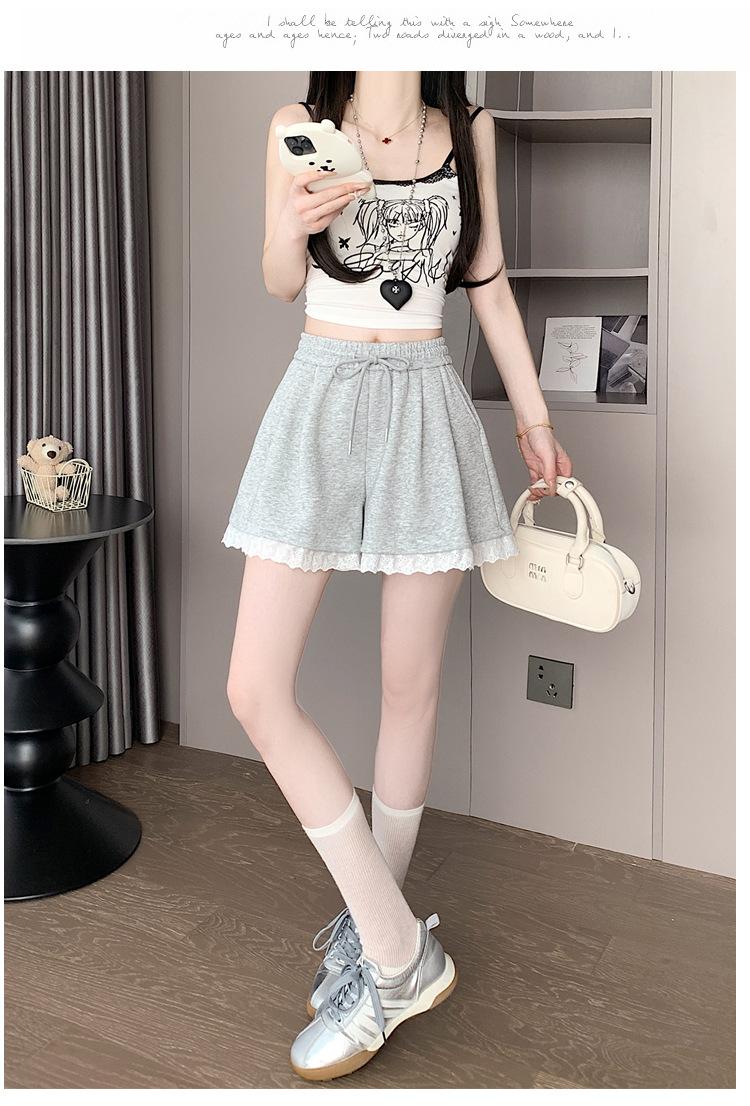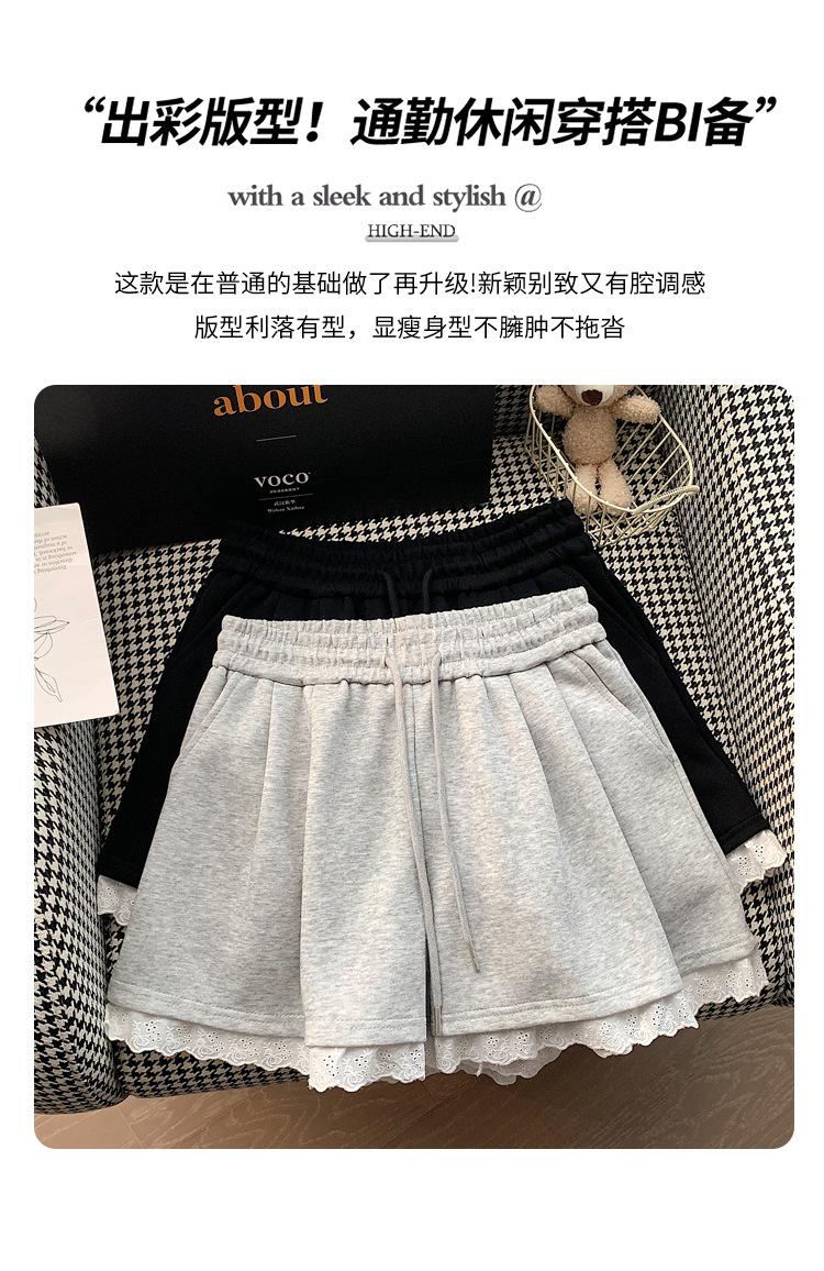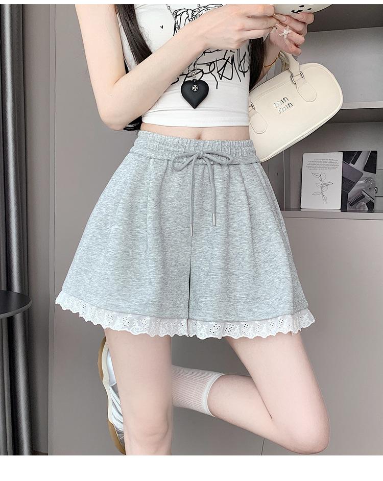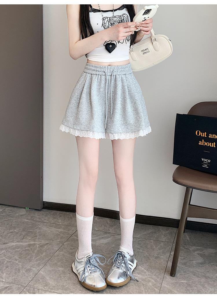 Pantalones cortos informales de pierna ancha, color gris, con costuras de encaje, cintura holgada, adelgazantes, de verano 2025