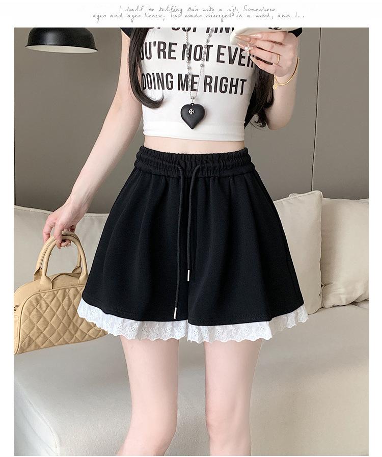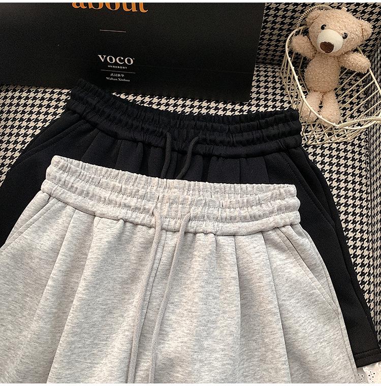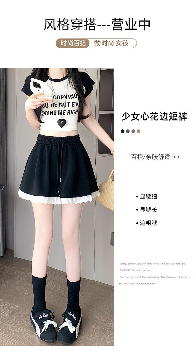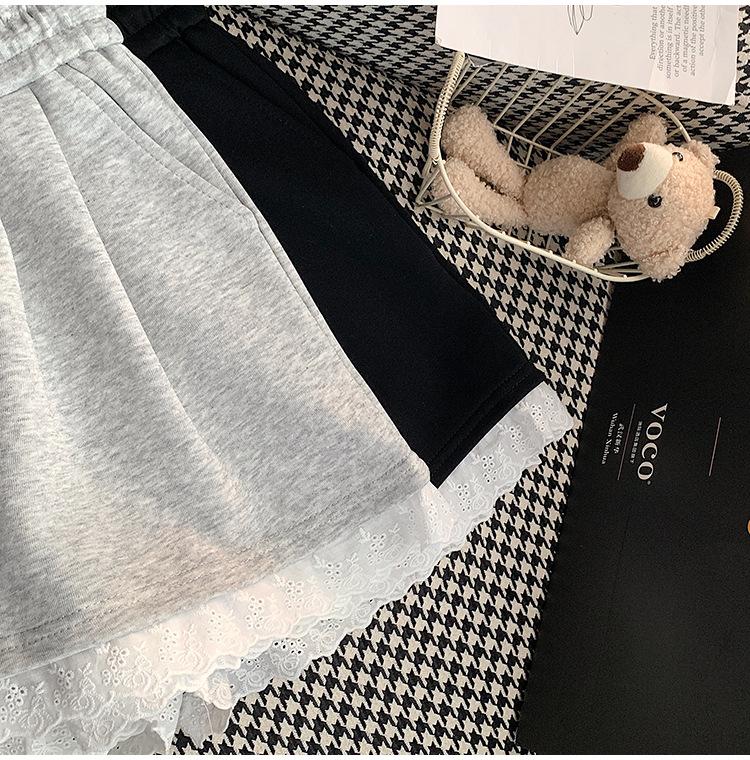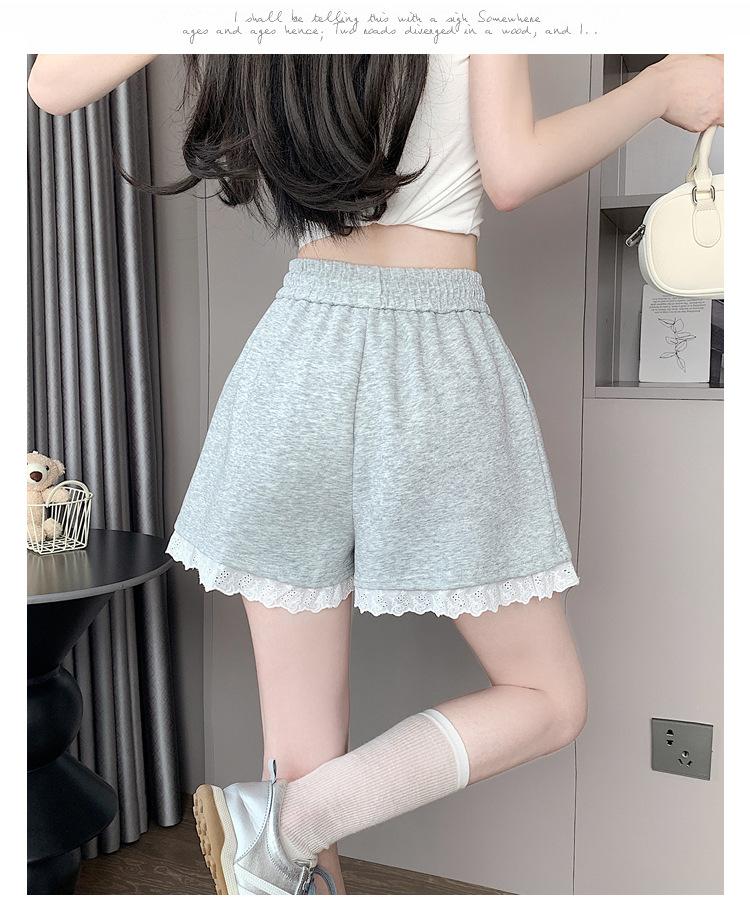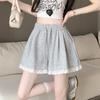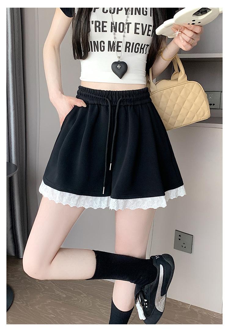 Pantalones cortos informales de pierna ancha, color gris, con costuras de encaje, cintura holgada, adelgazantes, de verano 2025