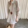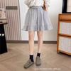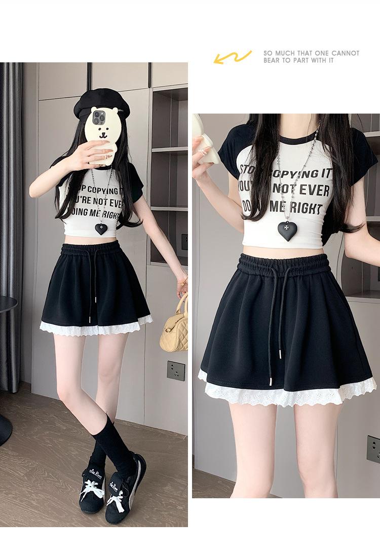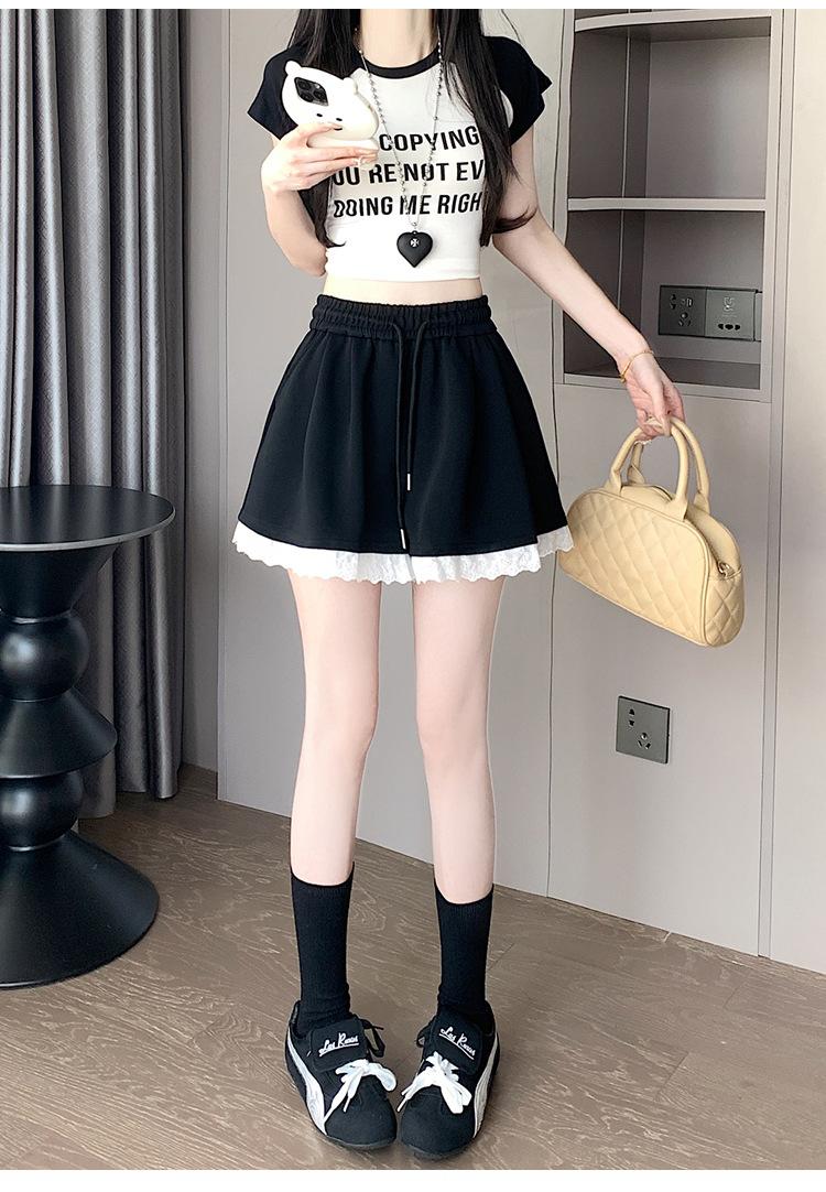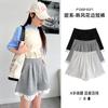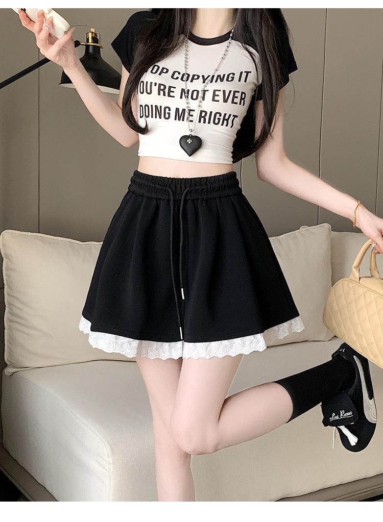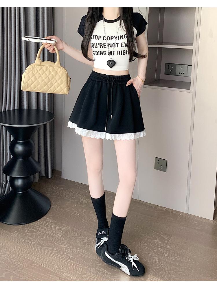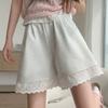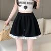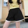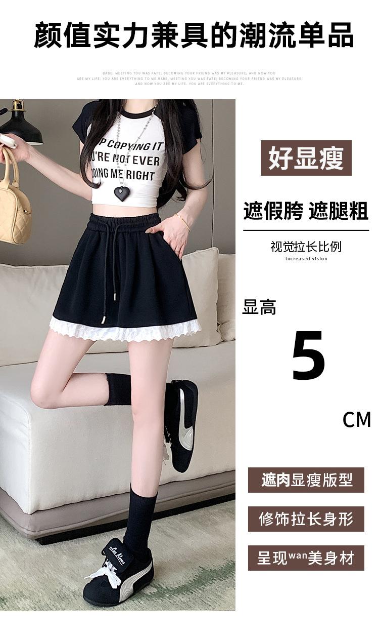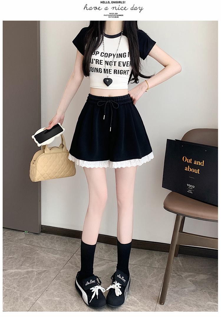 Pantalones cortos informales de pierna ancha, color gris, con costuras de encaje, cintura holgada, adelgazantes, de verano 2025