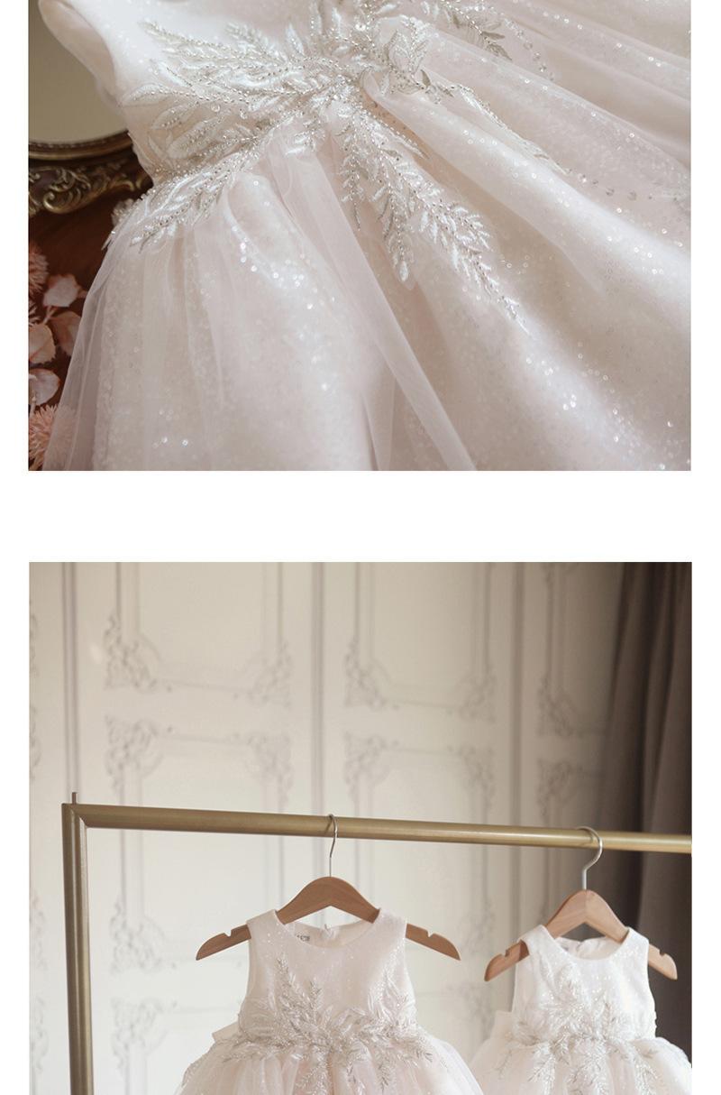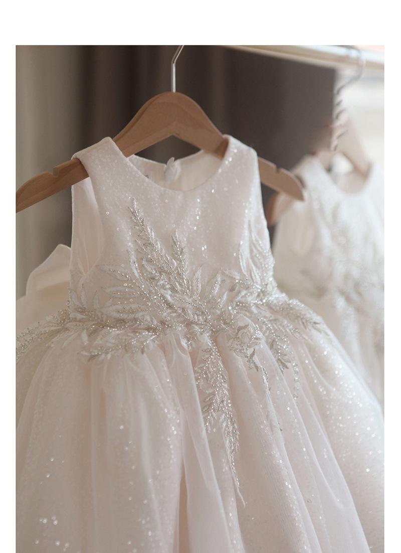 Vestido de un año Niña Vestido de niña Vestido de princesa esponjoso Blanco Moderno Cumpleaños Dama de flores Vestido de niña pequeña