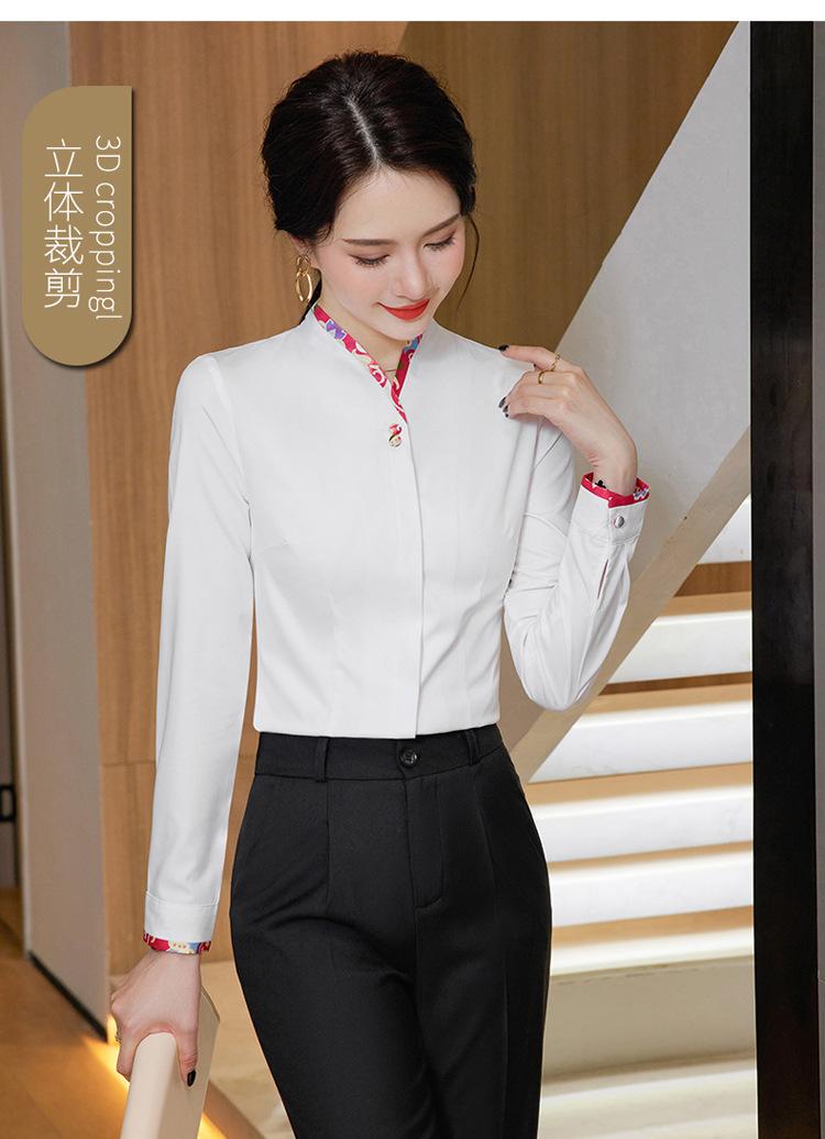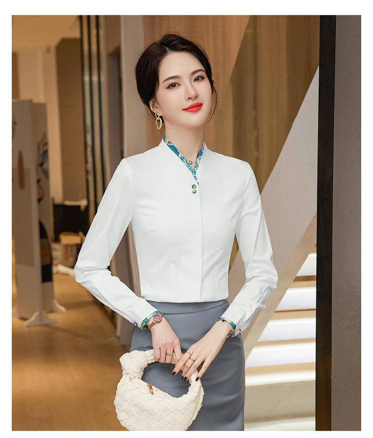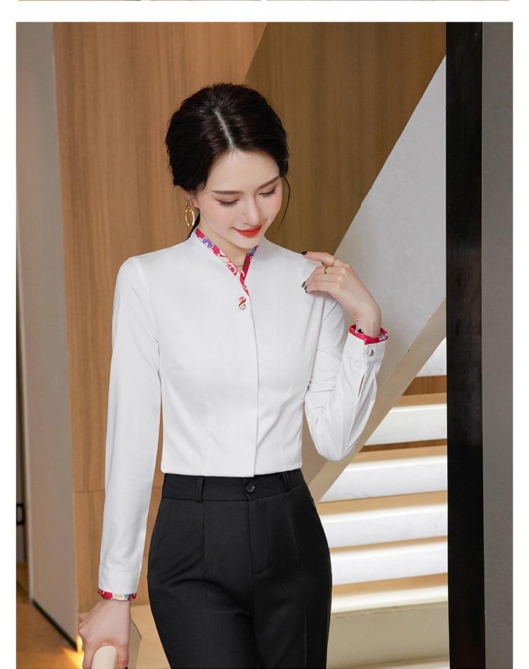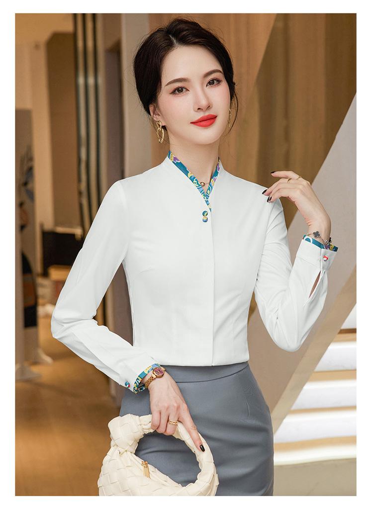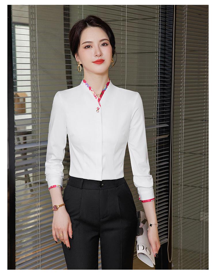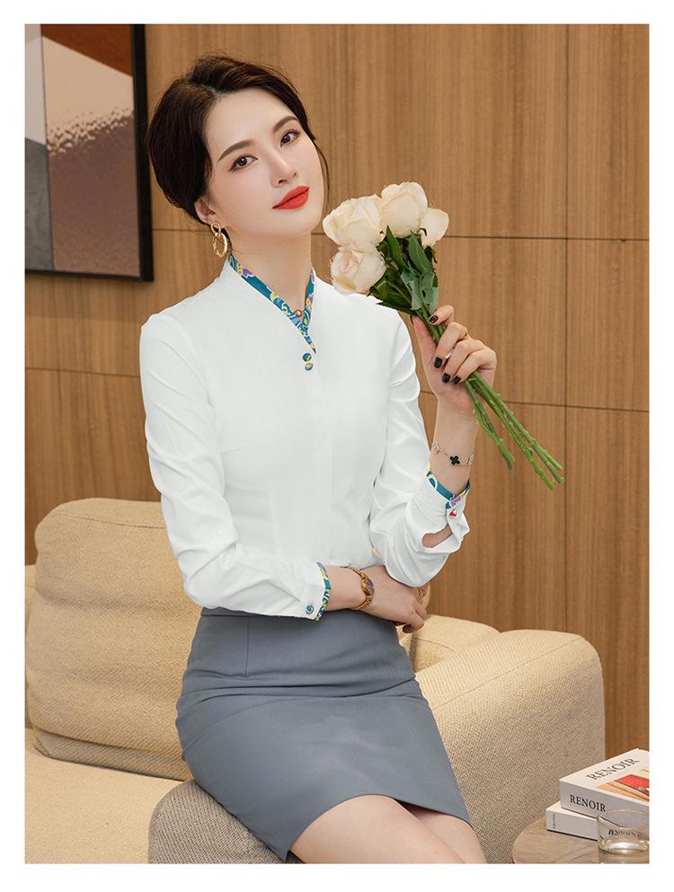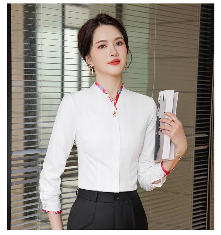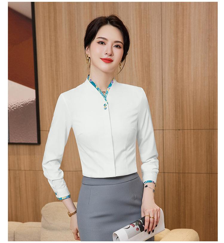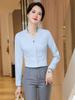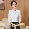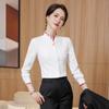 Camisa de cosmetóloga elegante y entallada, ropa de trabajo para mujer, nueva ropa de negocios de otoño, camisa blanca de manga larga con cuello en V de moda para mujer