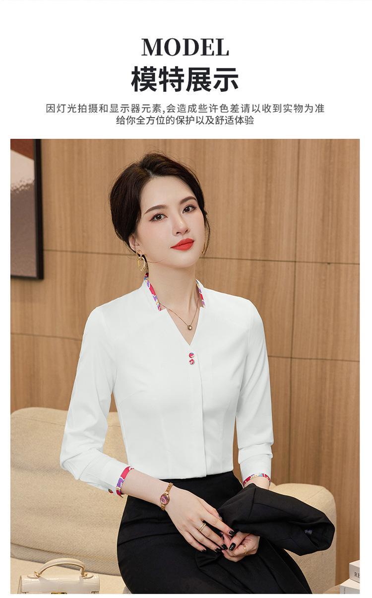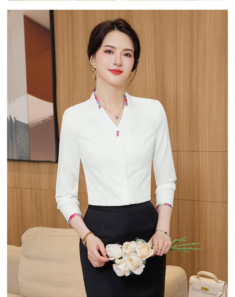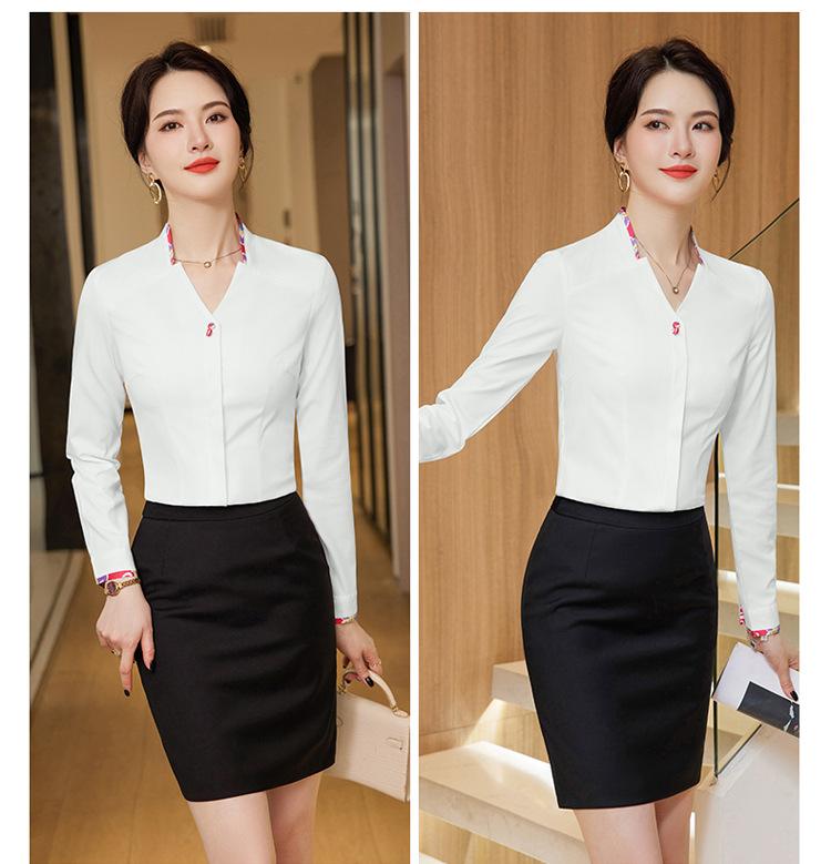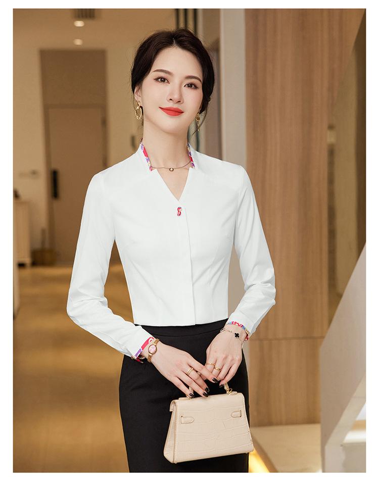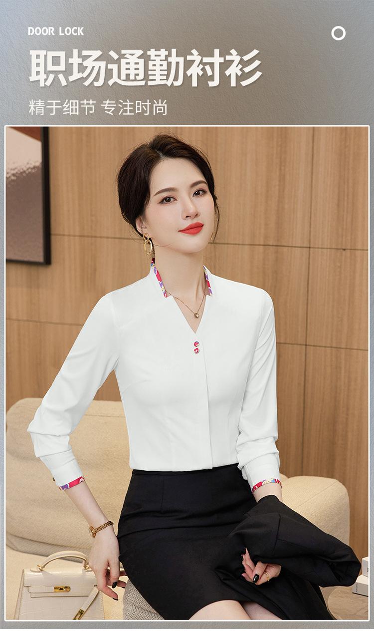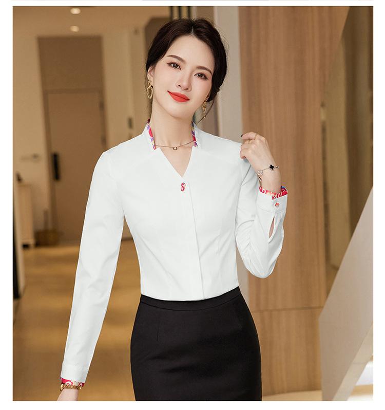 Camisa blanca de manga larga con cuello en V para mujer, nueva moda de otoño, ropa de negocios, camisa elegante de cuello blanco entallada, venta al por mayor