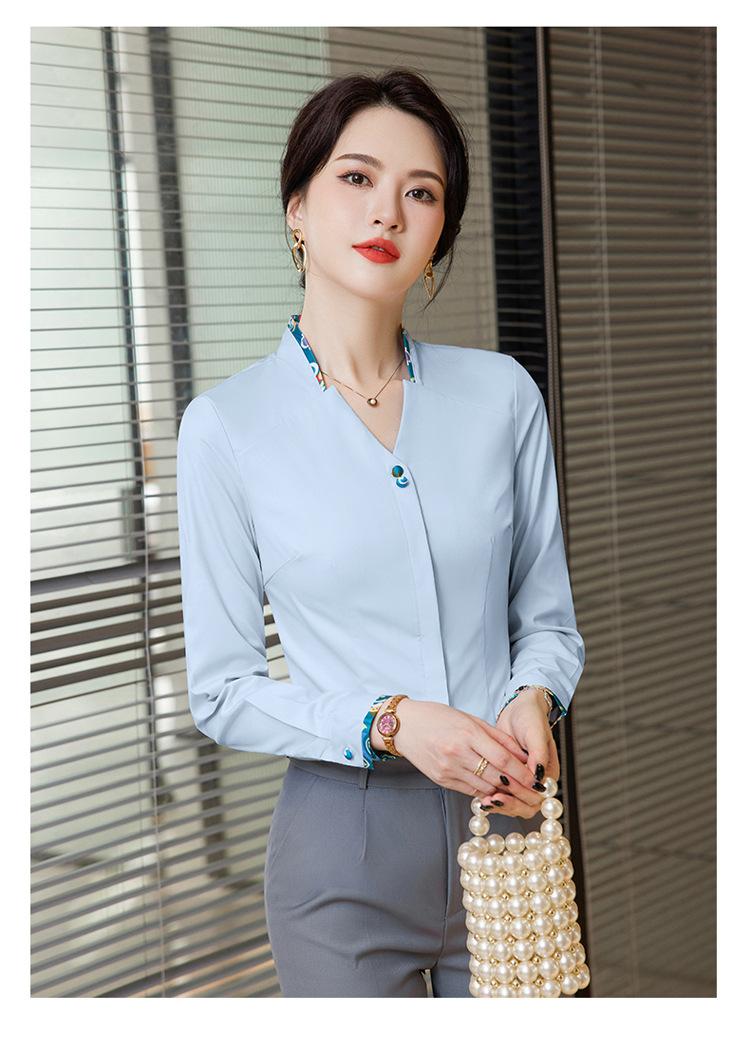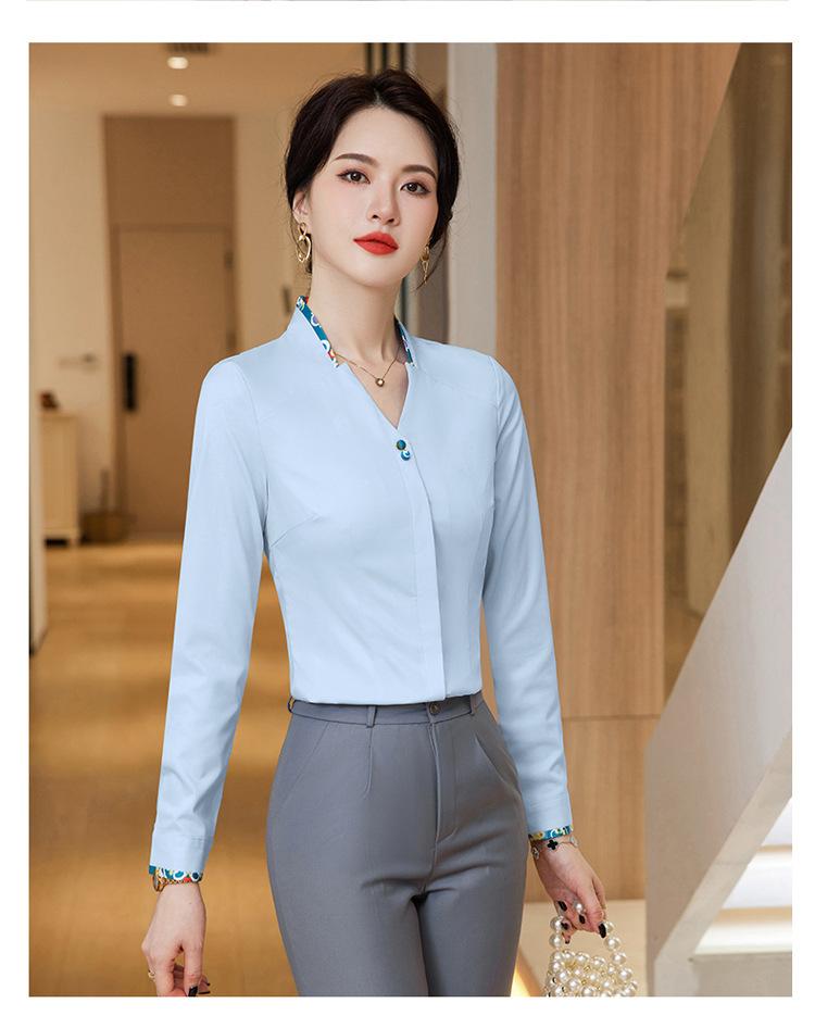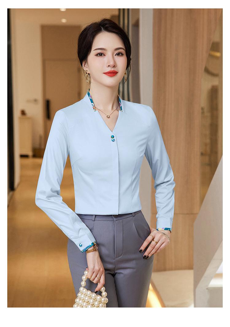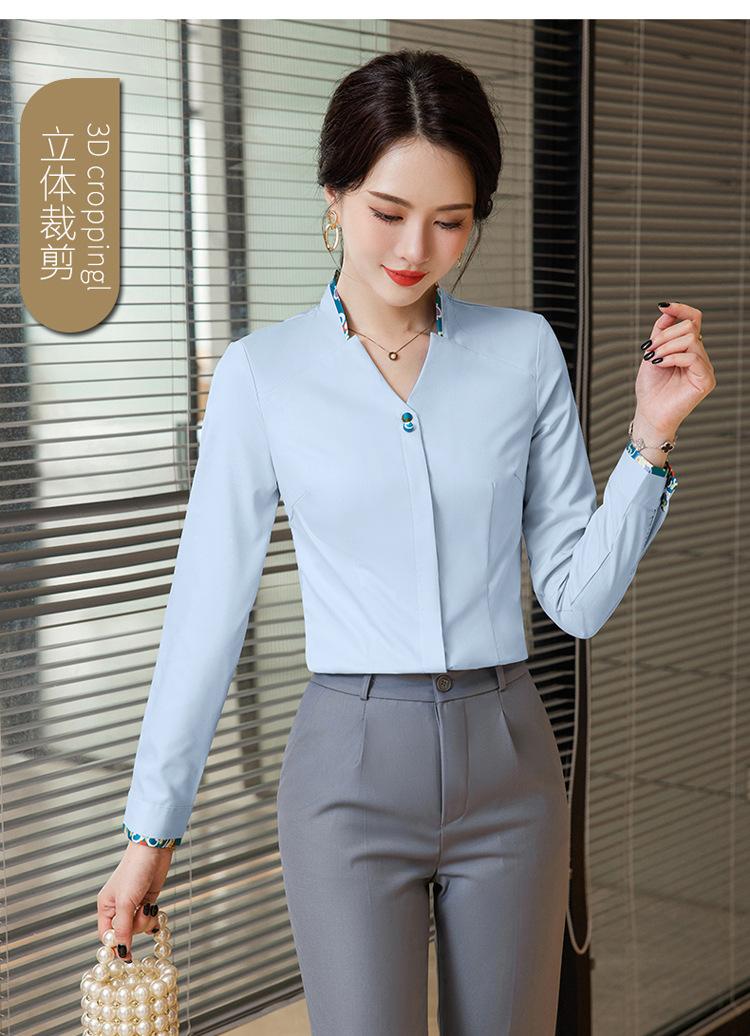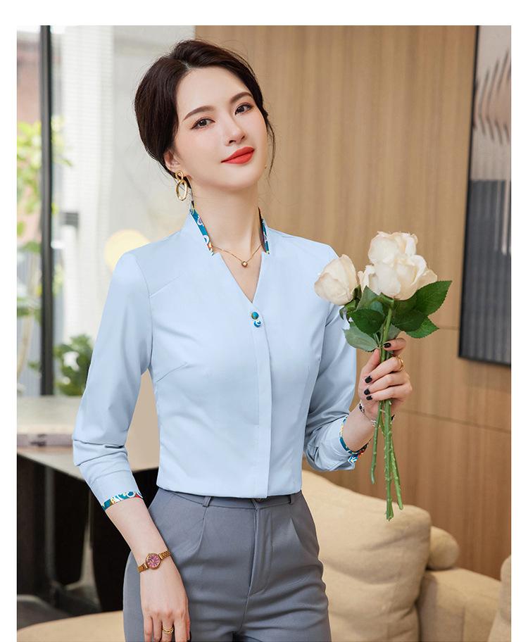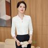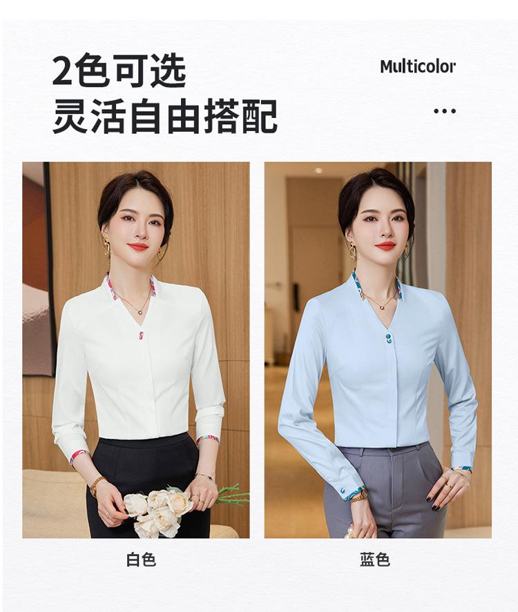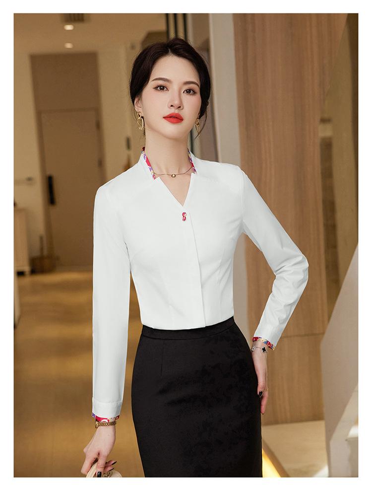 Camisa blanca de manga larga con cuello en V para mujer, nueva moda de otoño, ropa de negocios, camisa elegante de cuello blanco entallada, venta al por mayor