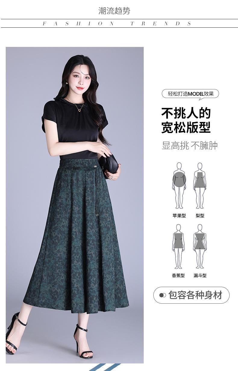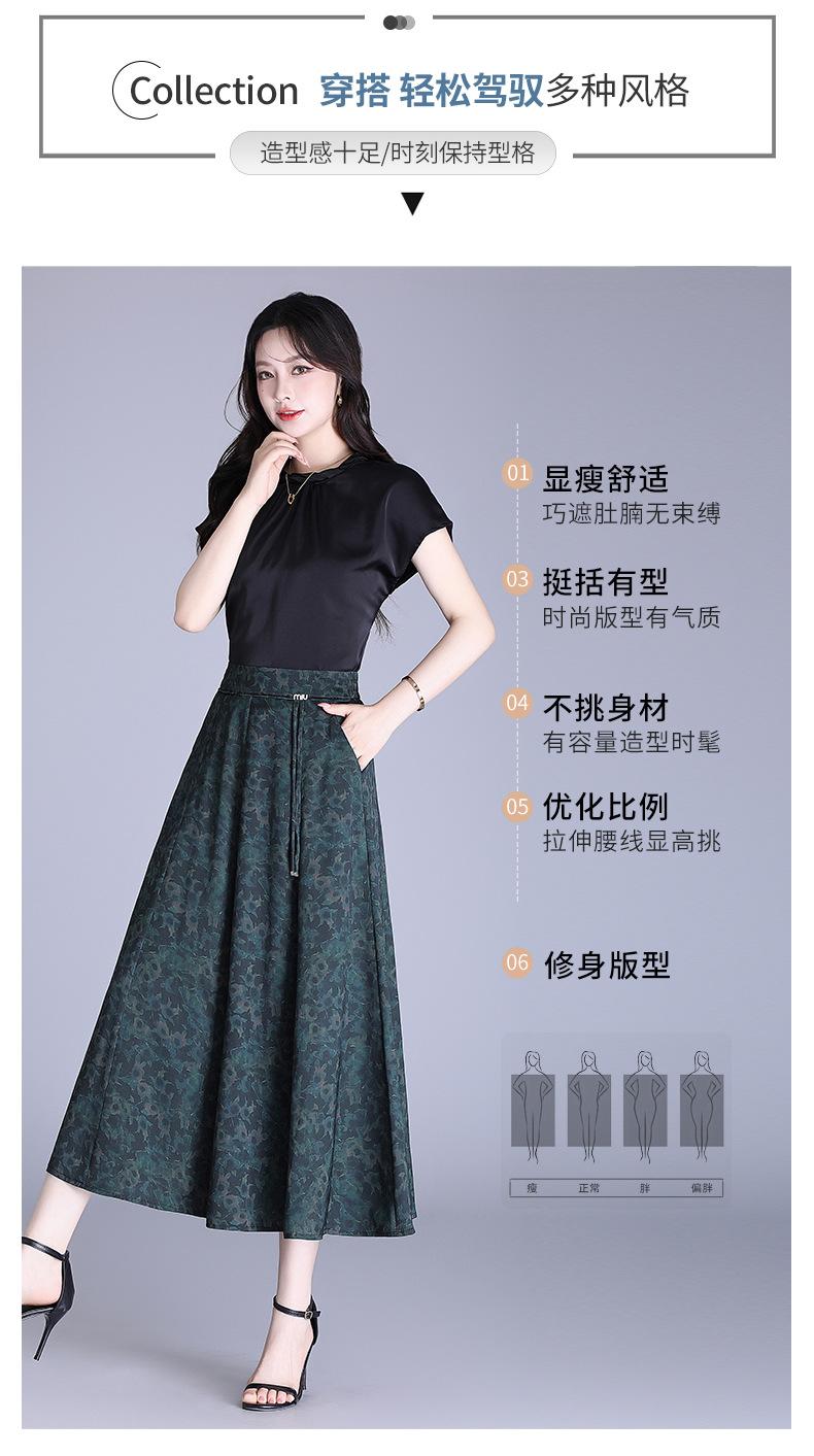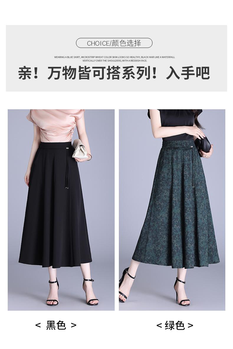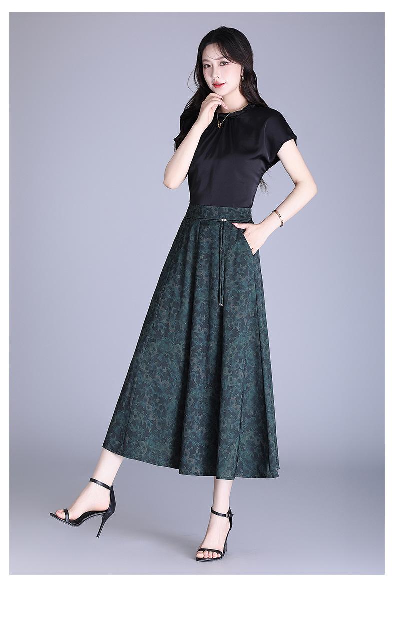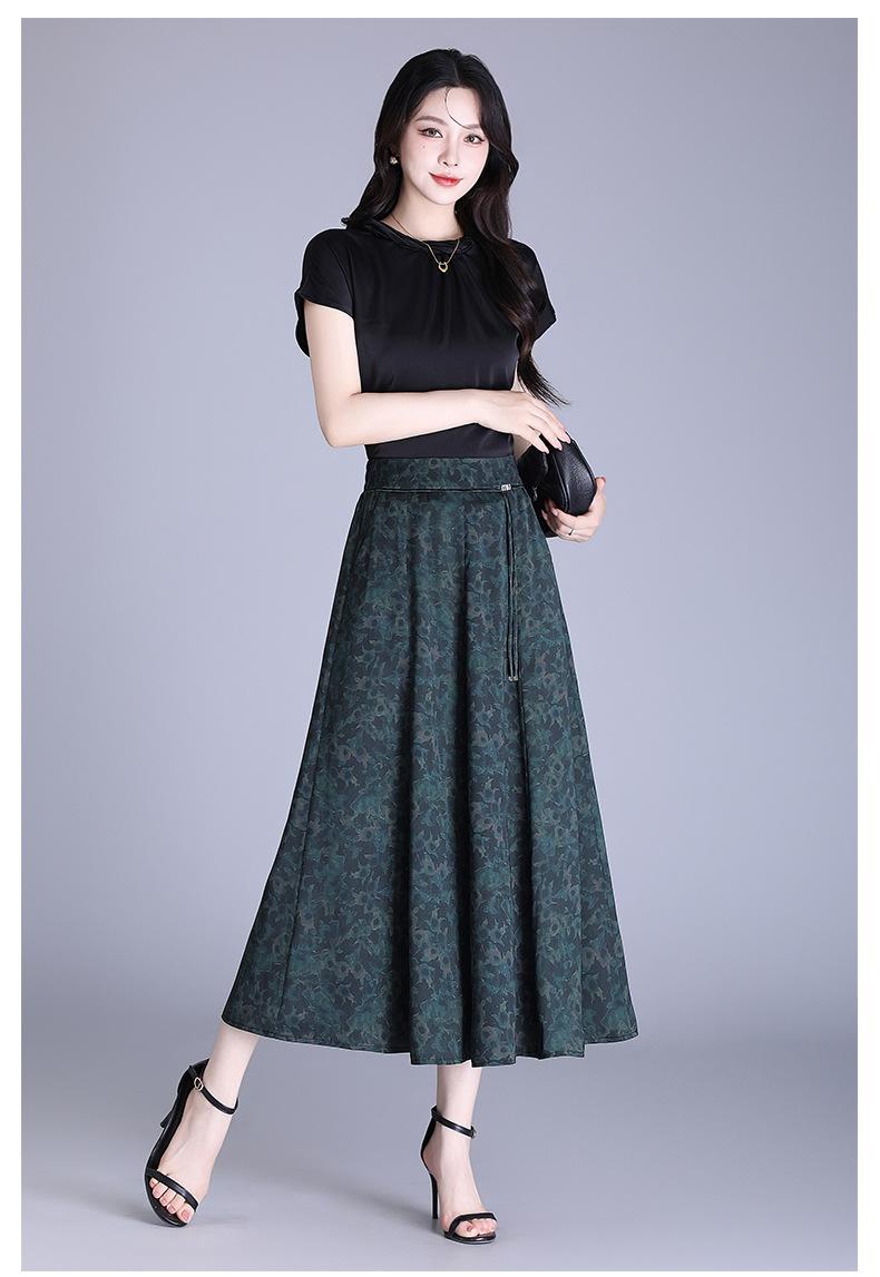 Falda Paraguas Plisada de Cintura Alta y Largo Medio para Chica Gordita, Adelgazante, Línea A, Falda Estampada de Seda Fresca como el Hielo, Novedad Verano 2025 para Mujer