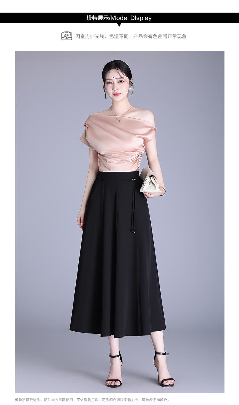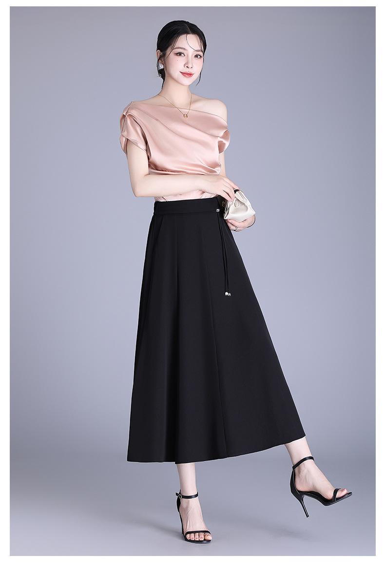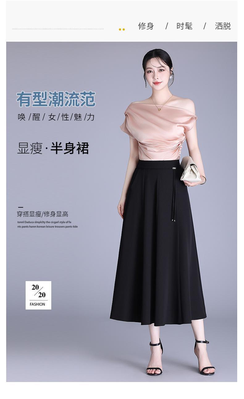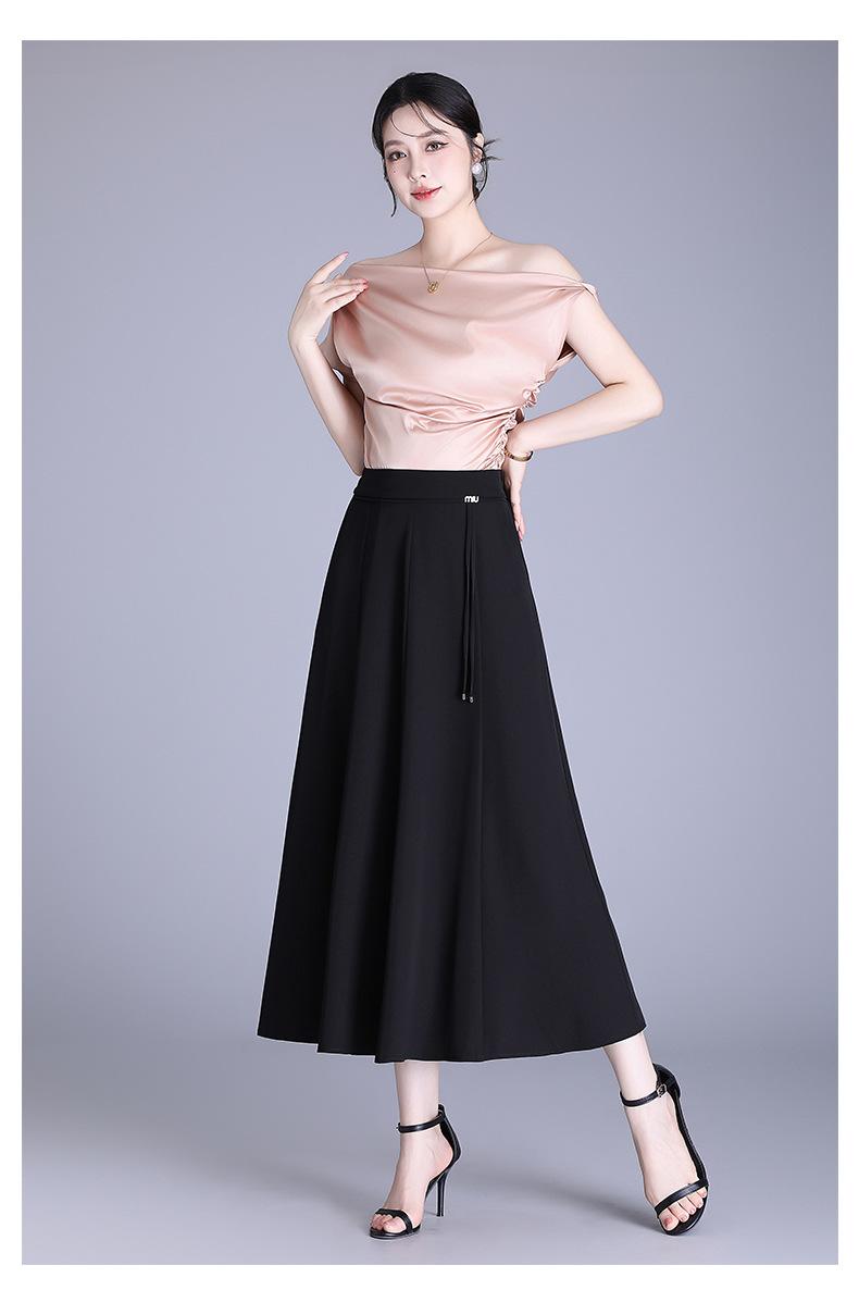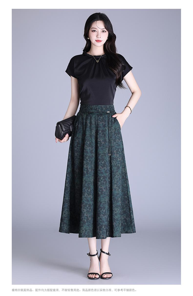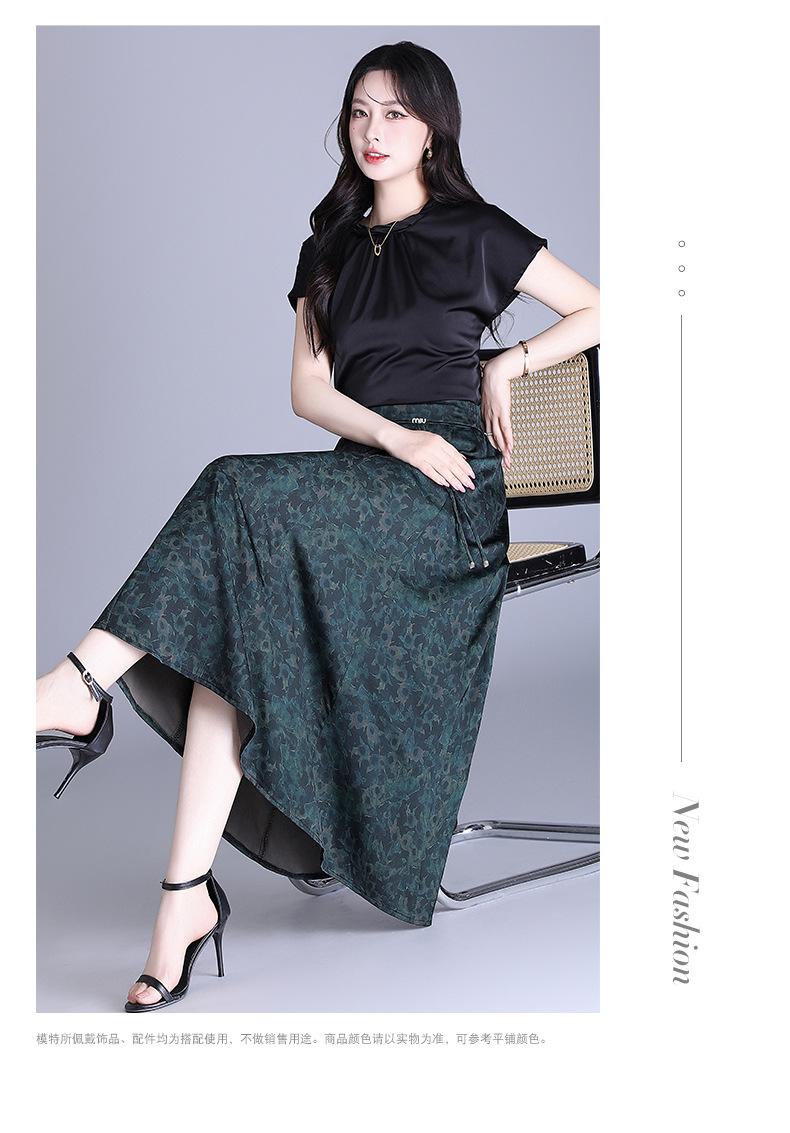 Falda Paraguas Plisada de Cintura Alta y Largo Medio para Chica Gordita, Adelgazante, Línea A, Falda Estampada de Seda Fresca como el Hielo, Novedad Verano 2025 para Mujer