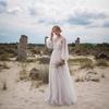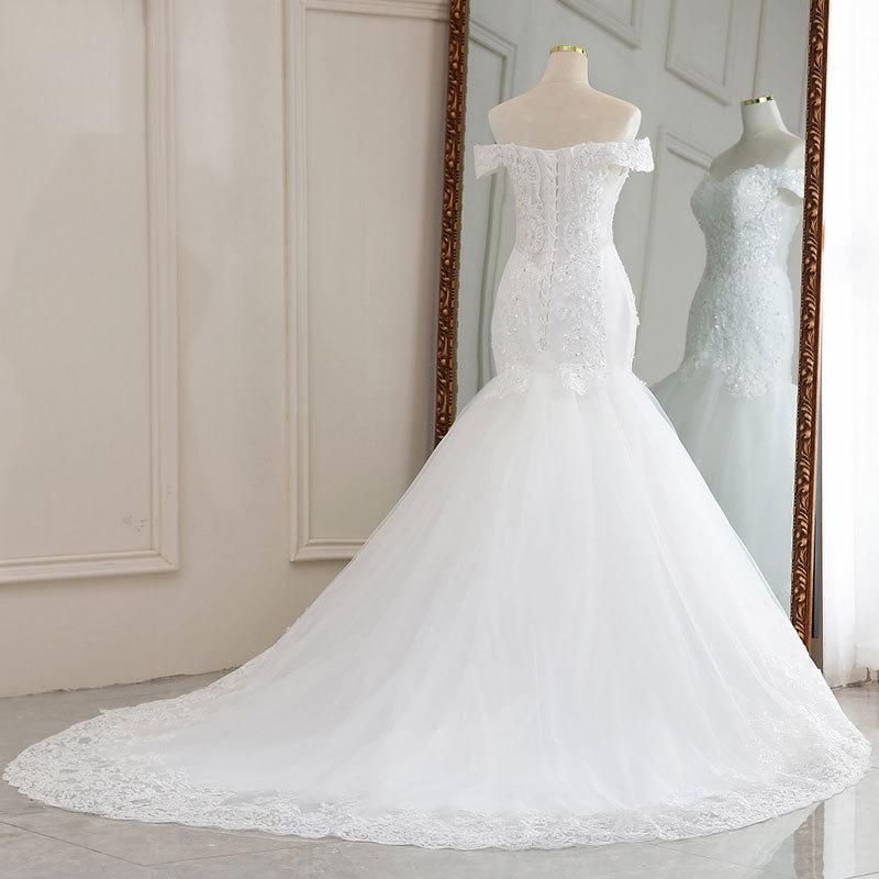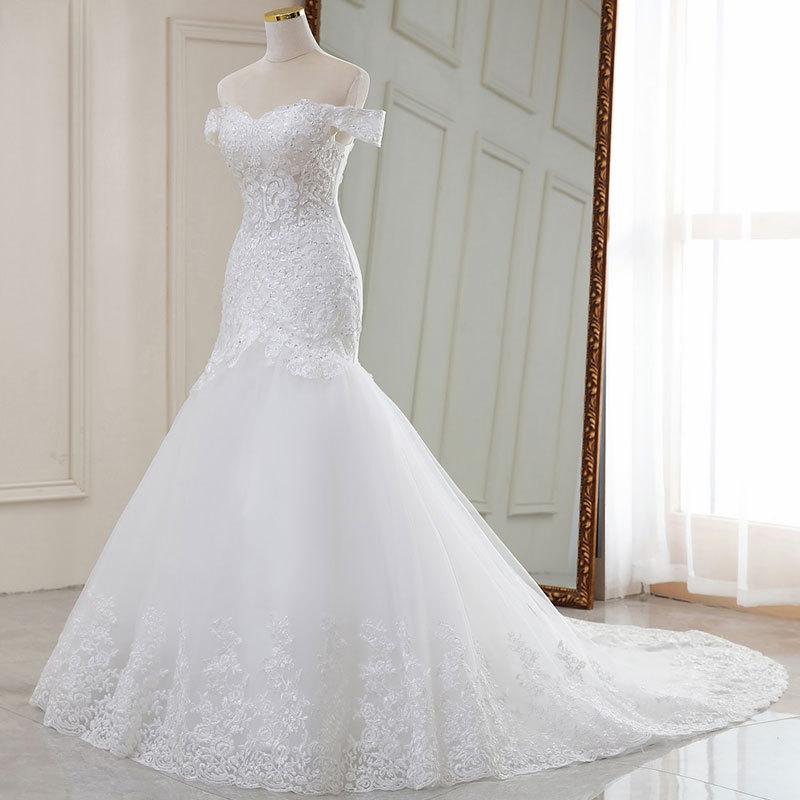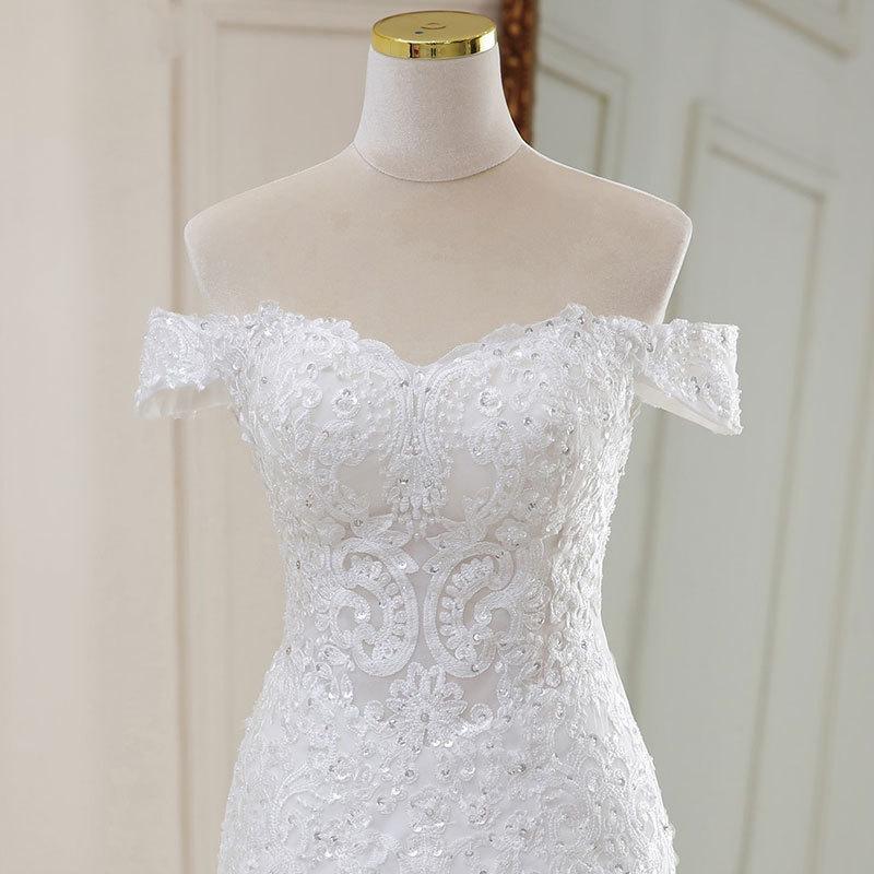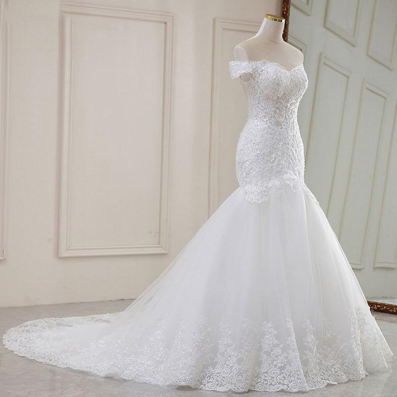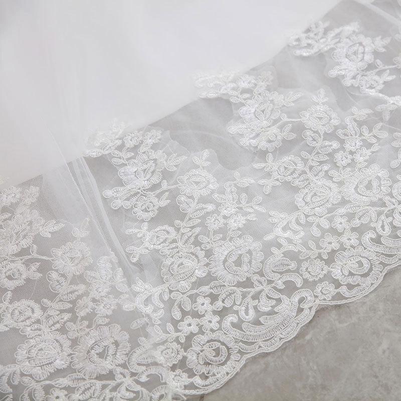 2025 Nuevo Temperamento Blanco Fantasía Encaje Un Hombro Cola Larga Francés Comercio Exterior Fabricante Suministro Vestido de Novia