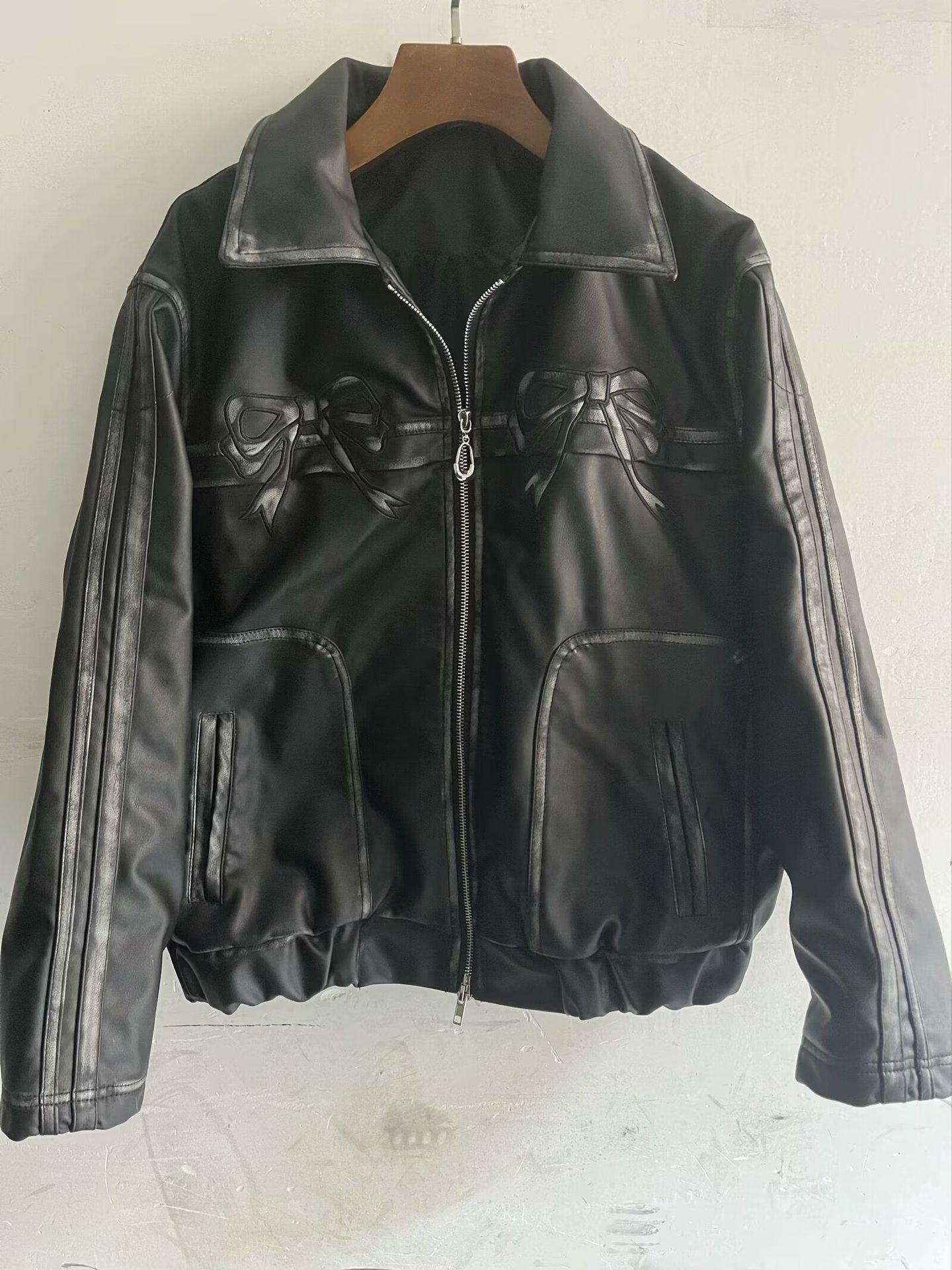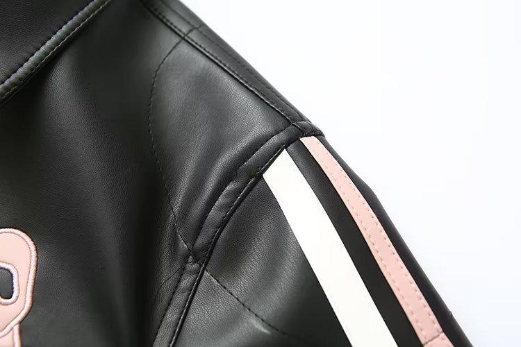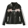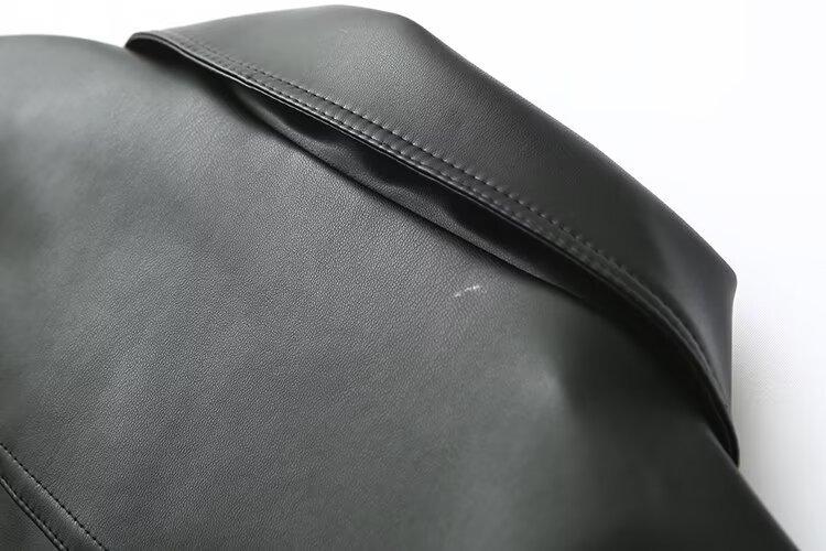 Venta al por mayor dulce fresco 2024 primavera nuevo abrigo de cuero europeo y americano para mujer negro Amazon lazo transfronterizo poliéster