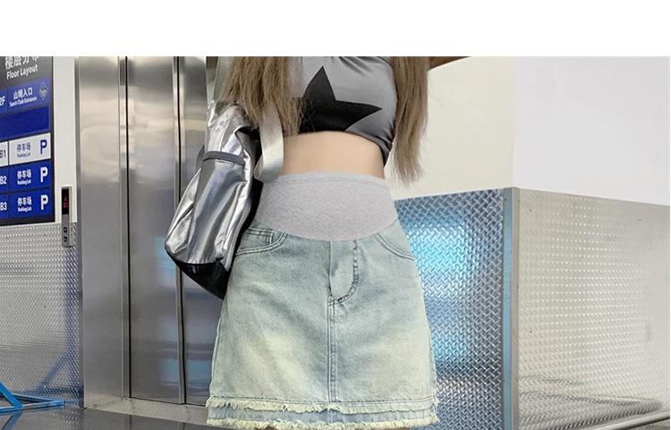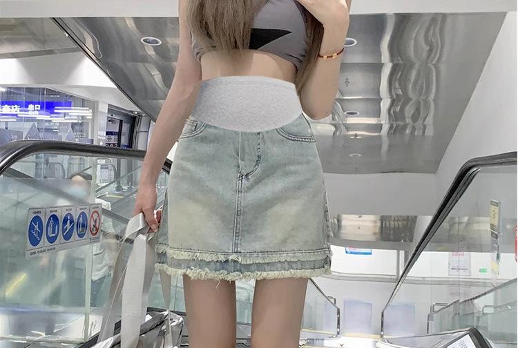 Falda de mezclilla para mujer embarazada Falda de verano nueva para mujer Falda A de cintura alta con soporte abdominal Falda de cadera Falda de moda