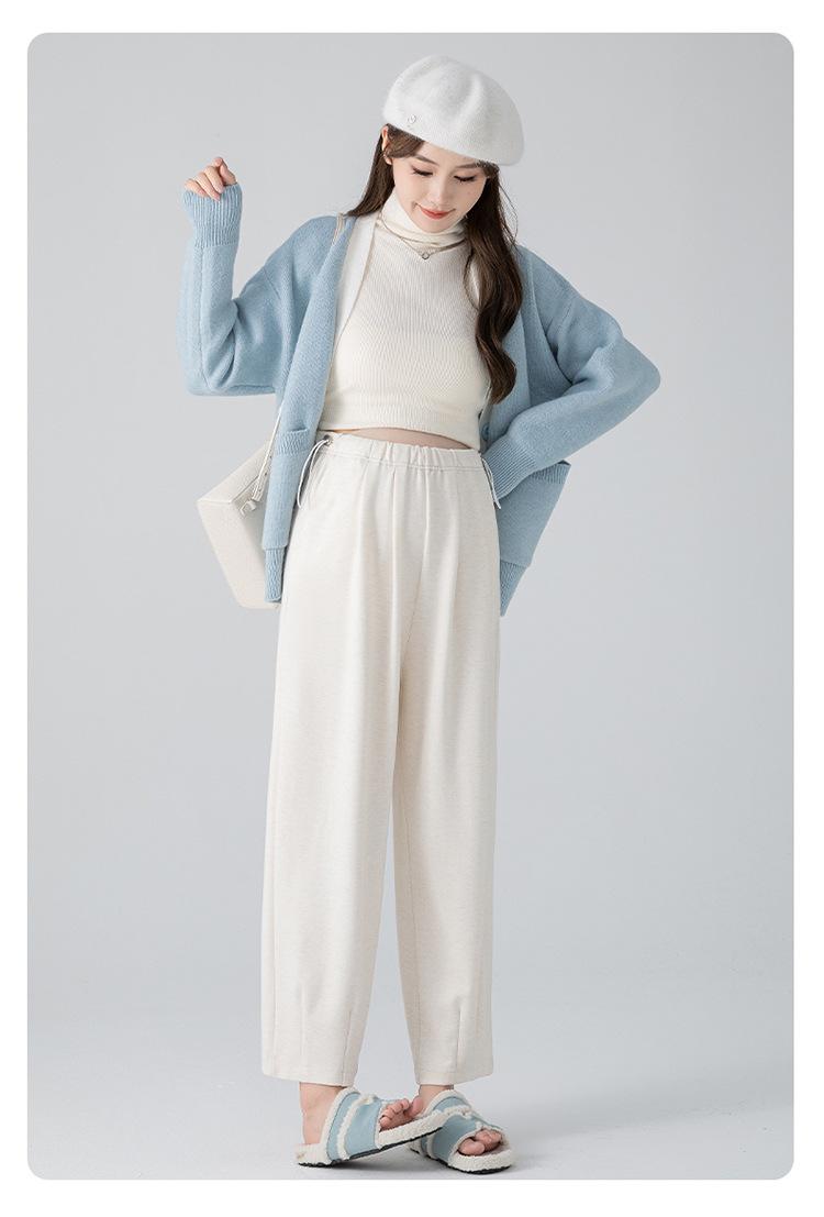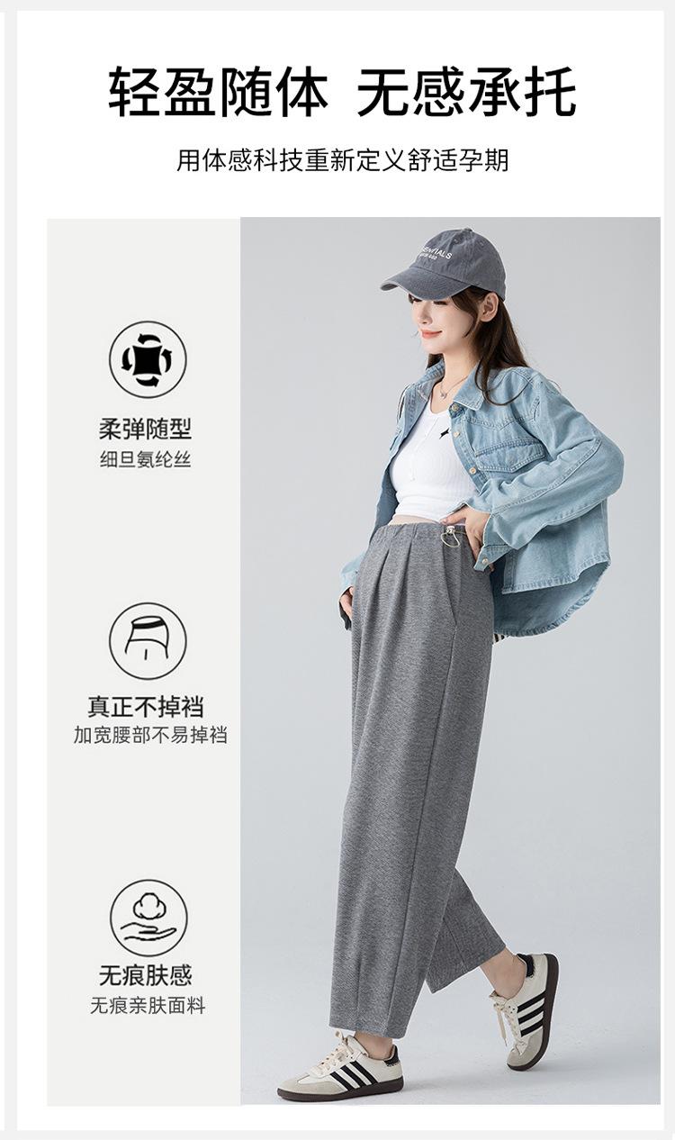 Pantalones de Maternidad Primavera y Verano Nuevo Estilo Coreano Moderno Cordón Personalizado Versátil Pantalones de Abuela Pantalones de Soporte para el Vientre de Maternidad Pantalones Casuales