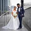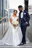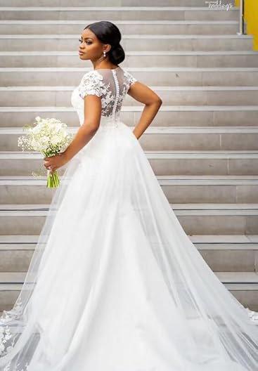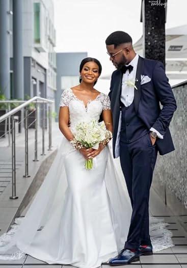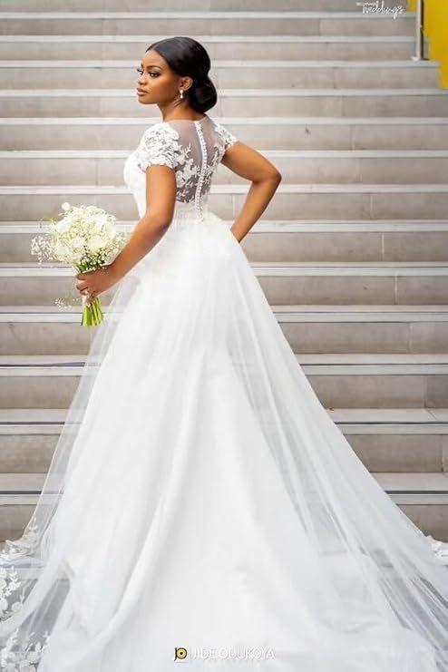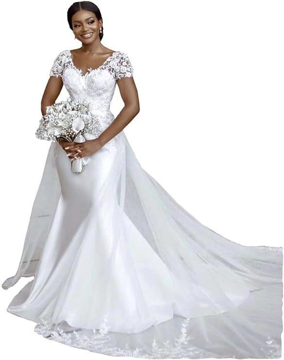 Vestido de Novia de Cola Corta con Cuello en V y Manga Corta 2025 Vestido de Novia Sirena vestido Cierre